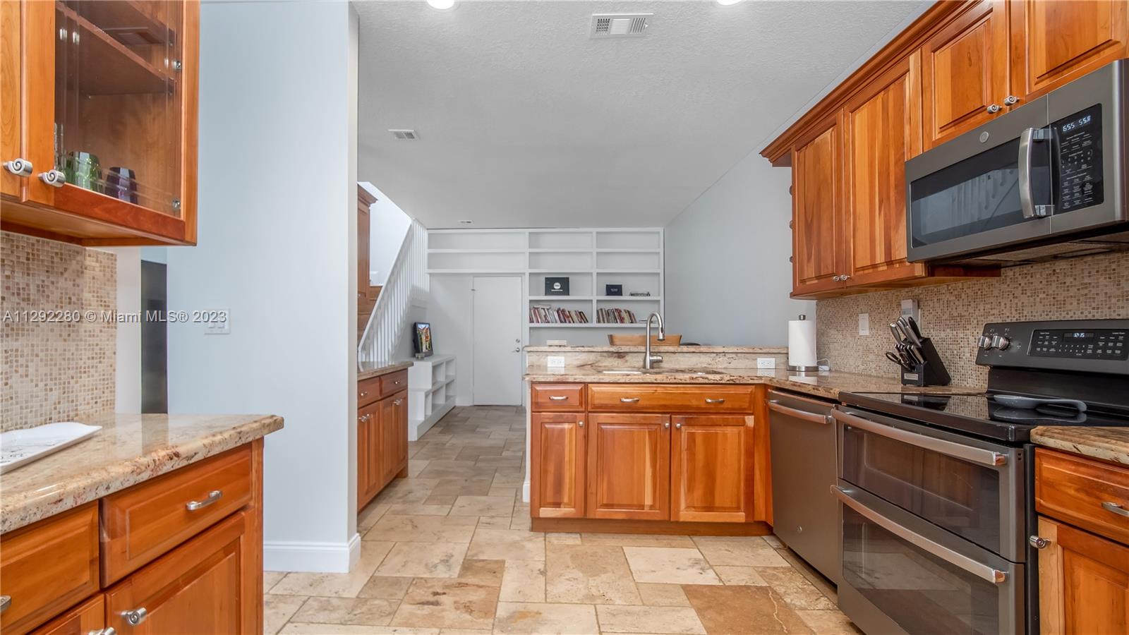 Light & bright home in L'etoile at Emerald Pointe! Open kitchen w/real wood cabinets, SS appliances, granite countertops. Travertine floors recently sealed & wood floors upstairs. BIG PLUSES Roof done in 2018, some impact windows & doors plus accordion shutters. New lighting, new water heater in 2019. Enjoy the sunrise or afternoon snack from balcony patio. French doors to private backyard & BBQ area featuring upgraded vinyl fence & combination pavers & grass areas, perfect to entertain! Upstairs laundry. Lg master bedroom boasting travertine tile in bathroom & roman tub. BIG PLUS Low maintenance! Includes cable, security guard, pool overlooking lake, tot-lot & GYM. Fab location close to TY Park, places of worship, Dania Pointe shops & dining, Hollywood Beach, I-95, Hard Rock Cafe & more!