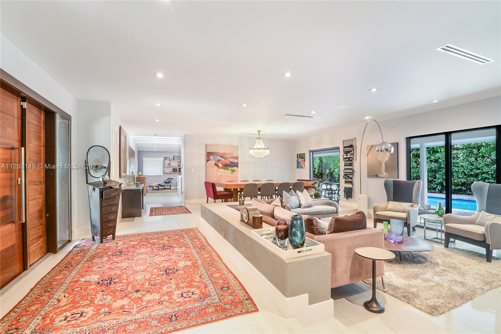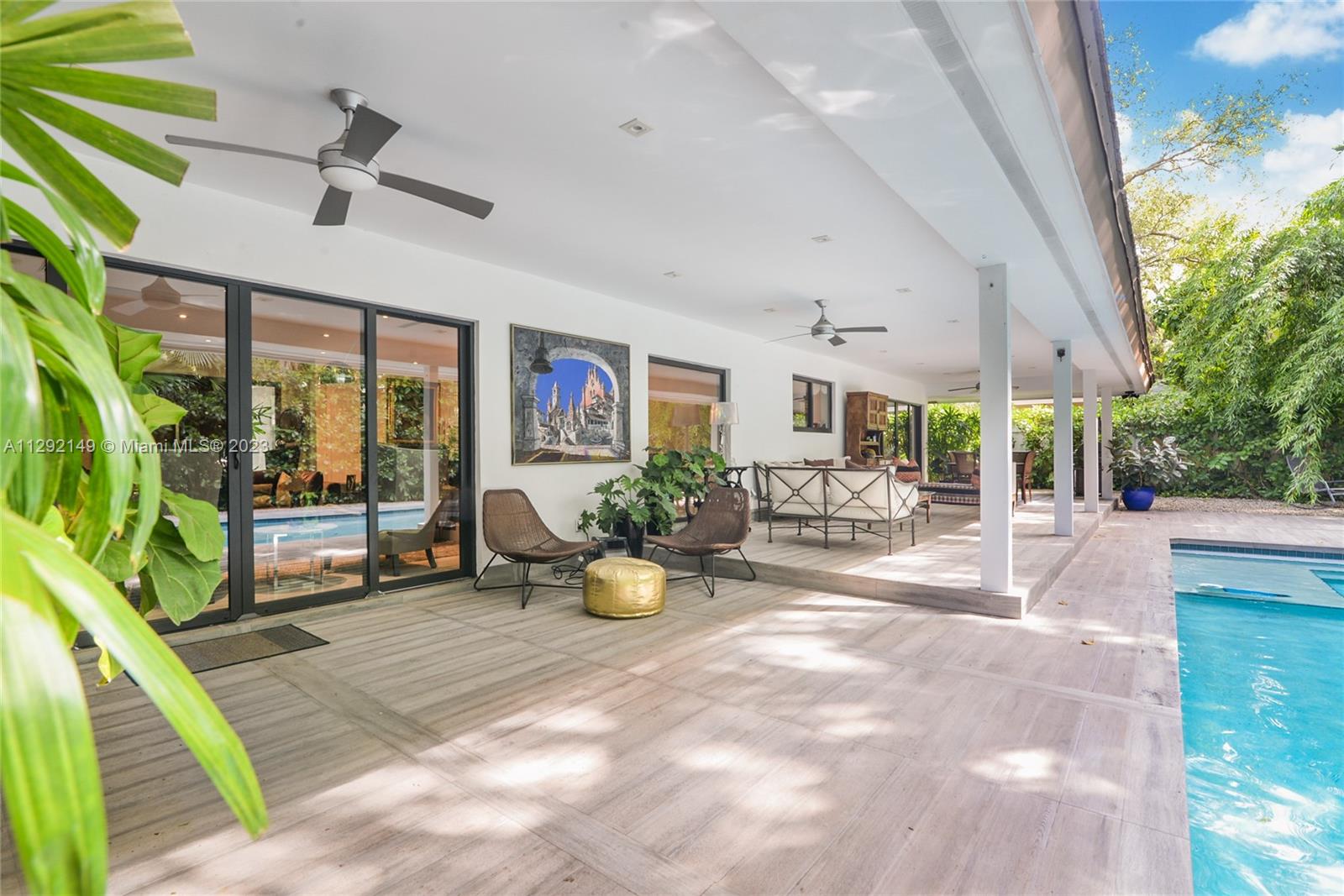 Spectacular 5 bed, 4.5 baths house in Skylake. Secluded on a Cul d’sac and surrounded by lush vegetation. This one story home was completely remodeled, and tastefully done in 2014, is ready to move in. Large driveway will allow parking up to 6 cars, infinity pool in a beautiful forest-like garden, ample kitchen with s/s appliances, designer lighting throughout the interior, electric generator, maid's quarter, impact windows, gas piped kitchen, shed with a split a/c unit used for artwork or a gym. It's a most see, it won't last.