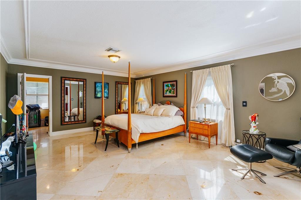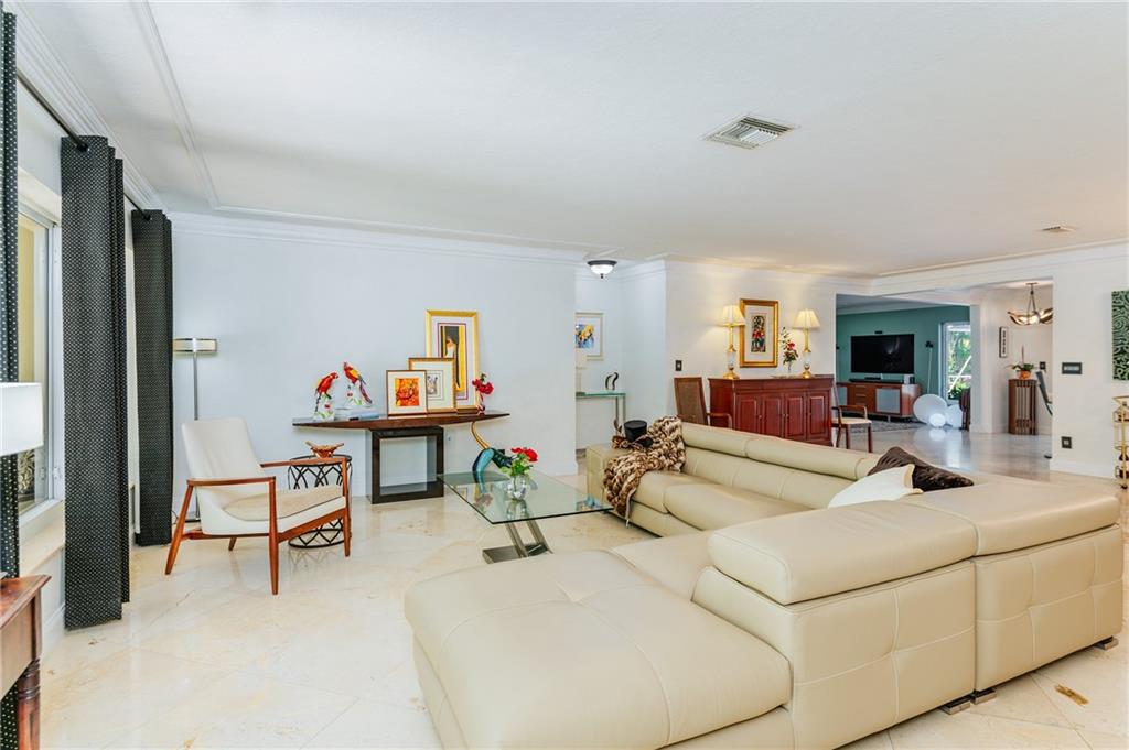 Welcome home to a Quiet Oasis in Coral Ridge CC. Expansive 3299 Sq. Ft. under air, plus 2 car garage. Graciously appointed, marble flooring throughout and bold layered crown moldings. Grand Owner’s Suite boasts enormous closet and Spa style Bath. Triple Split plan with Teen/In-Law suite featuring a sitting room with fireplace. Large family room could easily become another suite with existing full bath. Viking Range & Microwave, Sub Zero Refrigerator in large kitchen designed for entertaining. French doors lead to the screened pool from main house and rear suite. Tile roof done 2013, Fence 2014. Impact Garage Door 2015 and Impact Entry Doors in 2016. Under 1 mile to the beach, Close proximity to surrounding Fine Dining. ---Perfect for Short Term Rental - could host 12 - 14 guests!