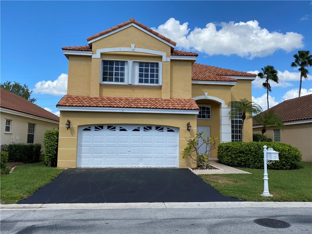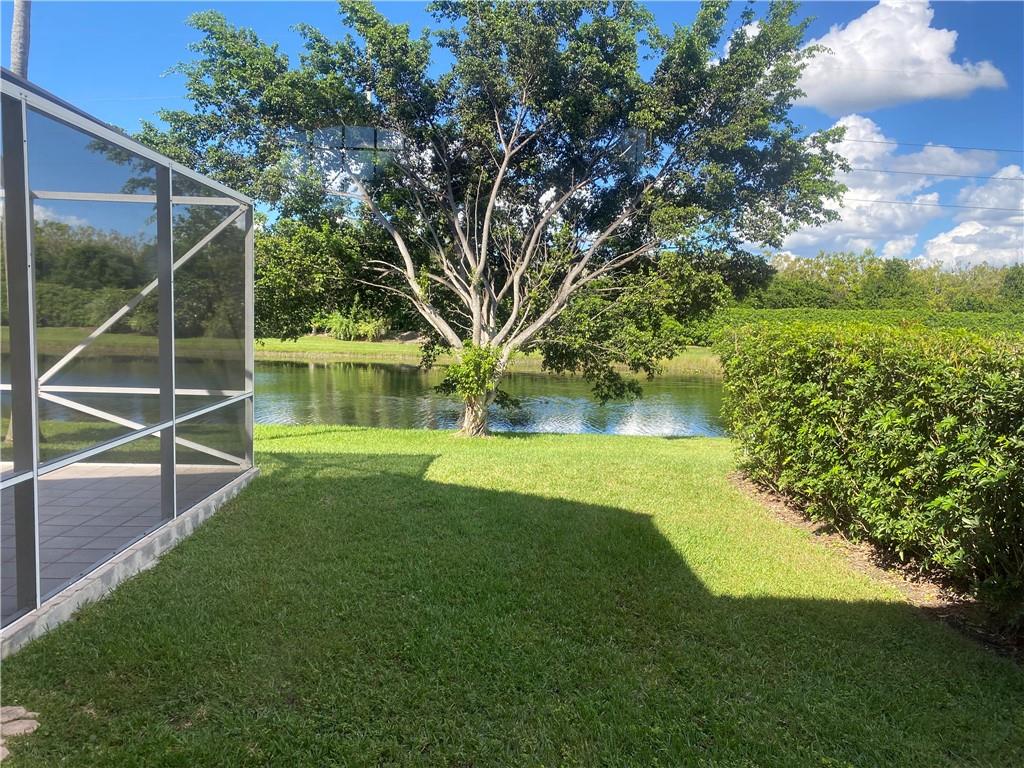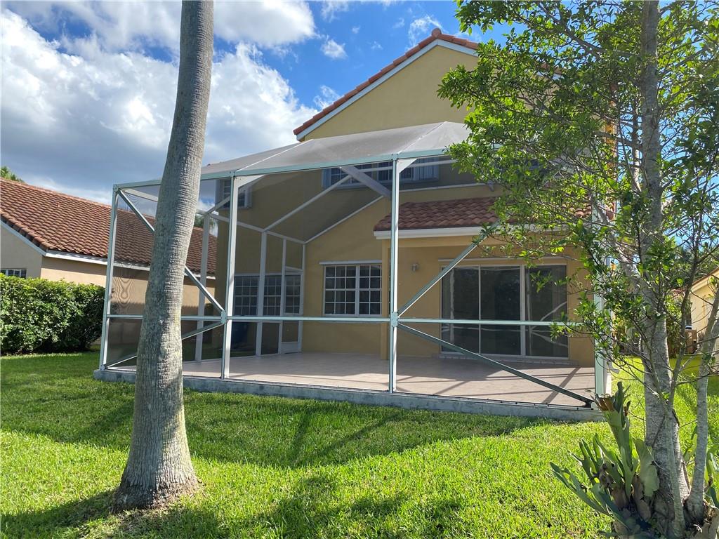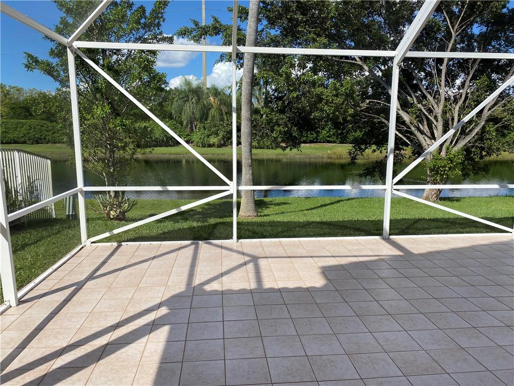 Bright and airy home with vaulted ceiling. Screened patio with lake view and no neighbors in the back. Kitchen and both full baths were remodeled. Polished porcelain tiles on first floor and wood laminate on second floor. All appliances are 2 years new. Newer roof. Freshly painted interior. Full hurricane protection. Gated community with low HOA fees. Walking distance to Indian Trace Elementary.