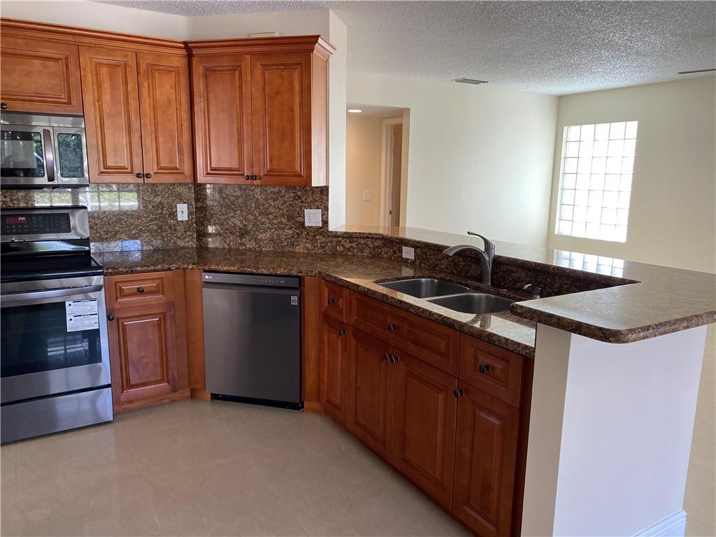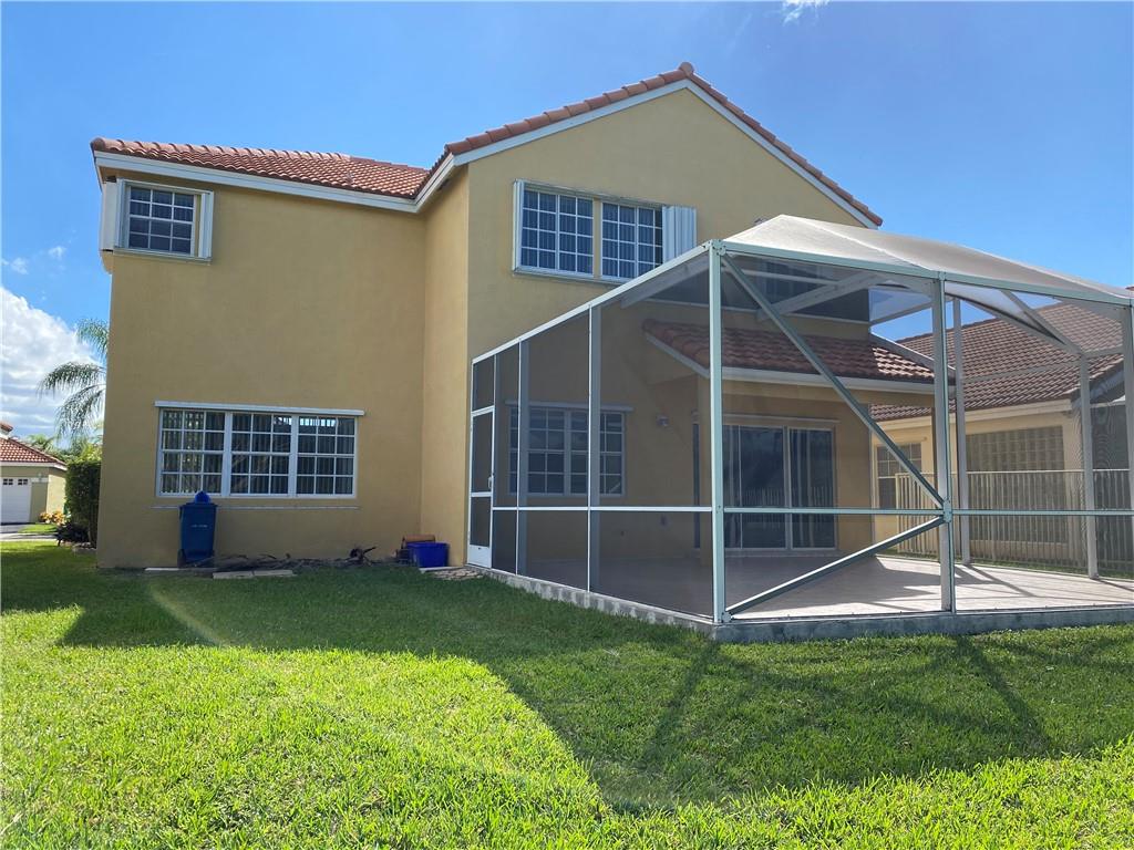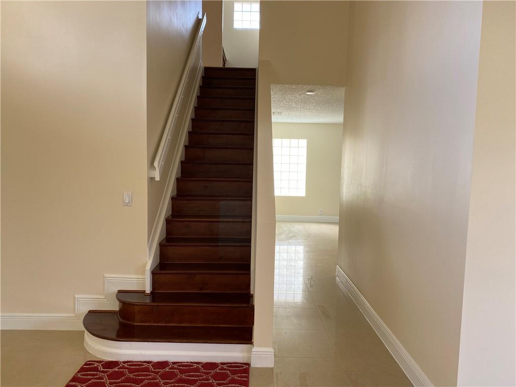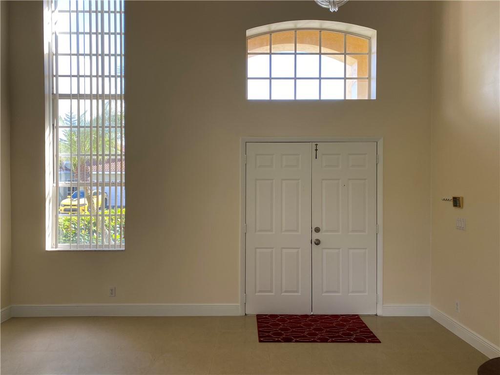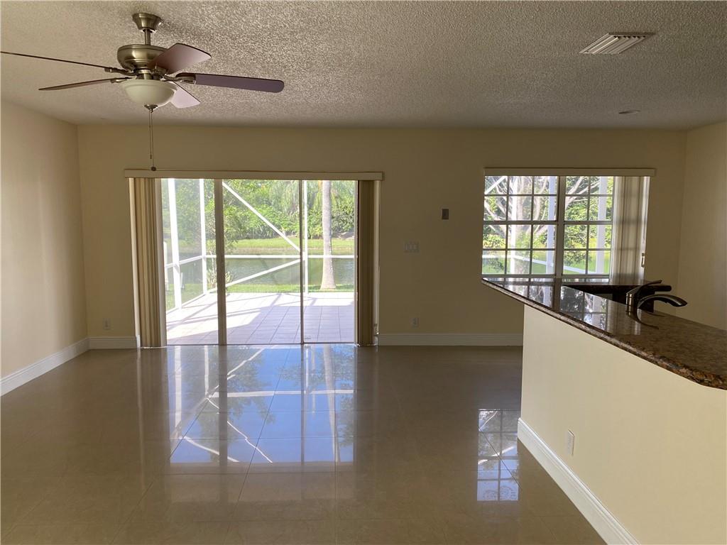 Bright and airy home with vaulted ceiling. Screened patio with lake view and no neighbors in the back. Kitchen and both full baths were remodeled. Polished porcelain tiles on first floor and wood laminate on second floor. All appliances are 2 years new. Newer roof. Freshly painted interior. Full hurricane protection. Gated community with low HOA fees. Walking distance to Indian Trace Elementary.