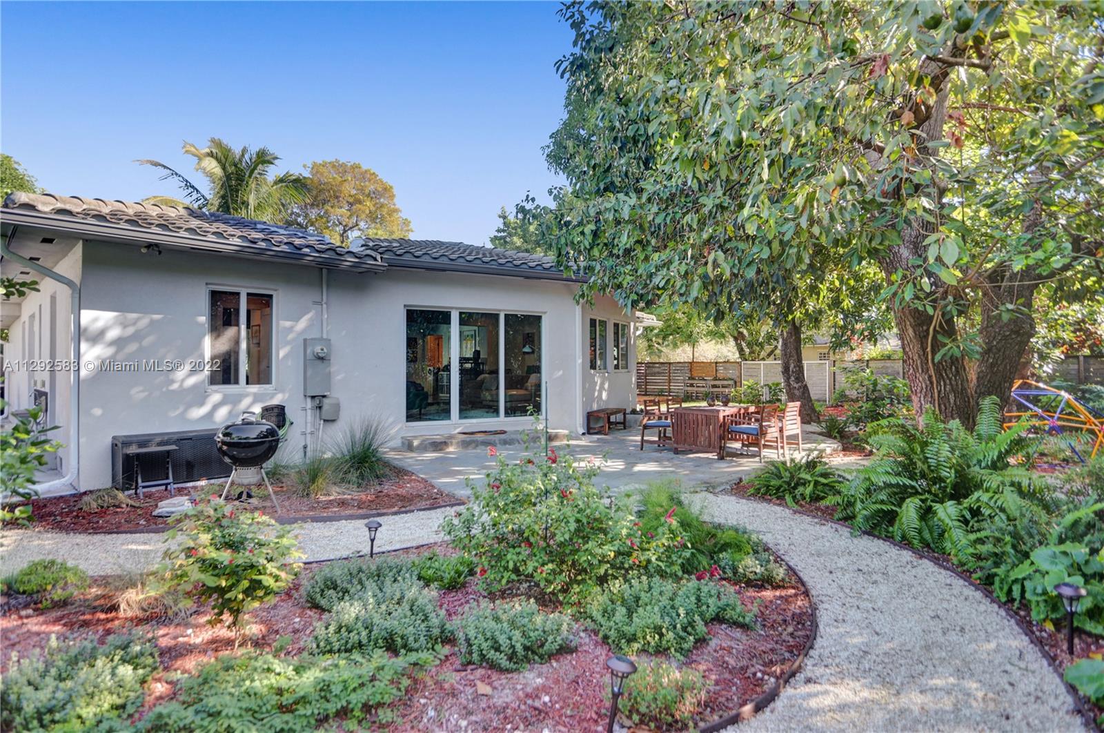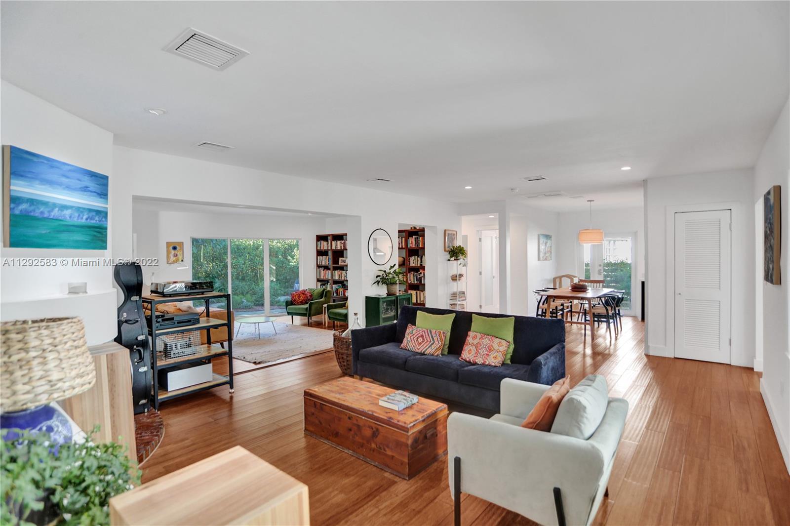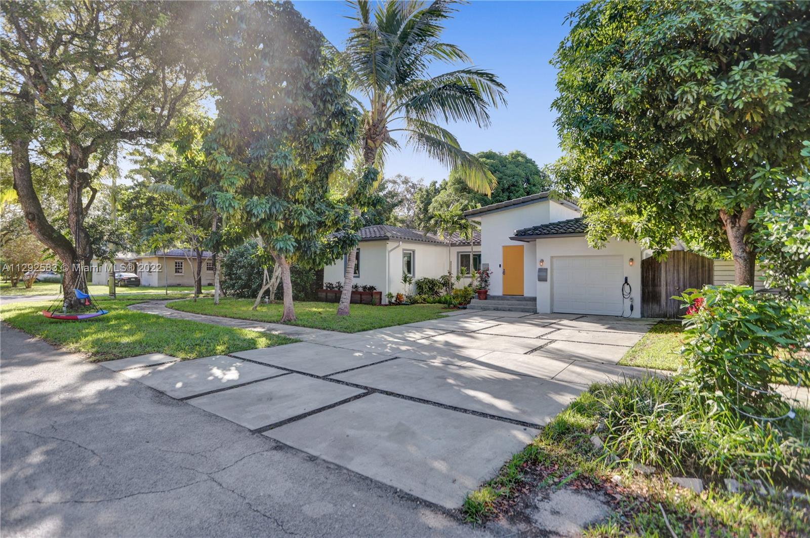 Spectacularly renovated home in the exclusive Miami Shores Village. Open concept modern luxury on an oversized 9,209 SF lot with 3 Bedrooms, 2 bathrooms, 1,783 SF. Radiant home is the epitome of indoor-outdoor living with natural light pouring in and gorgeous views of the lushly landscaped backyard oasis with mature avocado & mango trees. Interior features, impact windows & doors, bamboo floor, fireplace, recessed LED lighting, BRAND NEW bathrooms, stunning primary bath w/marble shower. Kitchen boasts dazzling quartz waterfall countertop, professional & elite series appliances, wine refrigerator, built-in dishwasher. New roof in 2017, garage with stacked washer & dryer, buried power lines. Nestled on a quiet, tree-lined cul-de-sac this is an ABSOLUTE MUST SEE!