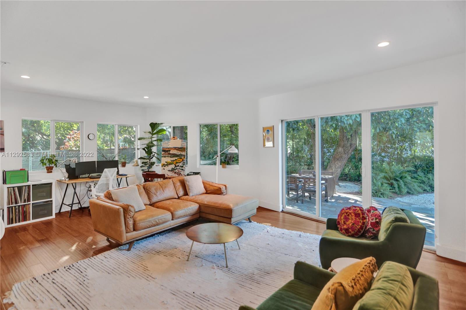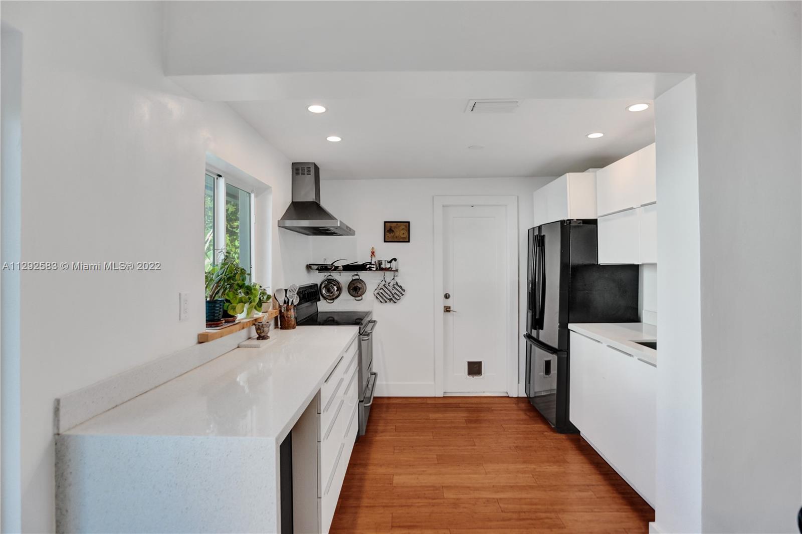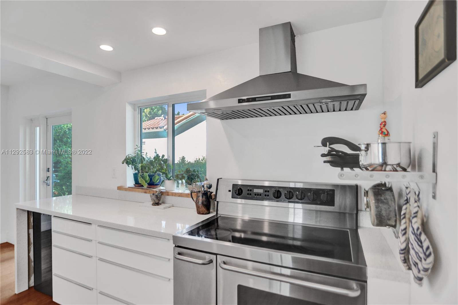 Spectacularly renovated home in the exclusive Miami Shores Village. Open concept modern luxury on an oversized 9,209 SF lot with 3 Bedrooms, 2 bathrooms, 1,783 SF. Radiant home is the epitome of indoor-outdoor living with natural light pouring in and gorgeous views of the lushly landscaped backyard oasis with mature avocado & mango trees. Interior features, impact windows & doors, bamboo floor, fireplace, recessed LED lighting, BRAND NEW bathrooms, stunning primary bath w/marble shower. Kitchen boasts dazzling quartz waterfall countertop, professional & elite series appliances, wine refrigerator, built-in dishwasher. New roof in 2017, garage with stacked washer & dryer, buried power lines. Nestled on a quiet, tree-lined cul-de-sac this is an ABSOLUTE MUST SEE!