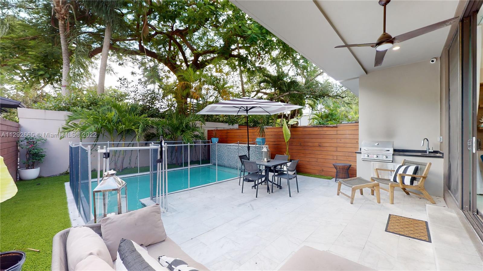 Contemporary urban living at its best. This modern town home was built in 2020 and is located on a quiet, tree lined Center Grove Street with a shaded public park (Lincoln Park) that is enjoyed by children and adults alike. In addition, Blanche Park--one of the best dog and children's parks in Miami-- is located just around the corner. Three blocks from Downtown Coconut Grove and CocoWalk. Not in a flood zone. First floor offers an open floor plan with modern kitchen with a massive island and top of the line appliances, including induction cooktop and wine fridge. Three custom Pedini built-in units provide ample storage and a striking entertainment console on the first floor. Full bathroom on the first floor. No maintenance fee. Two units share the cost of master insurance policy annually.