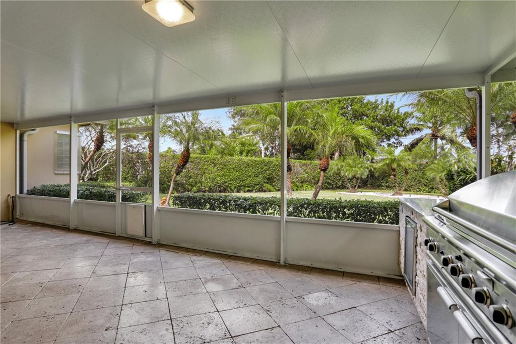 JUST REDUCED!PRICED TO REFLECT CURRENT MARKET CONDITIONS!Beautifully maintained three bedroom three bath oasis nestled in a quiet, beautifully maintained neighborhood with sidewalks and streetlights close to EVERYTHING! Dining, shopping, beaches, business, medical. Screened patio looks out into the lush, tropical and private back yard. Patio has built-in stainless steel gas grill with propane tank buried in the yard and a wine cooler beneath the spacious granite counter top and patio has tile flooring. Bonus full-size LG refrigerator/freezer combo in the laundry room with Whirlpool heavy duty front loader washer and dryer on bases, even a utility sink. Front yard has remote controlled sliding gate across the driveway for security/privacy. Lush, tropical landscaping throughout the property.