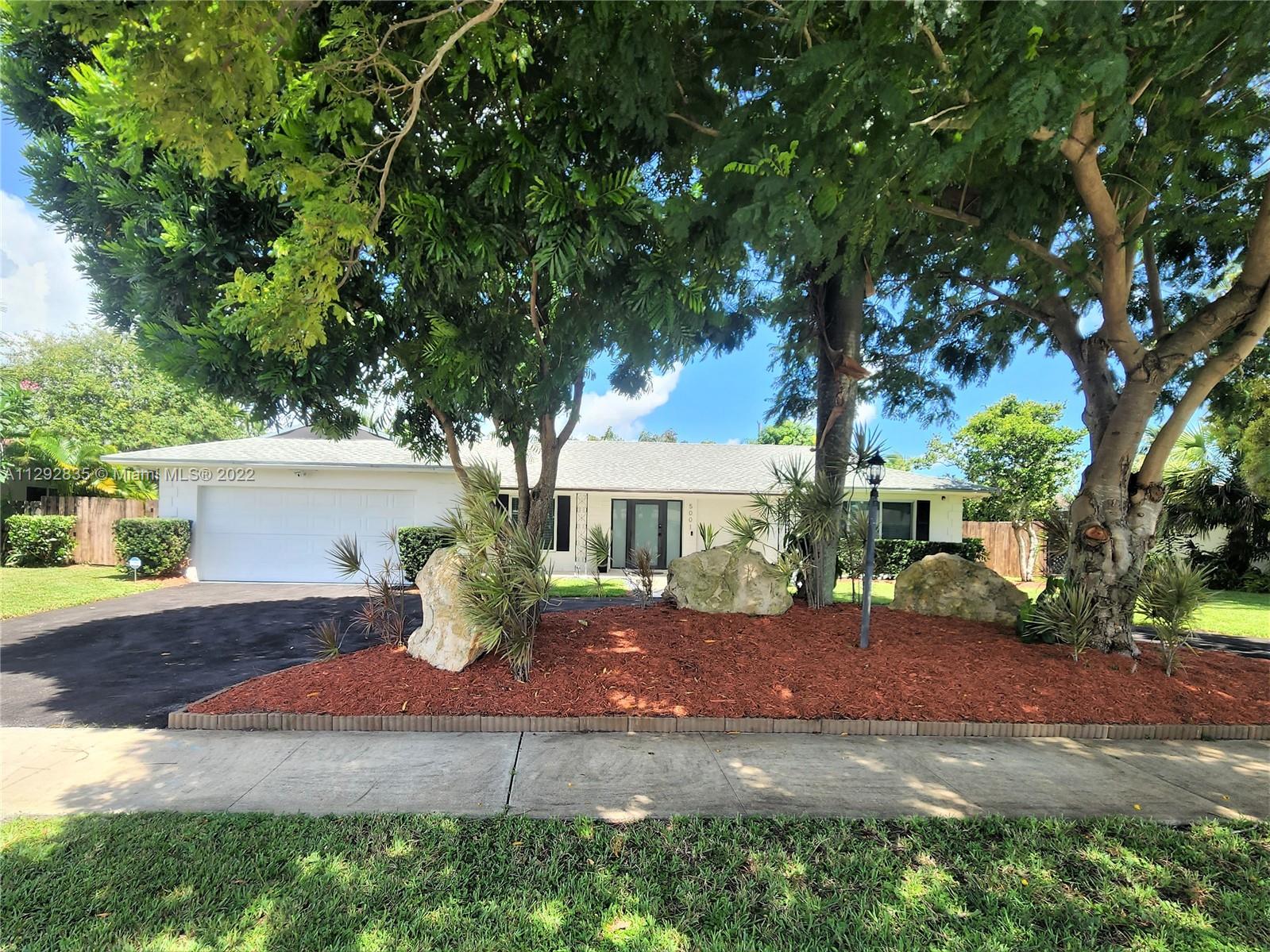 Beautiful and spacious Home with a double lot , over 13,000 SF. 4 large bedrooms plus Den/Office . New Carrara quartz counter tops ,New plaster and paint on walls, Remodeled bathrooms with wide showers, Very spacious and Peaceful garden with many fruit trees and palms. It can be Easily divided into 2 homes, offering Multi-Generational Living. 10 minutes to Fort Lauder-dale AIRPORT, 15 minutes to the BEACH. No homeowners association. Owner Agent. Ready to move in..... You will Love it.