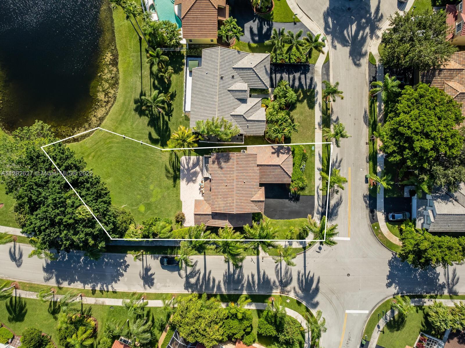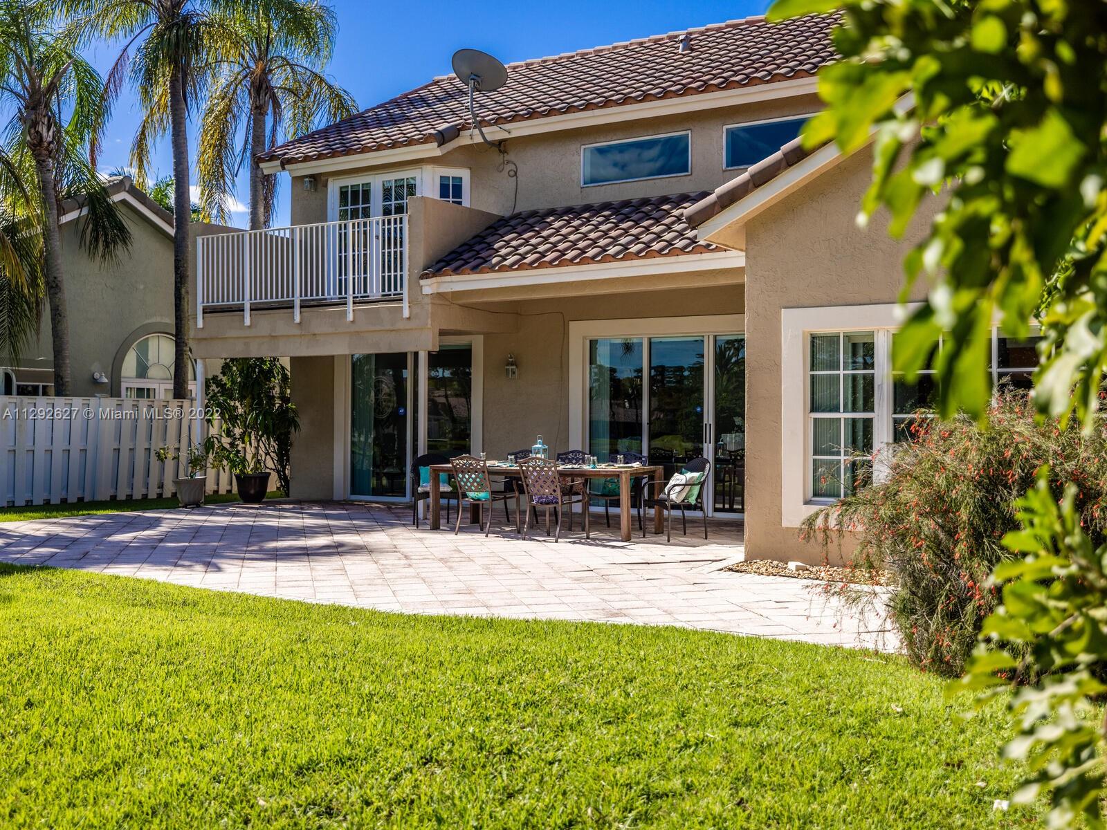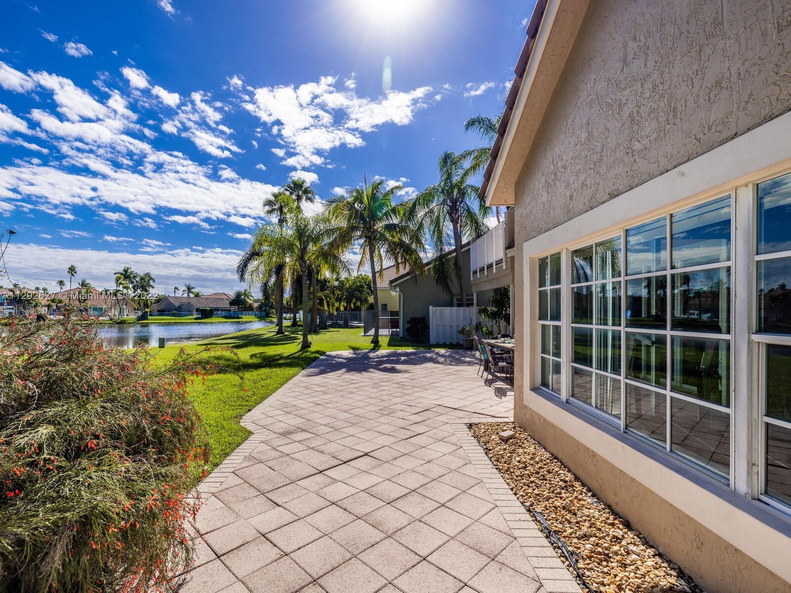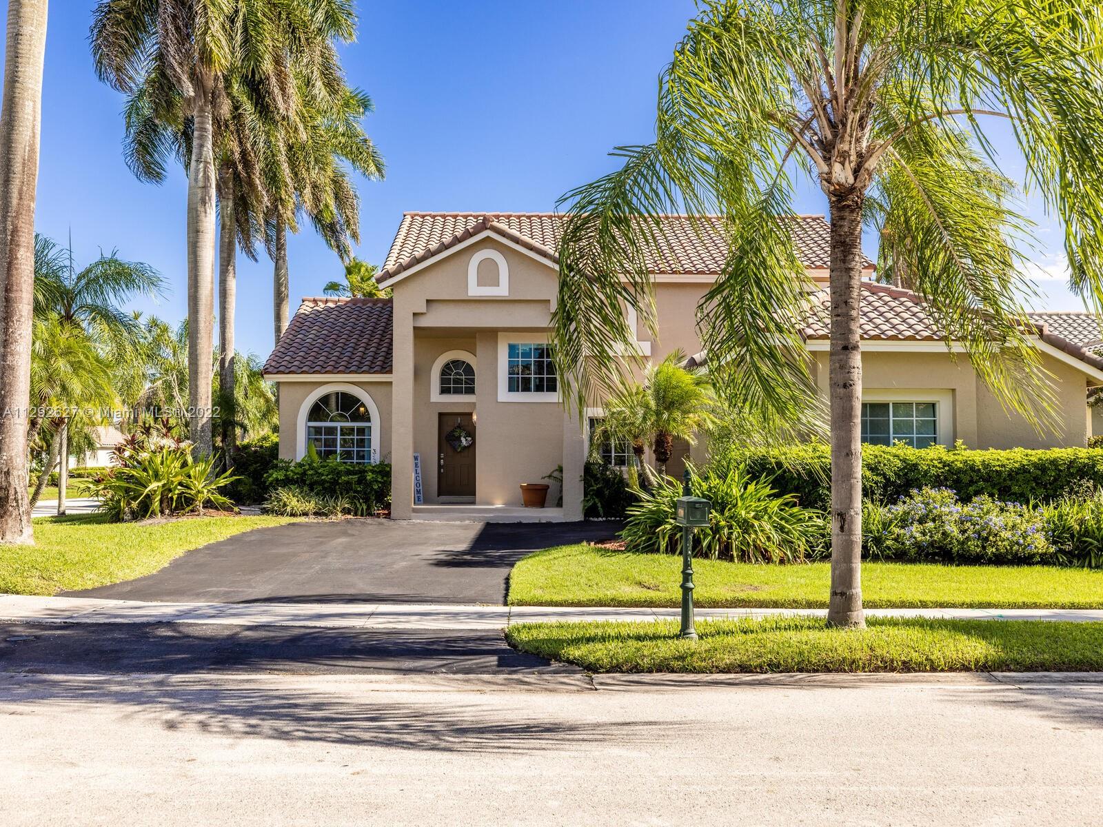 Elegant home sits on an oversized corner lot & cul-de-sac; it’s breathtaking from the minute you drive up. Step inside and you are greeted by soaring 20 ft. ceilings in the foyer & formal living room with an amazing view of the backyard and lake. 24” porcelain tile flooring leads to the gorgeously renovated kitchen, with granite & SS appliances and family room. 2 bedrooms & newly remodeled bath on 1st floor. Upstairs you will find the private master suite with a large bay window with French doors leading to an open balcony. Beautiful dark wood laminate flooring on the stairs and 2nd floor. The roof was replaced in 2009. Great location in the heart of Weston with top rated schools!