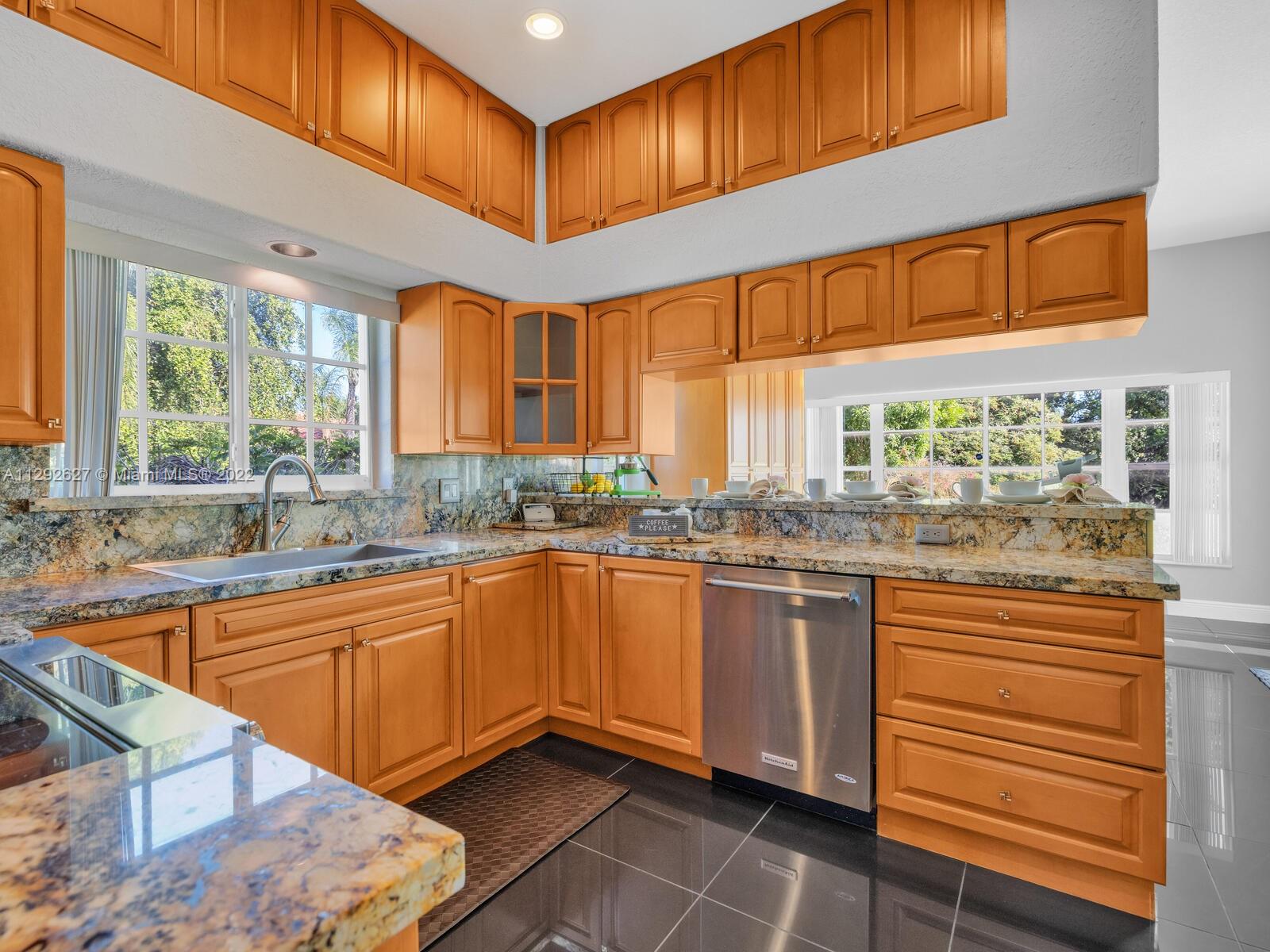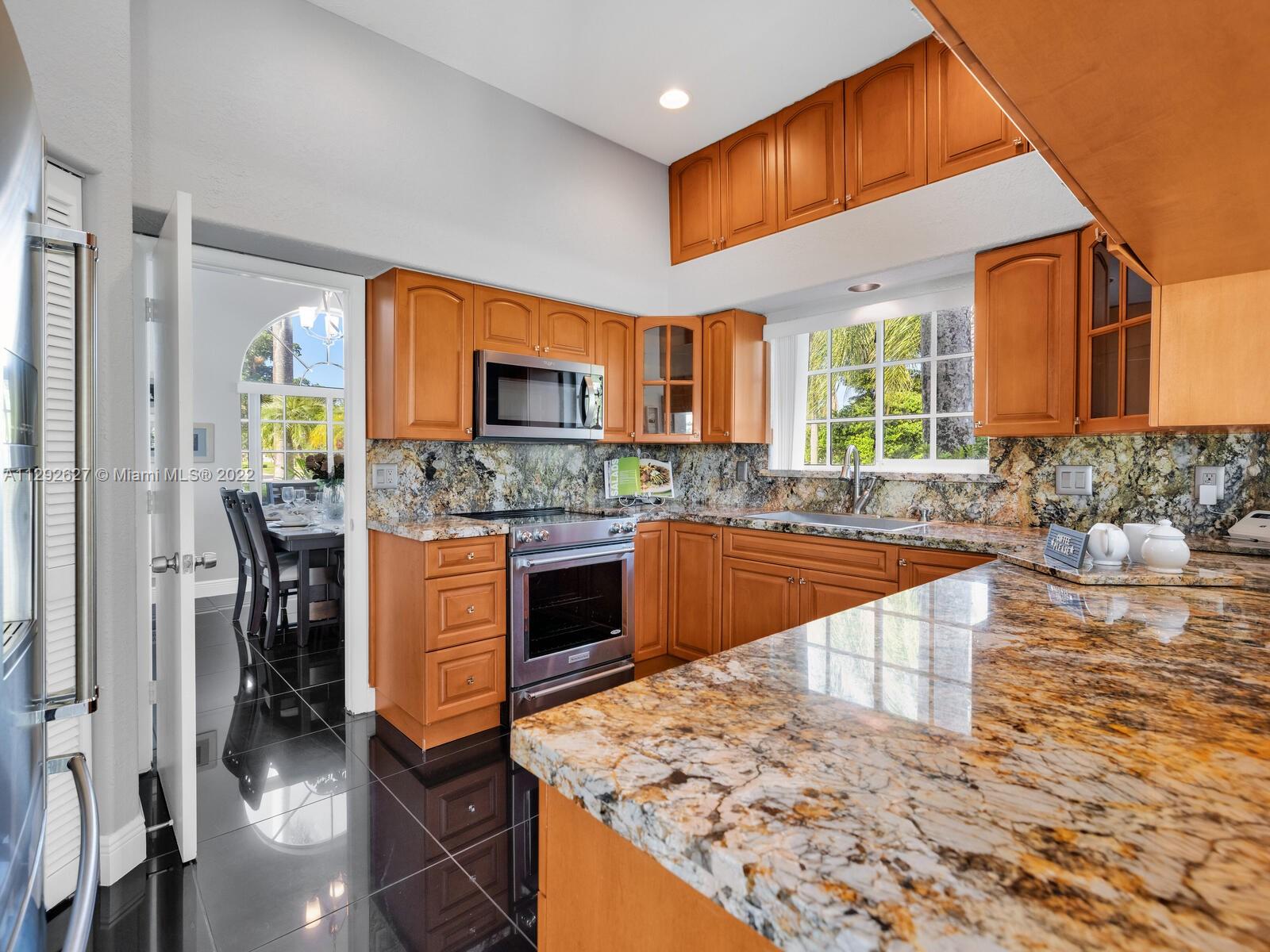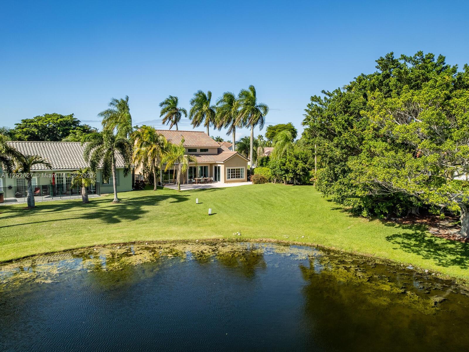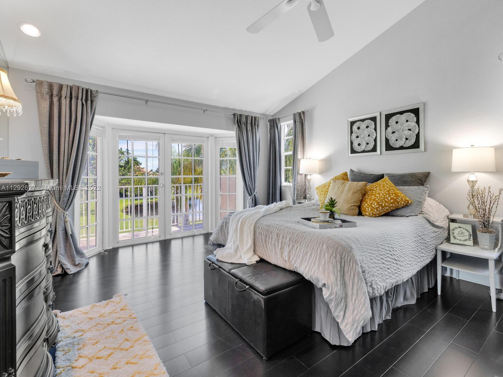 Elegant home sits on an oversized corner lot & cul-de-sac; it’s breathtaking from the minute you drive up. Step inside and you are greeted by soaring 20 ft. ceilings in the foyer & formal living room with an amazing view of the backyard and lake. 24” porcelain tile flooring leads to the gorgeously renovated kitchen, with granite & SS appliances and family room. 2 bedrooms & newly remodeled bath on 1st floor. Upstairs you will find the private master suite with a large bay window with French doors leading to an open balcony. Beautiful dark wood laminate flooring on the stairs and 2nd floor. The roof was replaced in 2009. Great location in the heart of Weston with top rated schools!