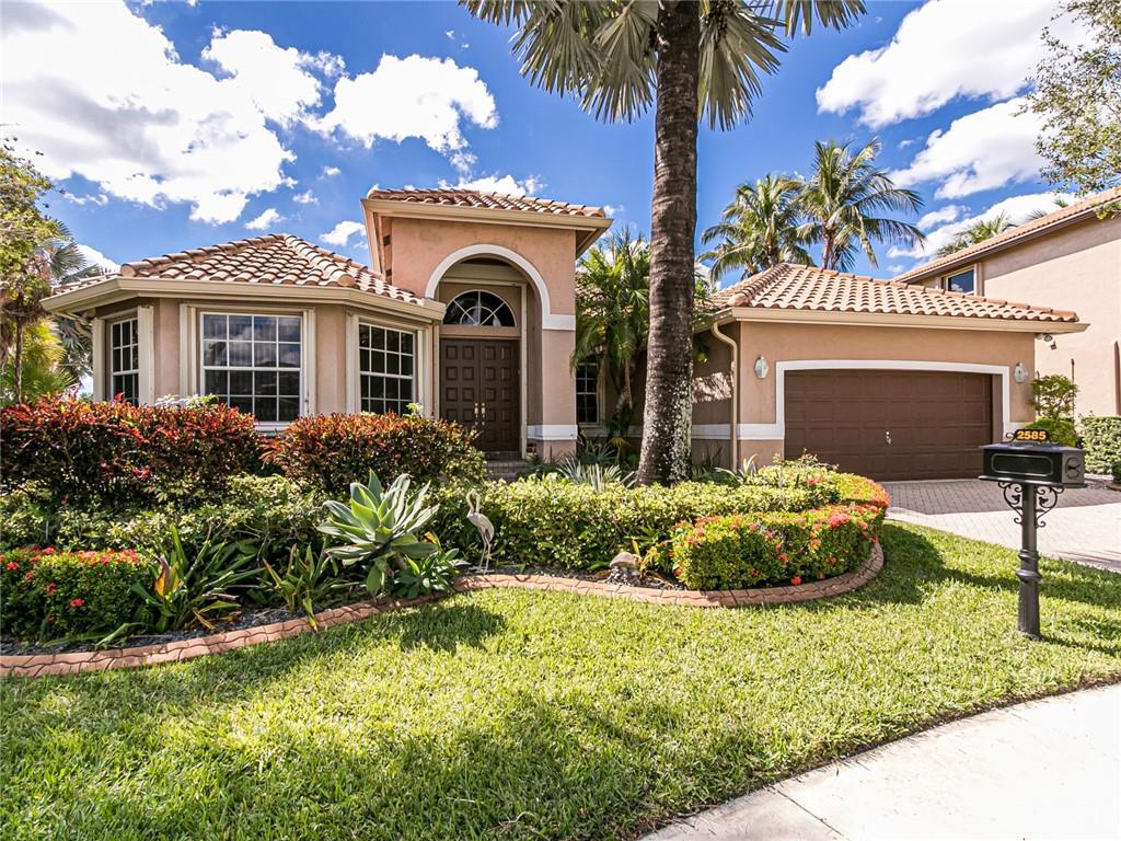 Come see this rarely available "Jasmine Five" model located in the Jardin section of Weston Hills. The possibilities are endless with this spacious (3,000sf+) home. It has a beautiful layout with 4 bedrooms, 3 full bathrooms and a separate den/office. The kitchen & primary bathroom have been updated. The roof is 2 years old. The home sits on an oversized culdesac lot that overlooks a lake with no neighbors behind you. It boasts 12ft ceilings and tile flooring in the main living areas, a lovely breakfast nook with views of the lake. Plenty of space for entertaining, a 2-car garage, accordion hurricane shutters, and much more! The primary bedroom suite is separate from the other bedrooms and has dual walk-in closets. The office has a built-in workspace that will convey with the sale.
