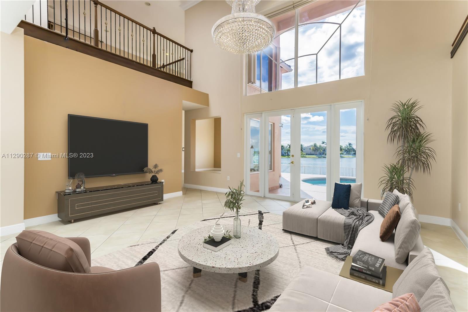 STUNNING FIVE BEDROOM, PLUS LOFT, THREE & A HALF BATHROOM, TWO STORY HOME W/SPECTACULAR VIEWS OF THE WIDE LAKE FROM THE FRONT & BACK OF THE HOUSE! LOWER LEVEL OF THIS HOME IS PROTECTED BY ***HURRICANE IMPACT WINDOWS & DOORS***, UPPER LEVEL IS PROTECTED BY ACCORDION SHUTTERS. THIS HOME FEATURES TILE FLOORING ON THE LOWER LEVEL, WOOD LAMINATE FLOORING ON THE STAIRS & UPPER LEVEL, UPGRADED WROUGHT IRON STAIR RAILING, CROWN MOLDING, BEAUTIFUL CHANDELIERS & UPGRADED BLINDS THROUGHOUT. CHEFS KITCHEN IS COMPLETE W/GRANITE COUNTERTOPS, WOOD CABINETRY, DECORATIVE BACKSPLASH & SNACK BAR. TWO BEDROOMS LOCATED ON THE LOWER LEVEL. THE FENCED-IN BACKYARD IS PERFECT TO ENTERTAIN W/A LARGE POOL, SPA & PATIO OVERLOOKING THE LAKE. LOCATED IN A CUL DE SAC W/NO NEIGHBORS IN THE FRONT OR BACK OF THE PROPERTY.