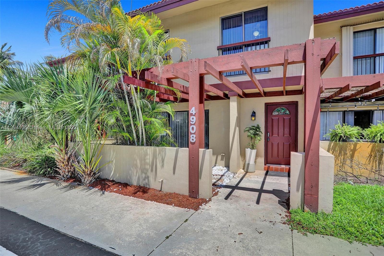 *Spectacular 4/2.5 townhome 2,100 sq ft in excellent location. This property is very spacious, family room, kitchen has a breakfast area, laundry room. All bathrooms have been tastefully remodeled. Master bedroom has an oversized walking closet with seating area. Beautiful wood stairs. Screened patio. Newer A/C, tankless water heater. Pergola covered terrace at the entrance, with a space to sit down and grow a beautiful garden. One of the biggest models in Hollywood Hills. Prime location, close to Hard Rock Hotel, walking distance to Temples, shopping malls, restaurants. Hurry, this opportunity will not last!!