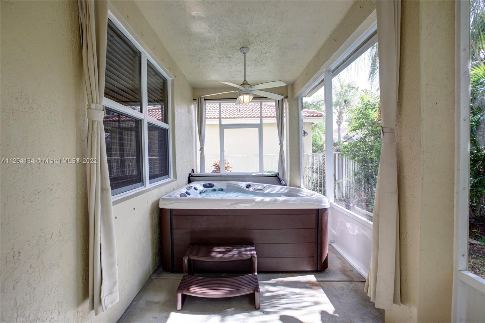 Wonderful home in gated Savanna Community. Impact windows and doors throughout. Poplar model with double door entry, 4 bedrooms, 2 and a half baths, breakfast area and family room. Kitchen features 42" cabinetry, new Bosch dishwasher and side by side refrigerator. Remodeled guest bathroom. High hats throughout. Extended roofed and screened patio the width of the house with hot tub. Newly fenced back yard. A-Rated Public Schools. Savanna is a resort style community with 24 hours security, low HOA fees and features community pools, mini golf, Cafe, activities (baseball, football, basketball, art, zumba or soccer lessons). Two guarded gates, passive parks and easy access to I75 and I595.