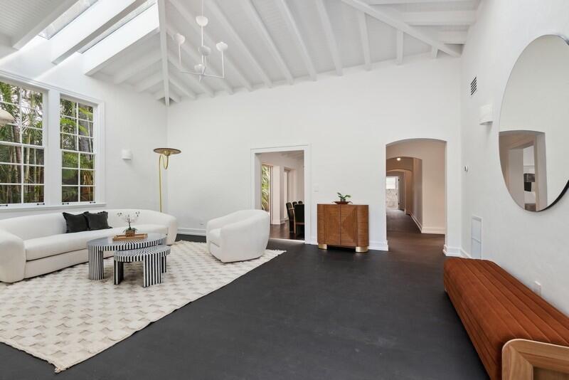 This beautifully remodeled and maintained classic 1930 Spanish Mediterranean style home was designed by Robert Law Weed. The living room features soaring wood beamed ceilings and a large fireplace. Hardwood floors throughout the home make it feel warm yet elegant; while newly installed skylights throughout provide natural light that fills up every corner. A new custom chef inspired kitchen includes Viking stove & refrigerator and glass doors leading out onto breakfast nook. The bathrooms in this home are beautifully designed with statuary marble tile and / or white subway tile. Spanish barrel tile roof was replaced in 2019. There are two air conditioning zones, a heated pool. Centrally located to South Beach, Lincoln Road, Design District,Downtown, airport, and houses of worship.