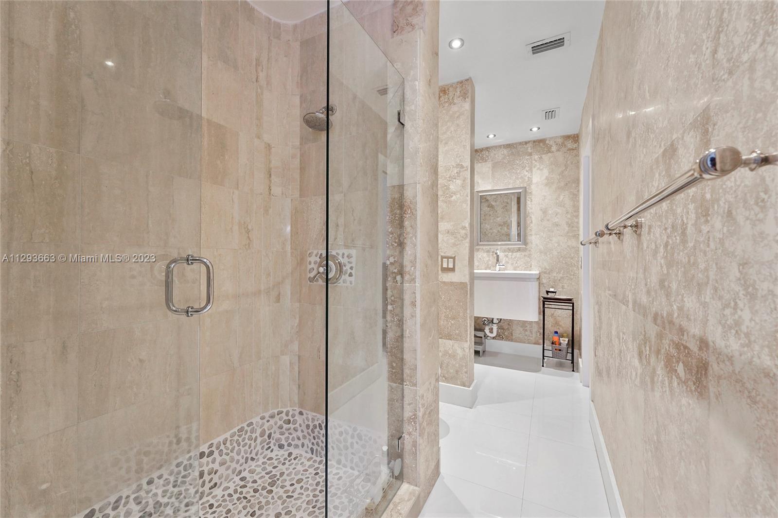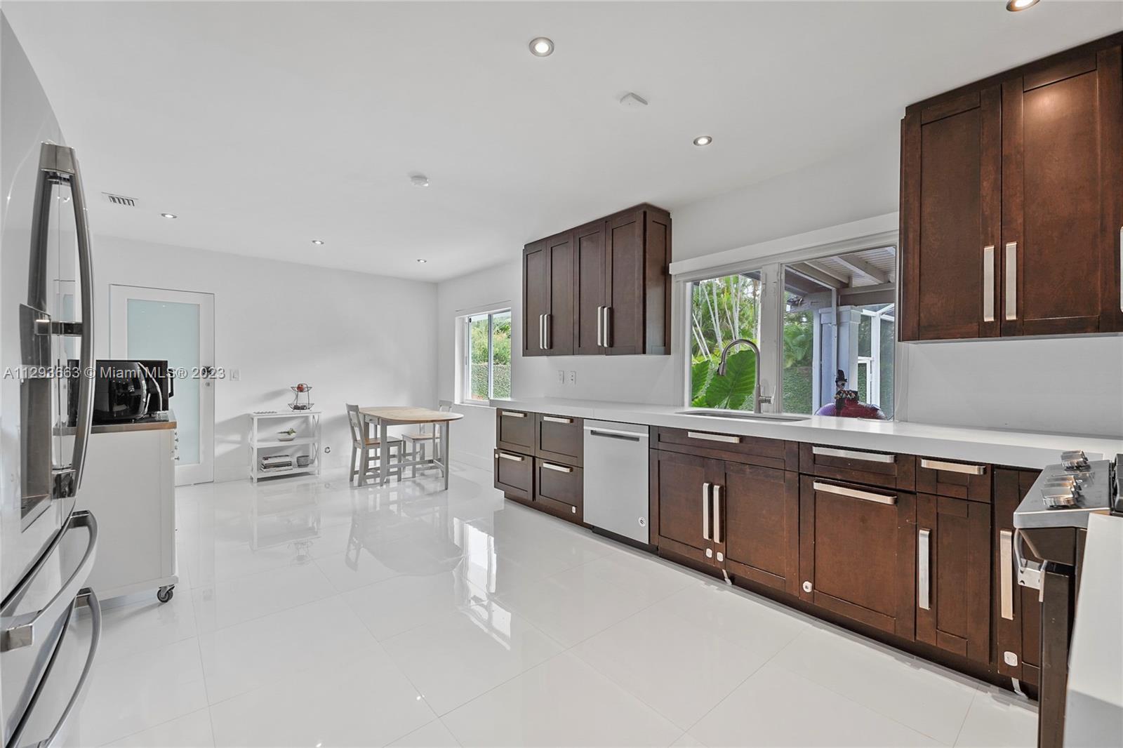Beautifully remodeled house perfectly located in Pinecrest by the Sea, a coveted gated community close to Miami's best public and private schools. Convenient 2 car port – cochere protecting your cars from sun and rain. This impeccable 5/3 house has a very convenient floorplan consisting of 4 bedrooms in one side and 5th bedroom closer to living areas which has been converted to a perfect spacious home - office for two. Splendid closets. Spacious kitchen with gas stove and laundry room with a tub. Air-conditioned garage which can perfectly be used as a gym, art studio or as you might desire. Hurricane impact windows and doors. Inviting spacious roofed, sparkling pool and bonus basketball court. Easy to show**