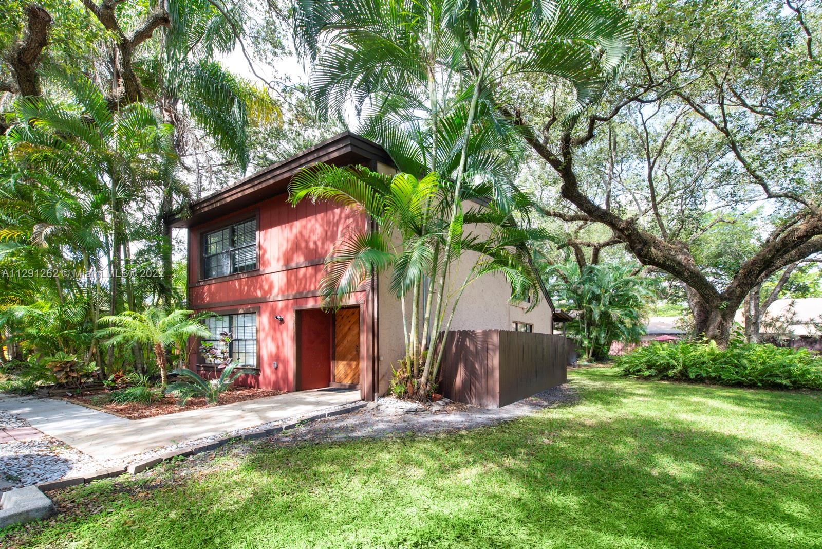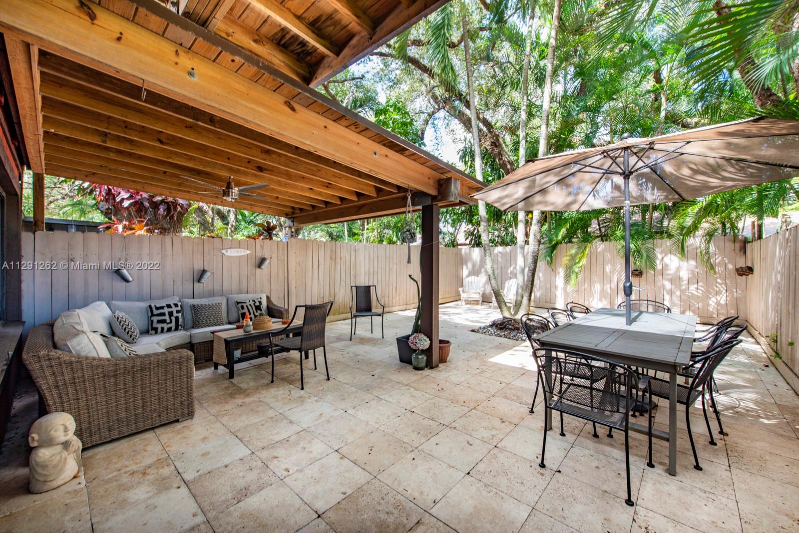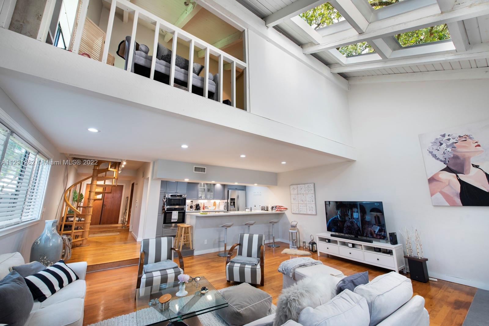 This one of a kind, corner, garden townhome, is like no other. Large outdoor spaces with Oak canopy and large park like setting. Indoors is infused with natural light, two story beamed ceilings and den office downstairs with 2 bedrooms upstairs. Kitchen and baths have been updated. Don't miss this opportunity. Seller currently has offer but actively showing for back up contract.
