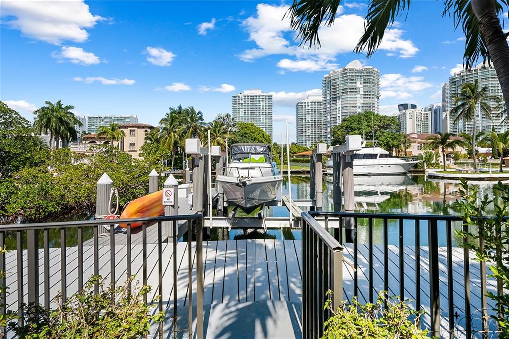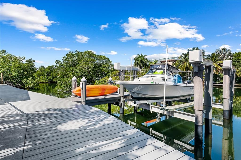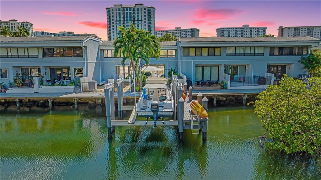 Magnificent waterfront townhome located in the exclusive gated community of Poinciana Island. This unique, rarely available, 4 bed 3 bath residence is the only one on the island that comes with a deeded boat dock and 30,000 lb boat lift with LED lighting. Walk into an open living and dining room concept with high ceilings and porcelain tile flooring throughout. Enjoy your custom-built wine cellar and kitchen that features designer granite countertops and backsplash with SS appliances. The 2nd floor features the master bedroom with his & her closets and beautiful waterfront views. Entertain your guests with a built in BBQ and private backyard that faces multi-million dollar homes on an open wide canal. Amenities include: tennis courts, basketball courts, 2 heated pools, gym, & clubhouse.