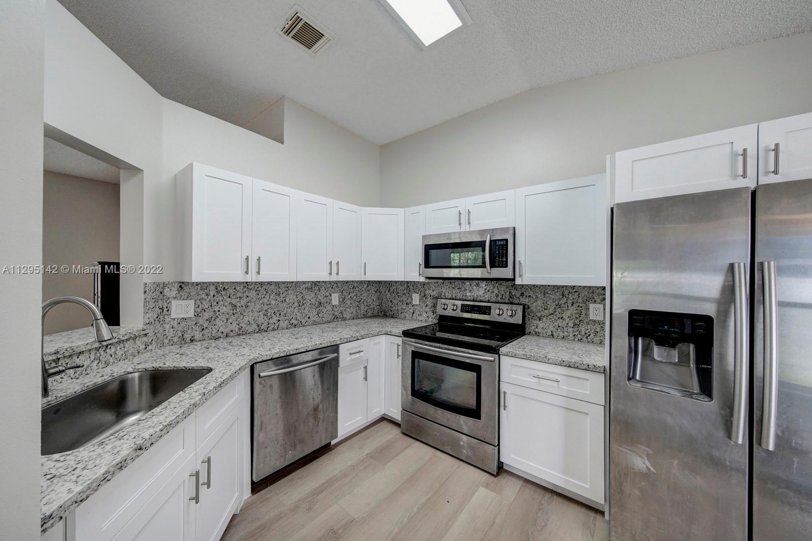 One-story single-family home in West Lake Village which backs up to nature preserve for privacy. New neutral flooring throughout new kitchen with white shaker cabinets and light gray granite counters. New light fixtures, freshly painted interior with new baseboard throughout. New vanities with granite counters in both bathrooms. Garage converted to 4th bedroom, home office, gym or whatever you need it to be. The original poly pipes that were in the unit were replaced with permits. Amazing guard gated community east of US1 community features heated swimming pool, tennis courts, basketball courts, exercise room, club house and playground. Less than a mile to Beaches and parks. Close to restaurants, shopping and airport.
