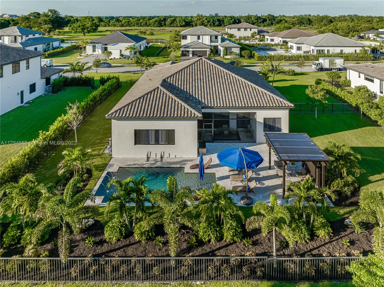 Looking for a NEW HOME....check out this less than 2 year old spectacular home in Davie on almost a ½ acre, featuring four bedrooms, 2.5 baths, & 3 car garage with exquisite pool & patio. This one story home has it all...12 foot ceilings, impact windows, two A/C systems, along with a custom kitchen, including Italian double stacked cabinets. There are plantation shutters throughout, salt-water pool, screened patio, along with many high-end upgrades. This executive home features an open floor plan & tons of windows to take advantage of the huge, private yard with a resort quality pool/patio! Located in a boutique gated community of Arbor Reserve, just east of I-75 and north of Griffin Blvd, with easy access to expressways, shopping and great schools. This NEWER HOME will not last!