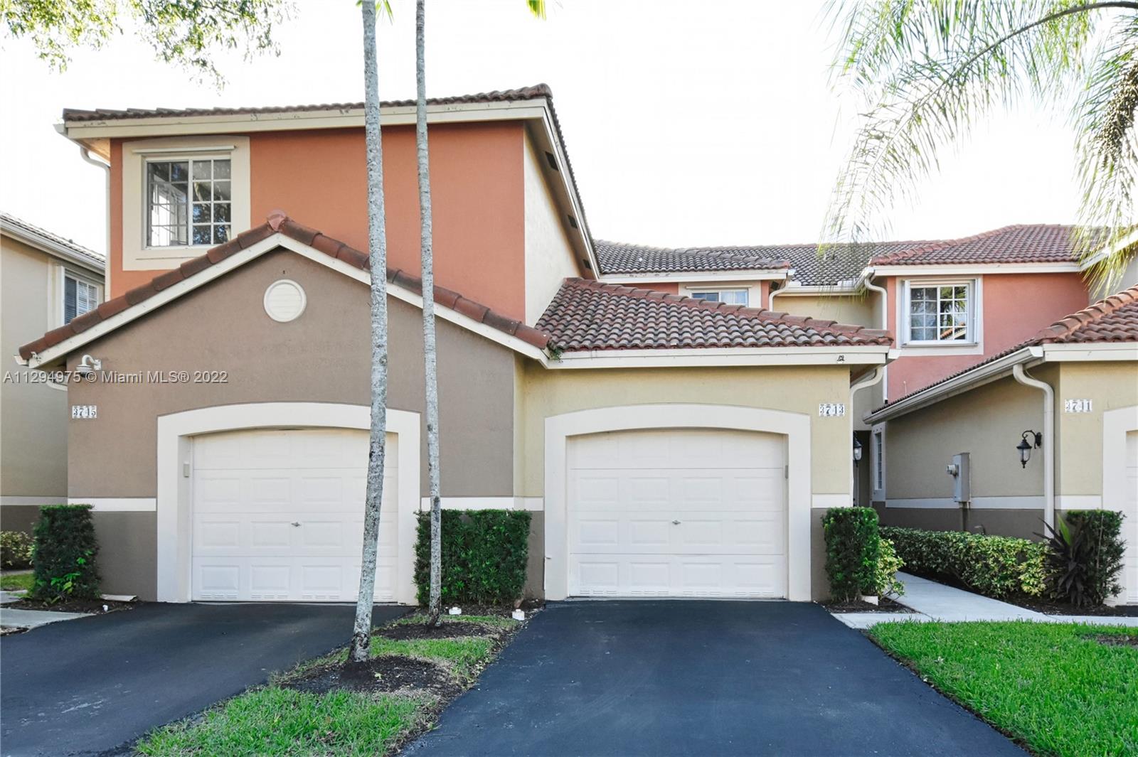Great Townhouse with an excellent layout: 2 large bedrooms upstairs each with its bathroom inside, and 1/2 bathroom downstairs in a desirable location in Weston. Screened patio. New Refrigerator, New Water Heater, New A/C Condenser. Close to A+ schools, parks, grocery stores, shopping, Cleveland clinic hospital and major highways. Well maintained and friendly San Simeon community.