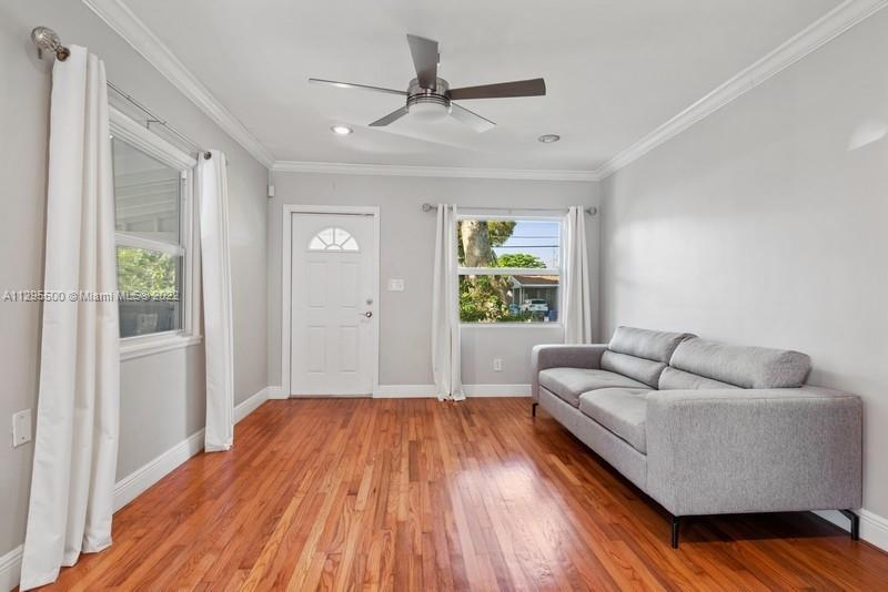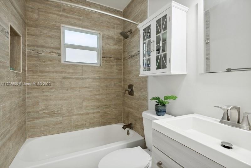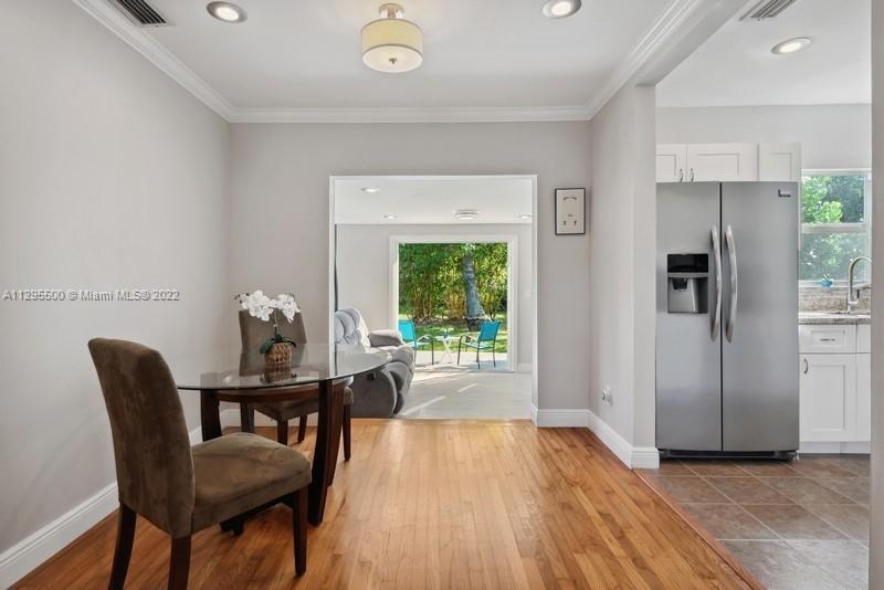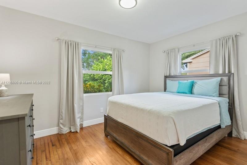 Remodeled, painted and ready for you! (Sq ftg is 1135.) All new hurricane impact windows, beautiful original oak flooring, under-air tiled sun room facing tropical fenced yard with fruit trees and butterfly garden. Gas stove and hot water heater, all stainless appliances, LG washer/dryer inside. Home is bright and light, with crown molding, upgraded electrical. Covered parking--large carport plus outdoor storage. Close to everything--entertainment, shopping, houses of worship, schools, transportation, and of course, spectacular Hollywood Beach Broadwalk and pristine Beaches. Will be sold turn-key furnished--Seller including all furnishings, dishes, etc. Great opportunity for investment property, or move right in and start enjoying your tropical oasis!