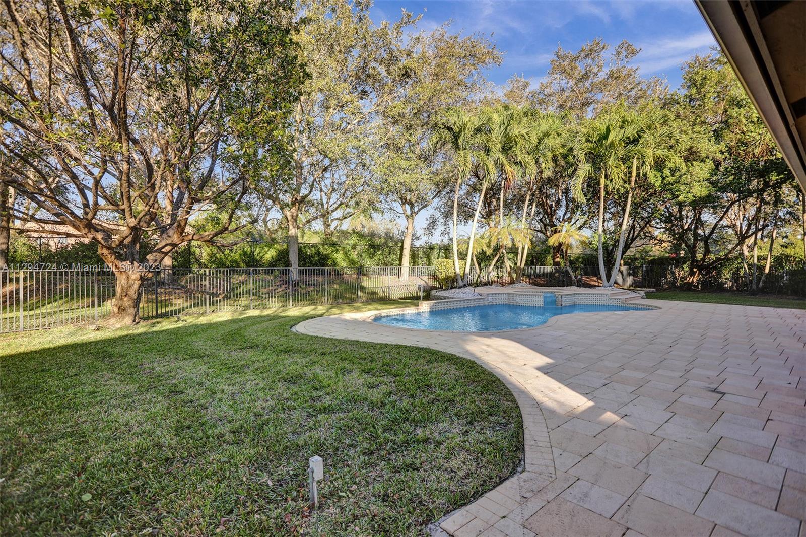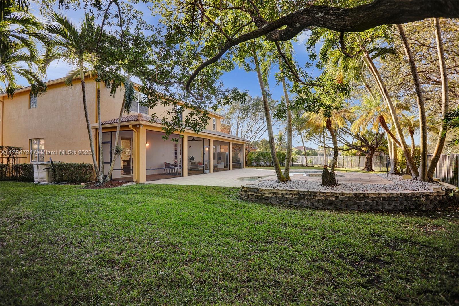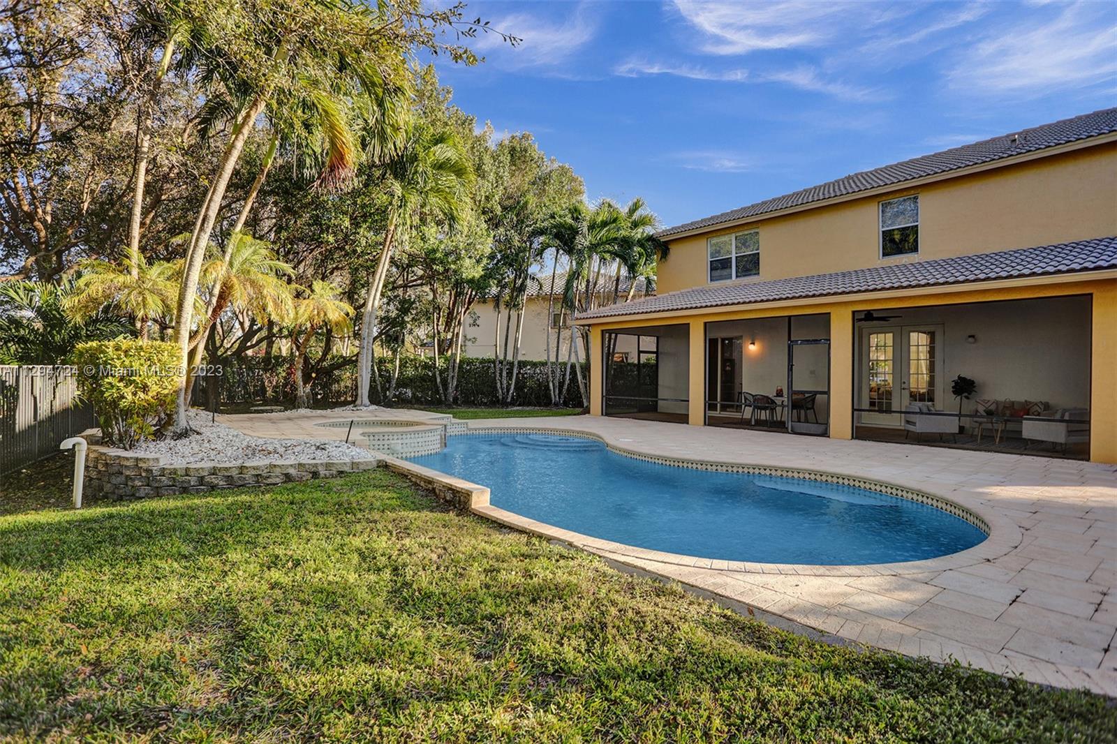 Beautiful home in a cul de-sac in the great community of Isles at Weston with 5 bedrooms and 3 1/2 baths. Freshly painted in white. Home shows likw model with porcelain tile downstairs and modern flooring upstairs. Large kitchen with granite, stainless steel appliances and wood cabinets. Enjoy the outdoors with oversized covered screened patio and nice pool with spa and huge yard to play and enjoy with nice views of lake. Walking distance to top rated schools. Clubhouse is like a resort and has just been remodeled with state of the art gym and is very nice with pool, basketball court, volleyball, playground and more. HOA incl. WIFI, cable, common area, security and landscape around lake.
