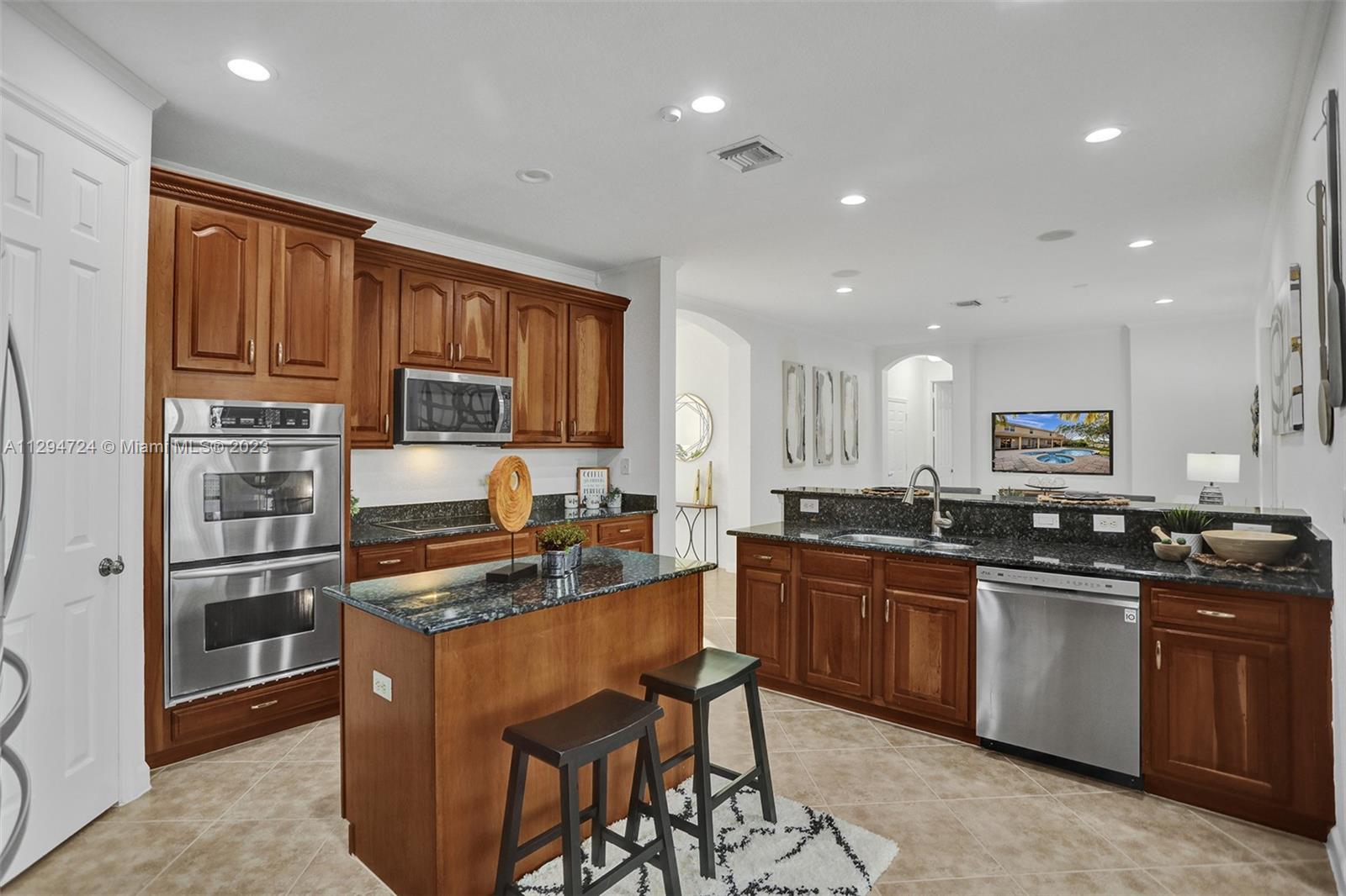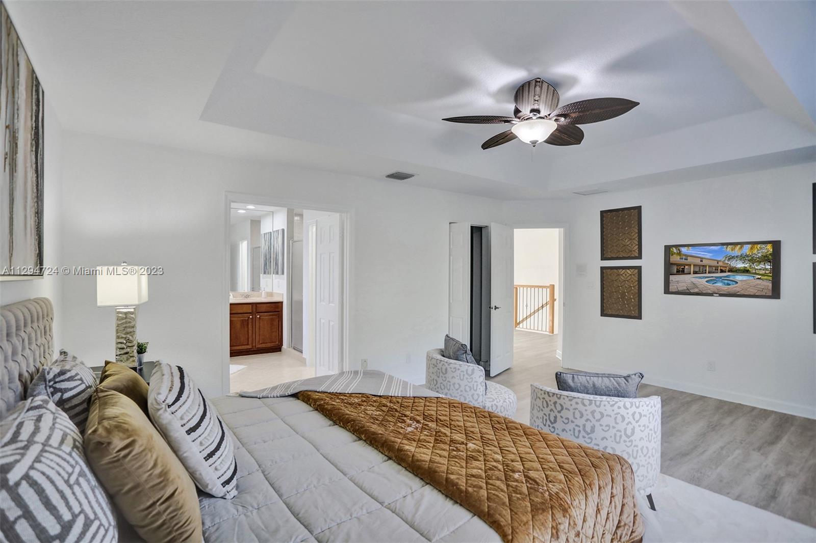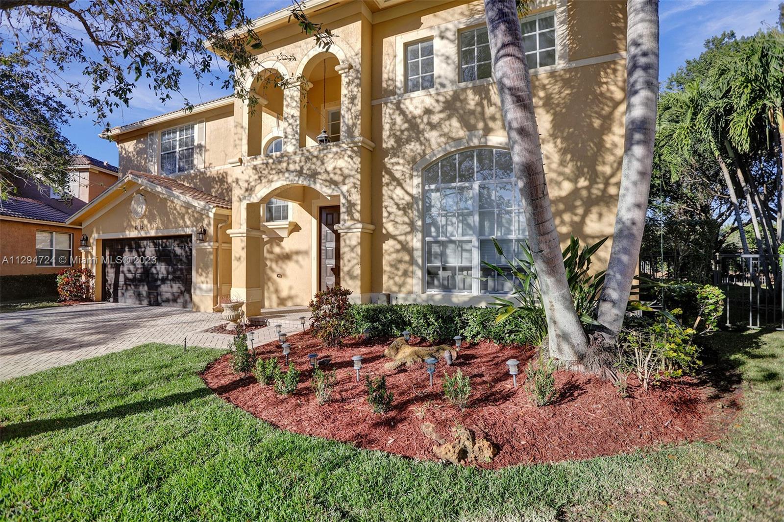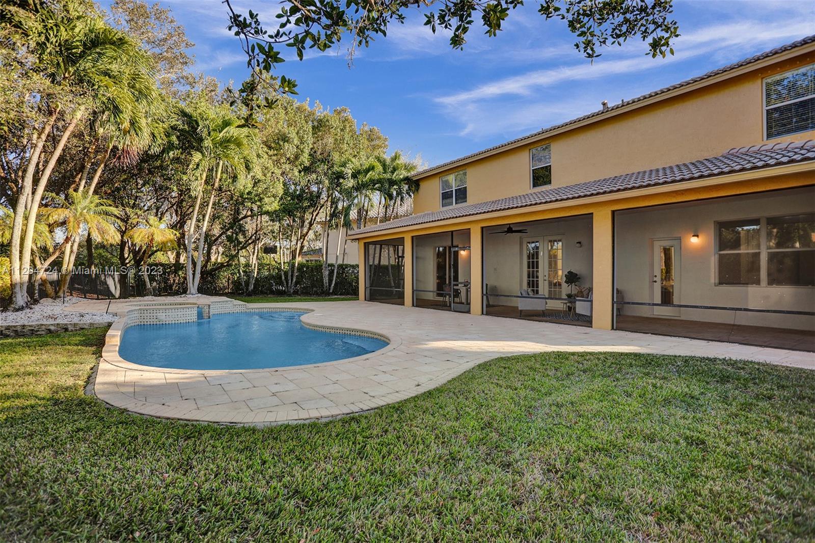 Beautiful home in a cul de-sac in the great community of Isles at Weston with 5 bedrooms and 3 1/2 baths. Freshly painted in white. Home shows likw model with porcelain tile downstairs and modern flooring upstairs. Large kitchen with granite, stainless steel appliances and wood cabinets. Enjoy the outdoors with oversized covered screened patio and nice pool with spa and huge yard to play and enjoy with nice views of lake. Walking distance to top rated schools. Clubhouse is like a resort and has just been remodeled with state of the art gym and is very nice with pool, basketball court, volleyball, playground and more. HOA incl. WIFI, cable, common area, security and landscape around lake.