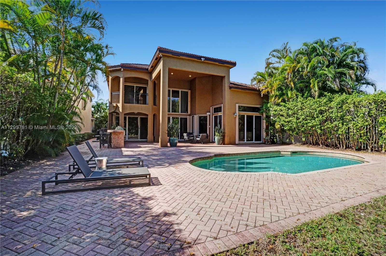 Presidential Estates, highly desirable Garland model located on a large 10,521sqft lot with beautiful garden views. This select lot allows for extra privacy and safety so children can directly access the park's interior path from the backyard. The home offers 6 beds 4.5 baths with many upgrades including marble and wood floors, updated baths, chef's kitchen w/gas cooking, volume ceilings, two walk-in primary closets, 2 car garage, large backyard patio with pool, a summer kitchen & plenty of room for backyard entertaining. This exclusive guard gated community is ideally located near restaurants, shops, schools, houses of worship and is close to beaches, international airports, and major highways. Call today for a private or virtual showing.