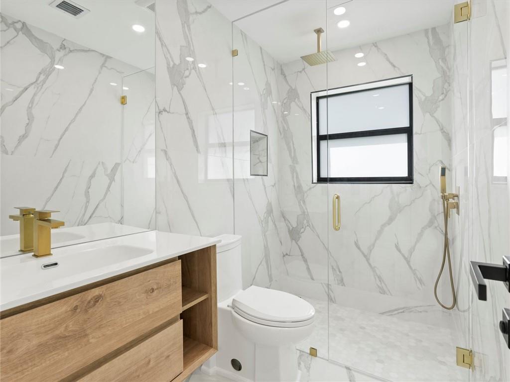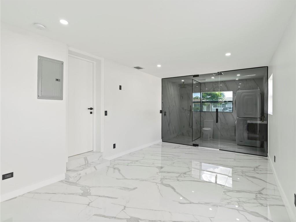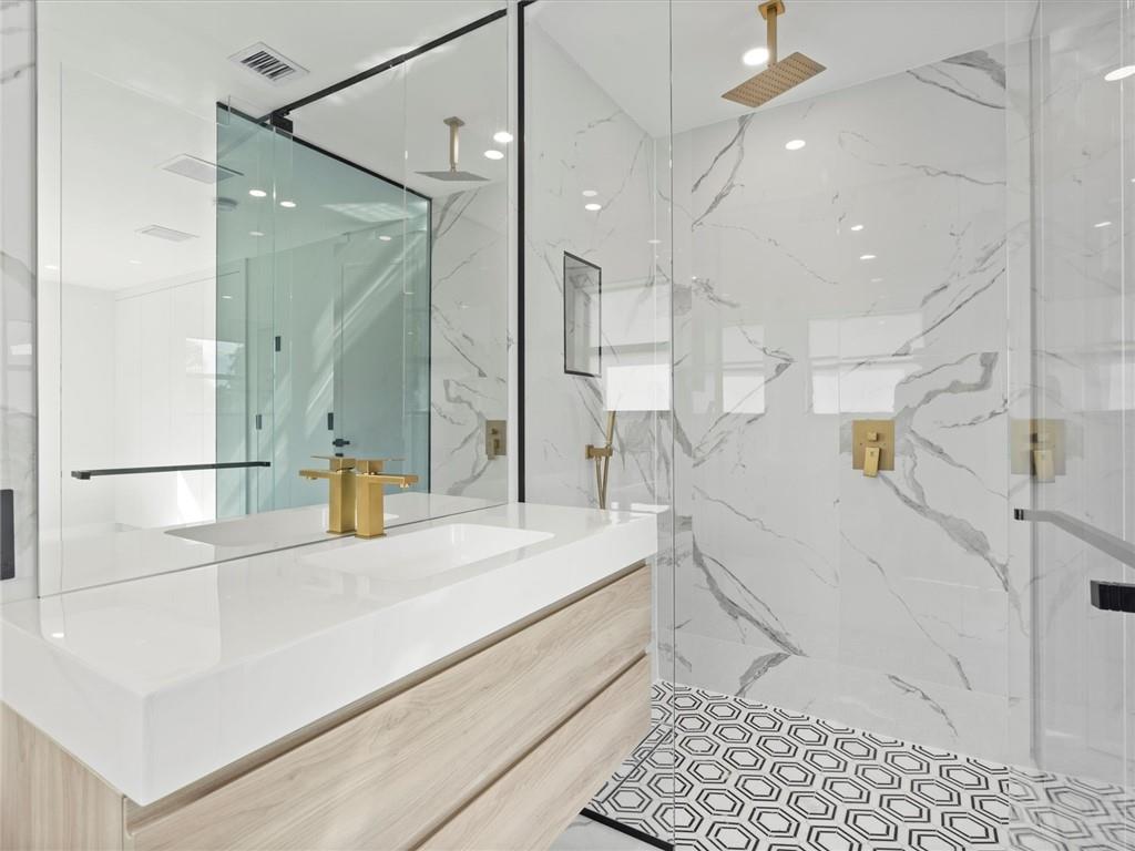 Remarkable house with contemporary touches of modern Luxury! Move into a Completely Renovated 4 beds, 3 baths spacious house with custom made upscale glossy white kitchen cabinets and waterfall calacatta quartz. High end stainless steel appliances, European concealed closets, all glass rainforest showers and luxury vanities. The home is wired for alarm & security cameras. Fully Hurricane impact windows & doors. High end Italian calacatta tiles. Great outdoor space to entertain with covered terrace. Roof redone 2020 & A/C replaced 2022. Lots of storage space. Enjoy Florida lifestyle at best! Prime location. Conveniently located in prestigious Highland Lakes steps from houses of worship & BEIT TORHA school. Wonderful walkability! Minutes away from Aventura mall, beaches & easy access to I95.