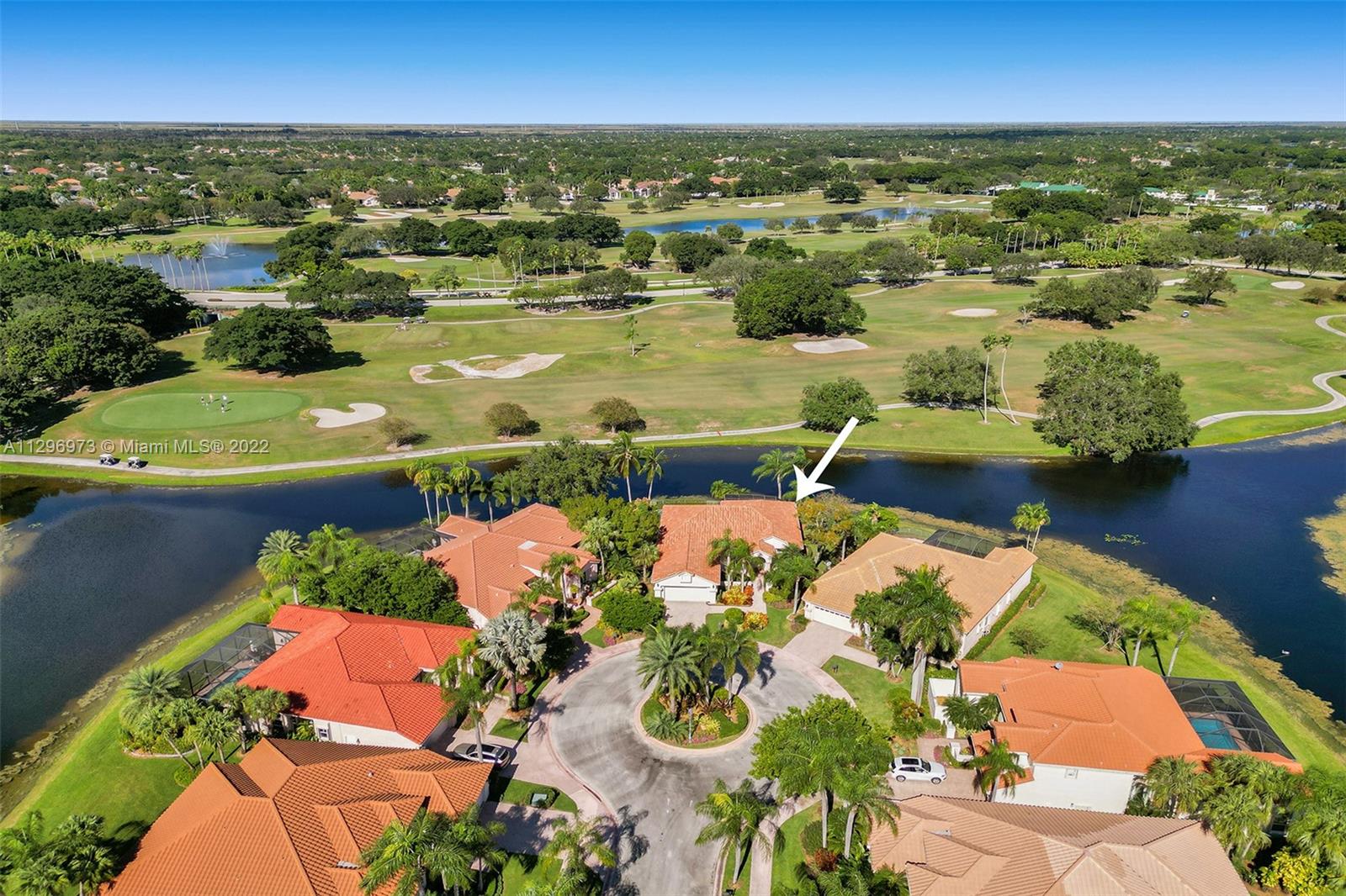 FIRST TIME ON THE MARKET! Absolutely the best waterfront and golf view property! 3 Bedroom, 3 bath home on a premier oversized point lot with spectacular endless lake and golf course views! Located in "The Pointe" of the prestigious Weston Hills Country Club and perfectly placed on the bottom of a cul-du-sac with a paver driveway and lush landscaping. Numerous features include: fantastic open floor plan with foyer entry, spacious great room, formal dining room, breakfast area, kitchen with stainless steel appliances, volume ceilings, master bedroom suite with walk-in closet and bath with separate tub & shower, large screened-in patio, and a heated pool with spa, NEWER ROOF and accordion hurricane shutters! Must See!! Maintenance includes all lawn/landscape care and common areas.