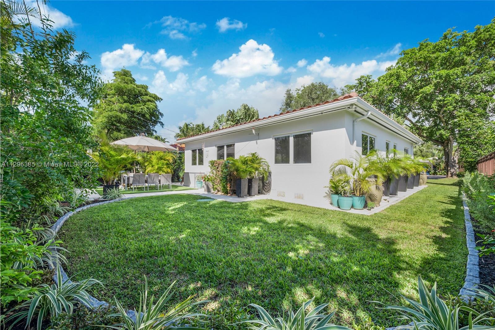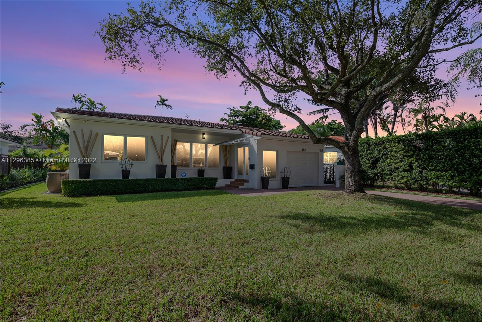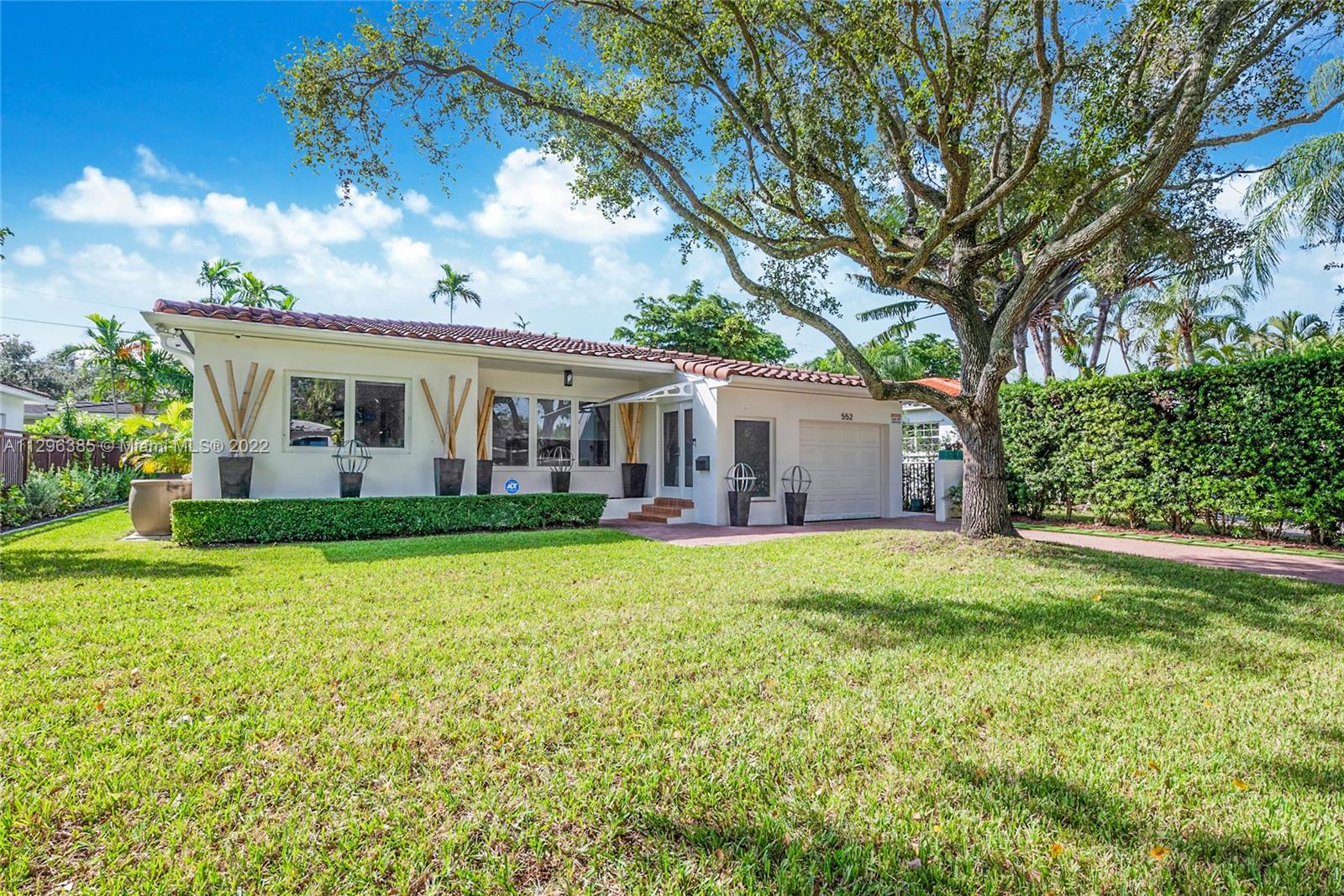 PRIME CORAL GABLES LOCATION! Immaculate renovation! 1 story, 2 bedroom / 2 bathroom property in close proximity to South Miami, Coconut Grove and all major freeways and world class dining and shopping. Bright and open living and dining areas with refinished oak floors, tray ceilings, recessed LED lighting. Chandeliers stay. Spacious white kitchen with 2 year old appliances & plenty of storage. Primary bedroom features an expanded closet system & a beautiful contemporary bath. Many unexpected details: California closets, new leaf guard gutters, premium insect protect screens, 8 wired security cameras & 4 sec lights, fully fenced private yard, new zen landscaping inc lemon, cherry, mango, fig and papaya trees. Impact resistant windows/doors, brick pavers. Impeccably maintained inside & out