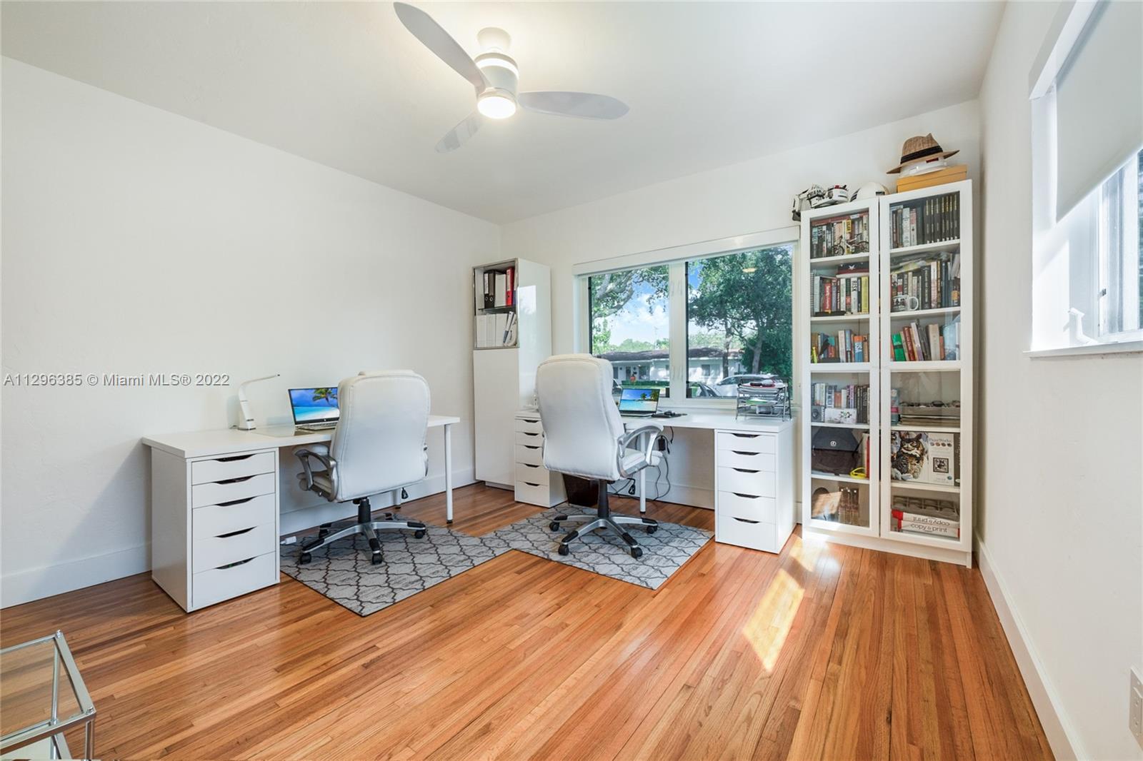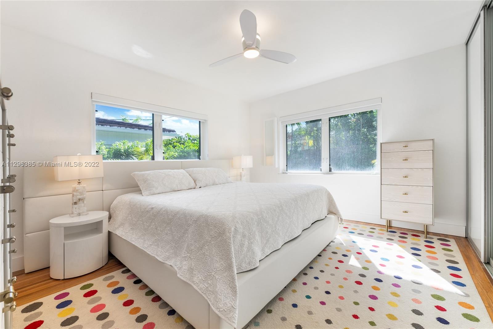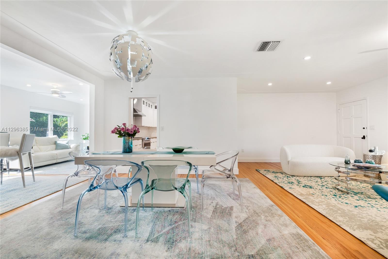 PRIME CORAL GABLES LOCATION! Immaculate renovation! 1 story, 2 bedroom / 2 bathroom property in close proximity to South Miami, Coconut Grove and all major freeways and world class dining and shopping. Bright and open living and dining areas with refinished oak floors, tray ceilings, recessed LED lighting. Chandeliers stay. Spacious white kitchen with 2 year old appliances & plenty of storage. Primary bedroom features an expanded closet system & a beautiful contemporary bath. Many unexpected details: California closets, new leaf guard gutters, premium insect protect screens, 8 wired security cameras & 4 sec lights, fully fenced private yard, new zen landscaping inc lemon, cherry, mango, fig and papaya trees. Impact resistant windows/doors, brick pavers. Impeccably maintained inside & out