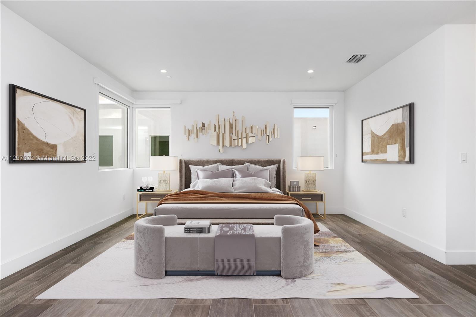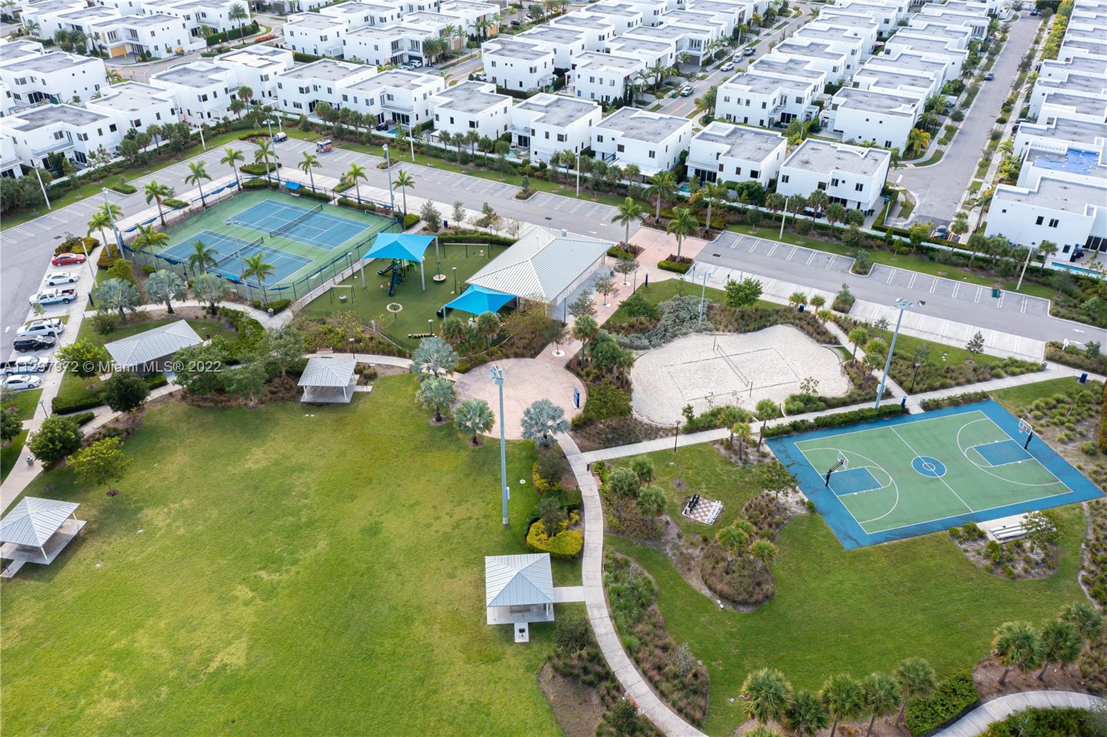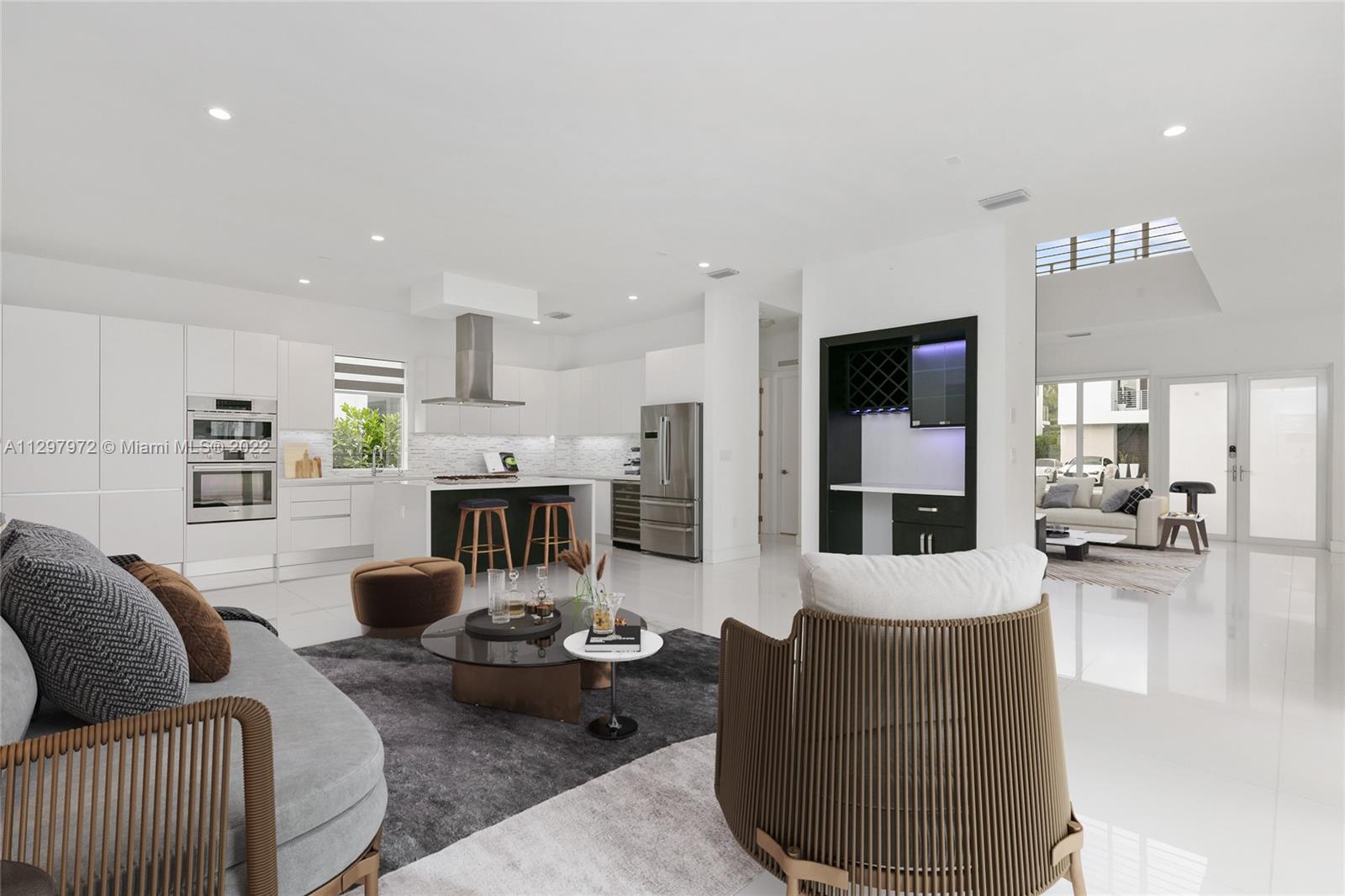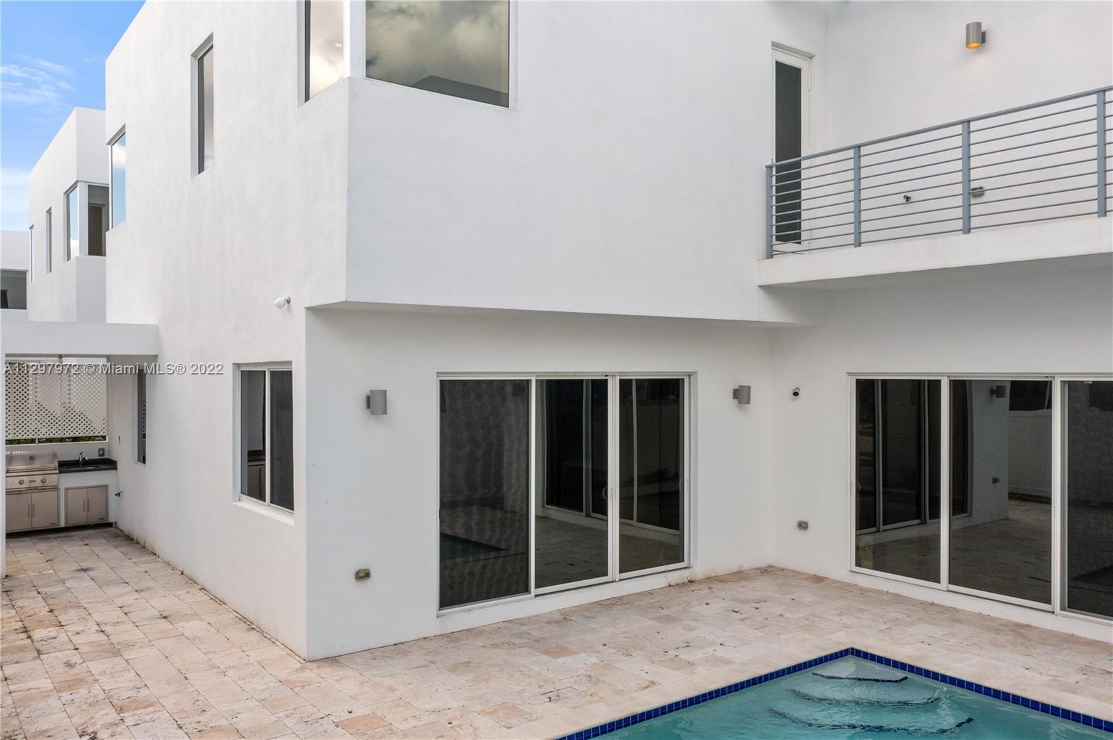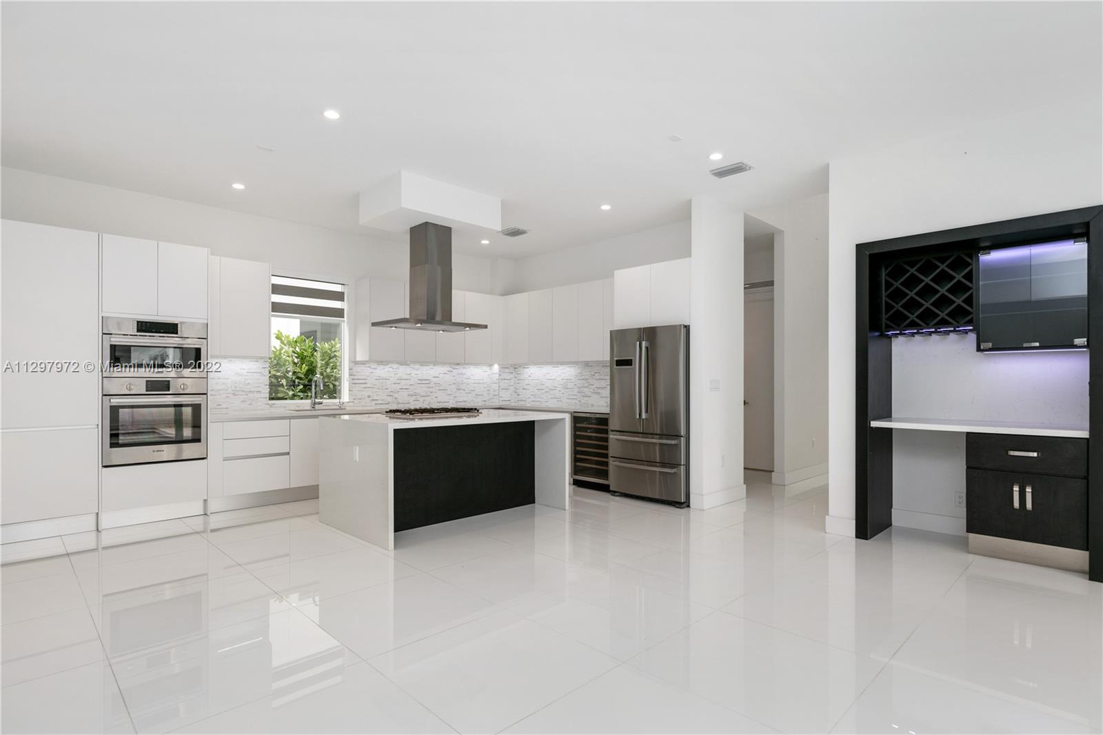 Welcome to the most iconic community in Doral. Luxury contemporary single-family home featuring 5 bedrooms with 5 bathrooms. One bedroom downstairs with a murphy bed, perfect for guest or office, and full bathroom with access to the patio. Plenty of upgrades: bar in the family room, extra pantry in the kitchen, extra storage in the garage, white metal fence, and much more. Open living spaces with white porcelain floor through-out the 1st level and wood in staircases and 2nd floor. Italian kitchen with quartz countertops & Bosch appliances and wine cooler. Concrete construction with impact windows & doors. Master suite has two custom walking closets, bathroom with dual sinks, roman tub, and a separate shower. Pool and outdoor BBQ area. Gated community with 24hrs security. Easy to show!