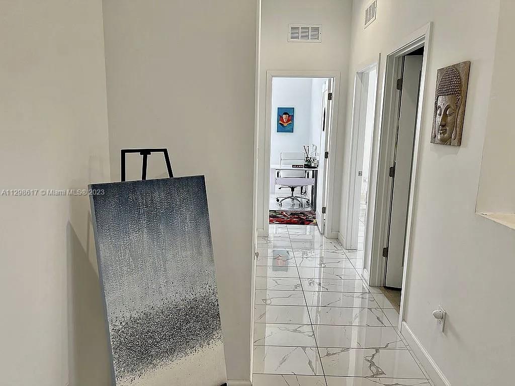 New gated community home with impact windows/doors, 4 bedrooms, 3.5 baths, 3 bathtubs, balcony and loft in second floor, very bright, 11” ceilings and fully furnished. Large walk-in closets with high-end cabinets, porcelain stairway, LED throughout, home automation, remote controlled fans in every room, custom landscape with private meditation garden and 4,450ft of fenced backyard. Large garage for two cars with A/C unit, porcelain floor and cabinets - it is impeccable! Modern shaker cabinets, quartz counter tops, stainless steel appliances, gourmet gas range, walk-in pantry, attic, two large linen cabinets and premium blinds are features of this newly available home, next to Houses of Worship and parks.