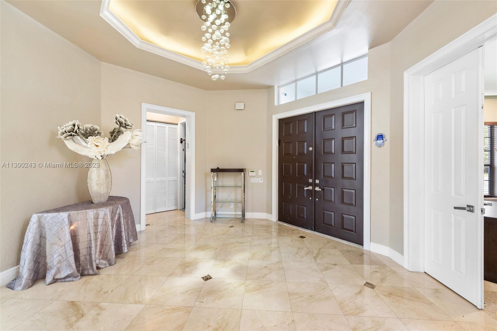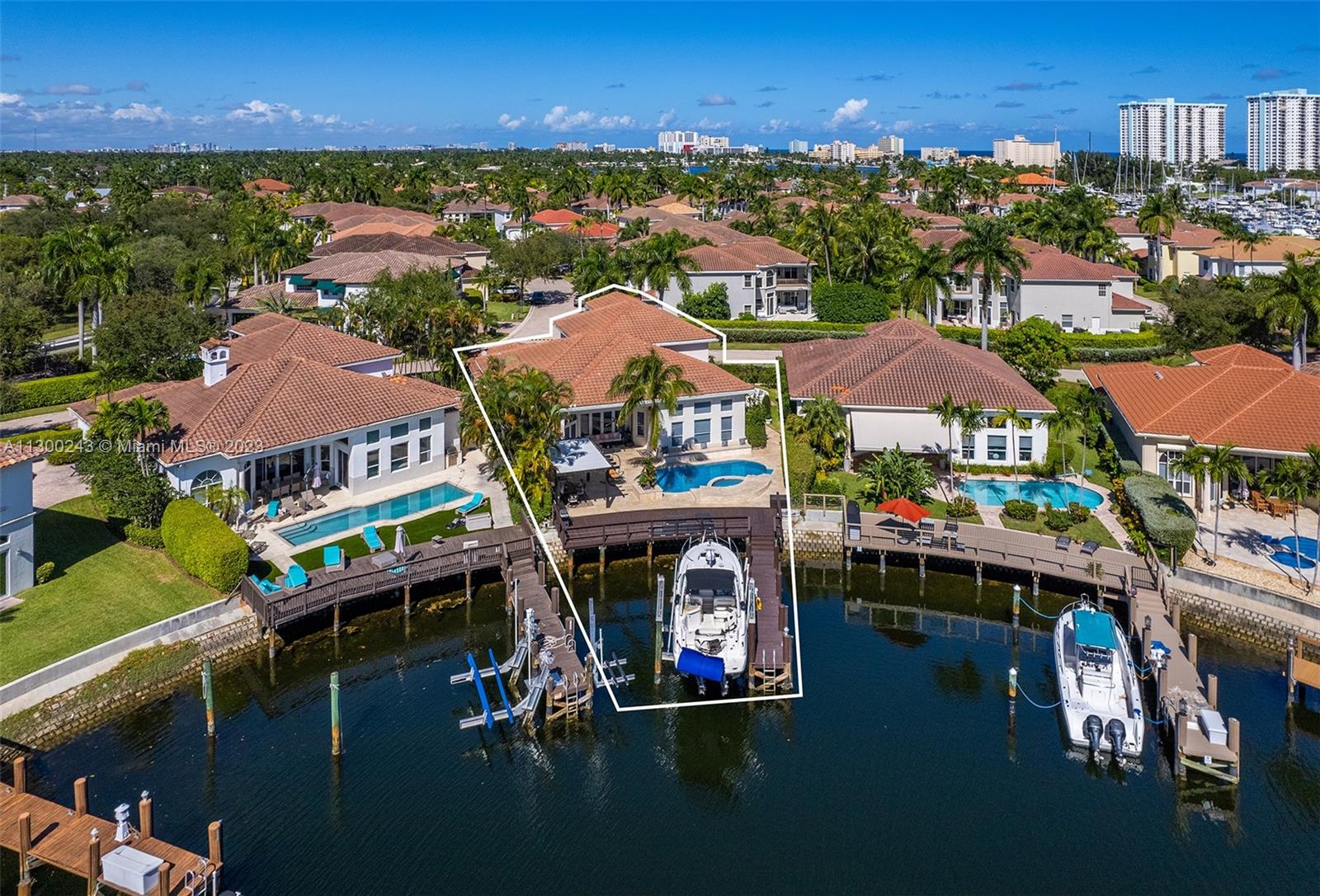 Harbor Islands waterfront views, south facing backyard guarantees sunshine throughout the year. Located in sought-after waterfront and exclusive gated community. Residence encompasses 4 bedrooms, 4.5 baths + office formal dining room, Living room, family room & marble flooring throughout. Large first level master suite w/sitting area and direct access to patio/terrace overlooking the waterway. Mostly original Barcelona model. Backyard & Side yard built to entertain w/pool, Jacuzzi, Gazebo, dock and Boat lift. The gated community amenities include clubhouse, gym, tennis courts, community pool, 40-acre park, private marina and more. Just minutes from shops, fine restaurants, beaches, and all local amenities.