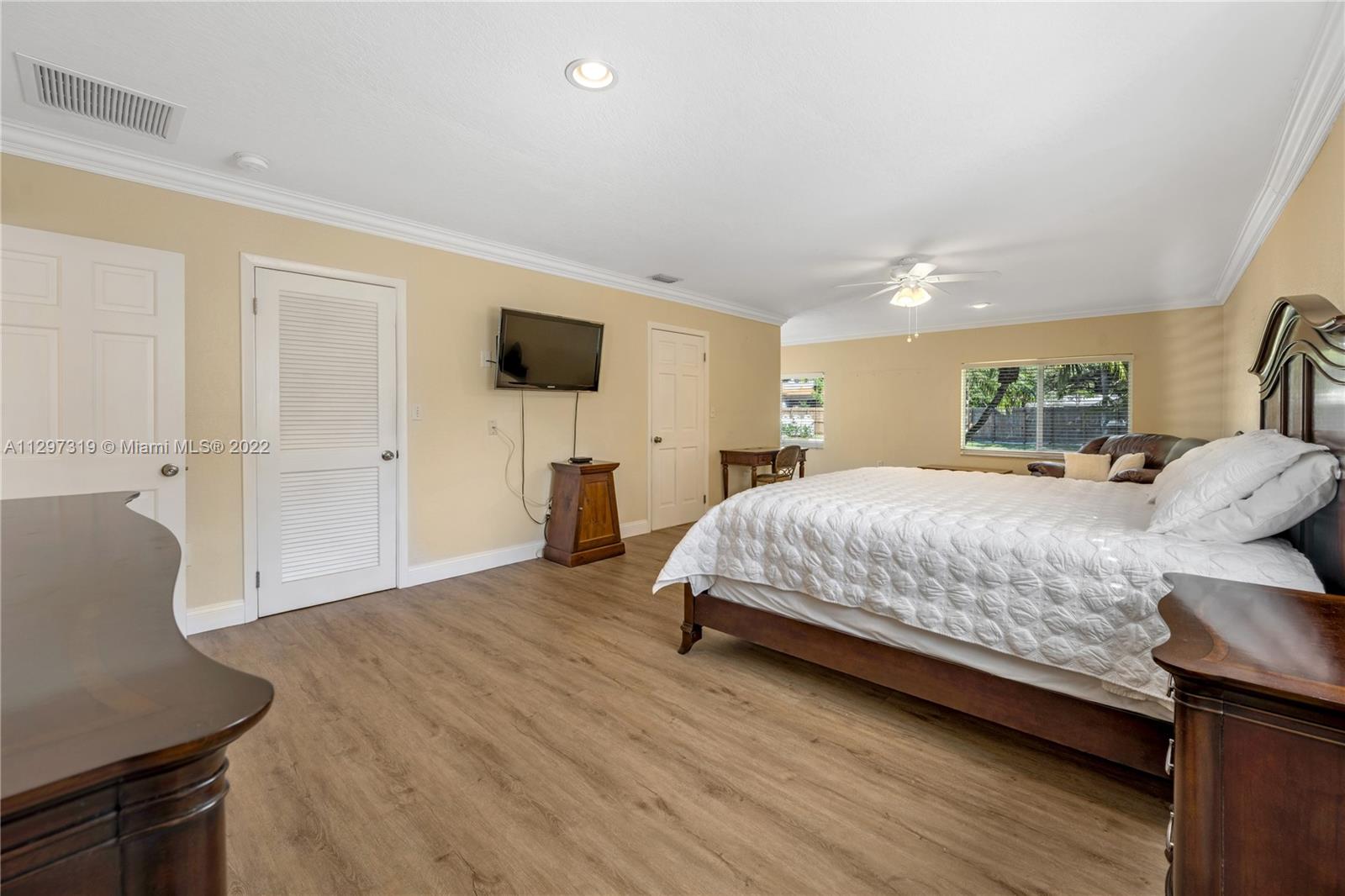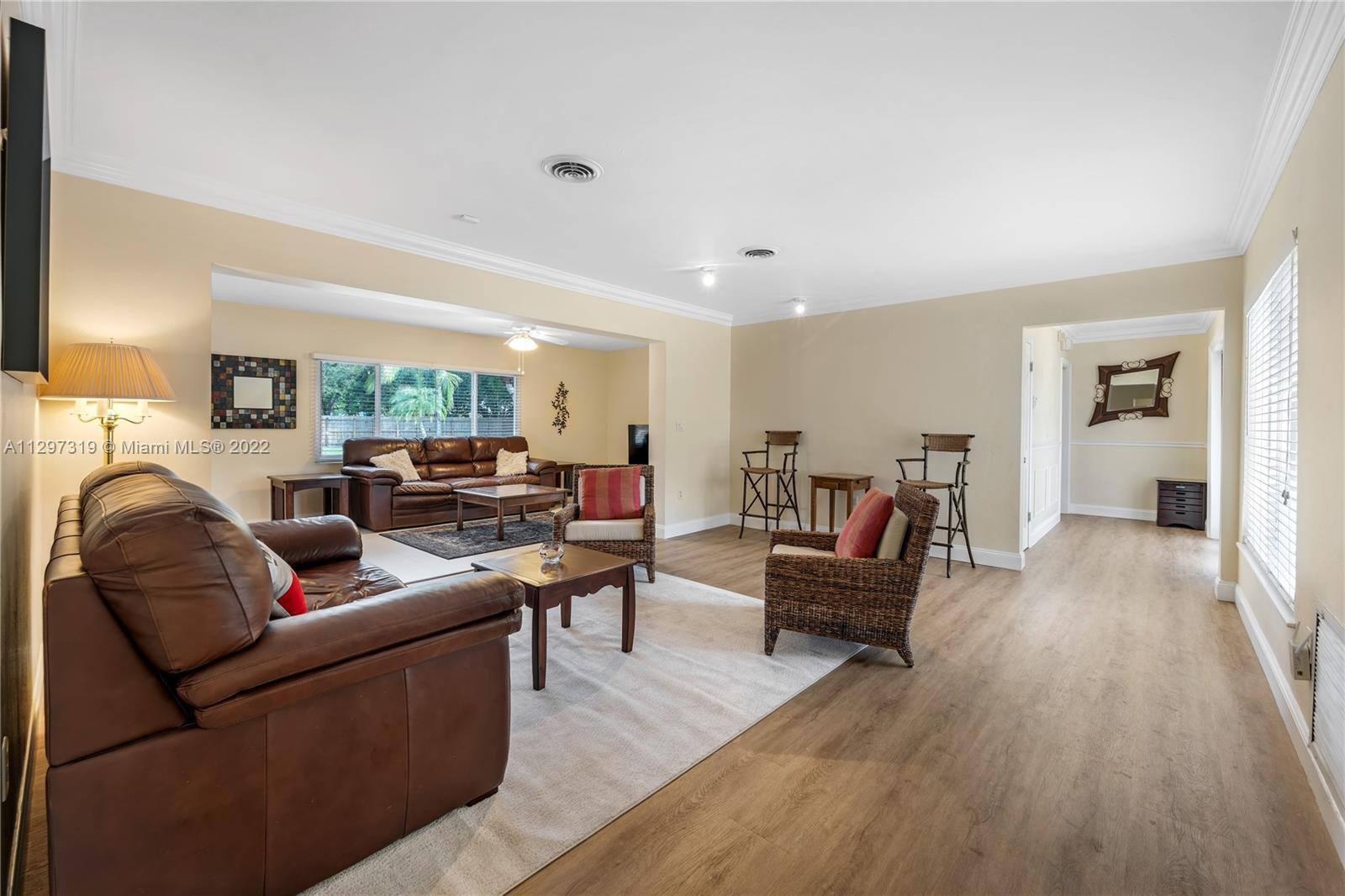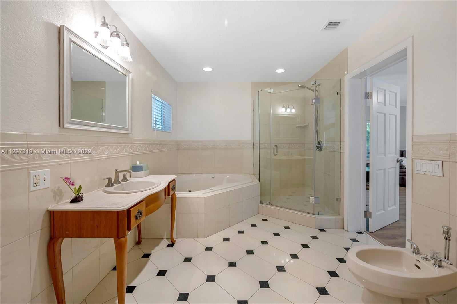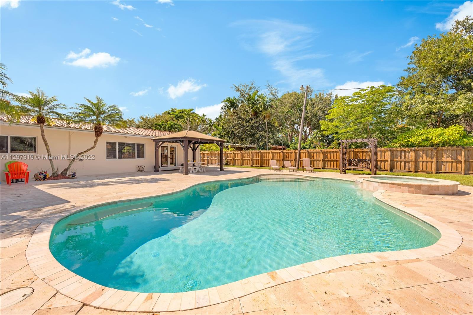 Popular Pinecrest Location! Inviting & welcoming front porch double door entrance. Foyer leads into a Light Filled Living Room and Open Family Room with long views past the inviting pool/spa/patio to the expansive deep backyard lot. Ideal for lots of outdoor play! Kitchen w/breakfast bar is between dining room on one side and casual dining/family room on the other. Layout flows perfectly for entertaining and festive gatherings. Primary bedroom suite with flexible space to use as sitting area/office, closet with built-ins, bathroom with spa-like bath & separate shower. Abundance of natural light, stacked bedrooms, impact windows and doors, full-house generator, two-car garage with built-in cabinets and shelves. Ideally situated on a pretty tree-lined street.
