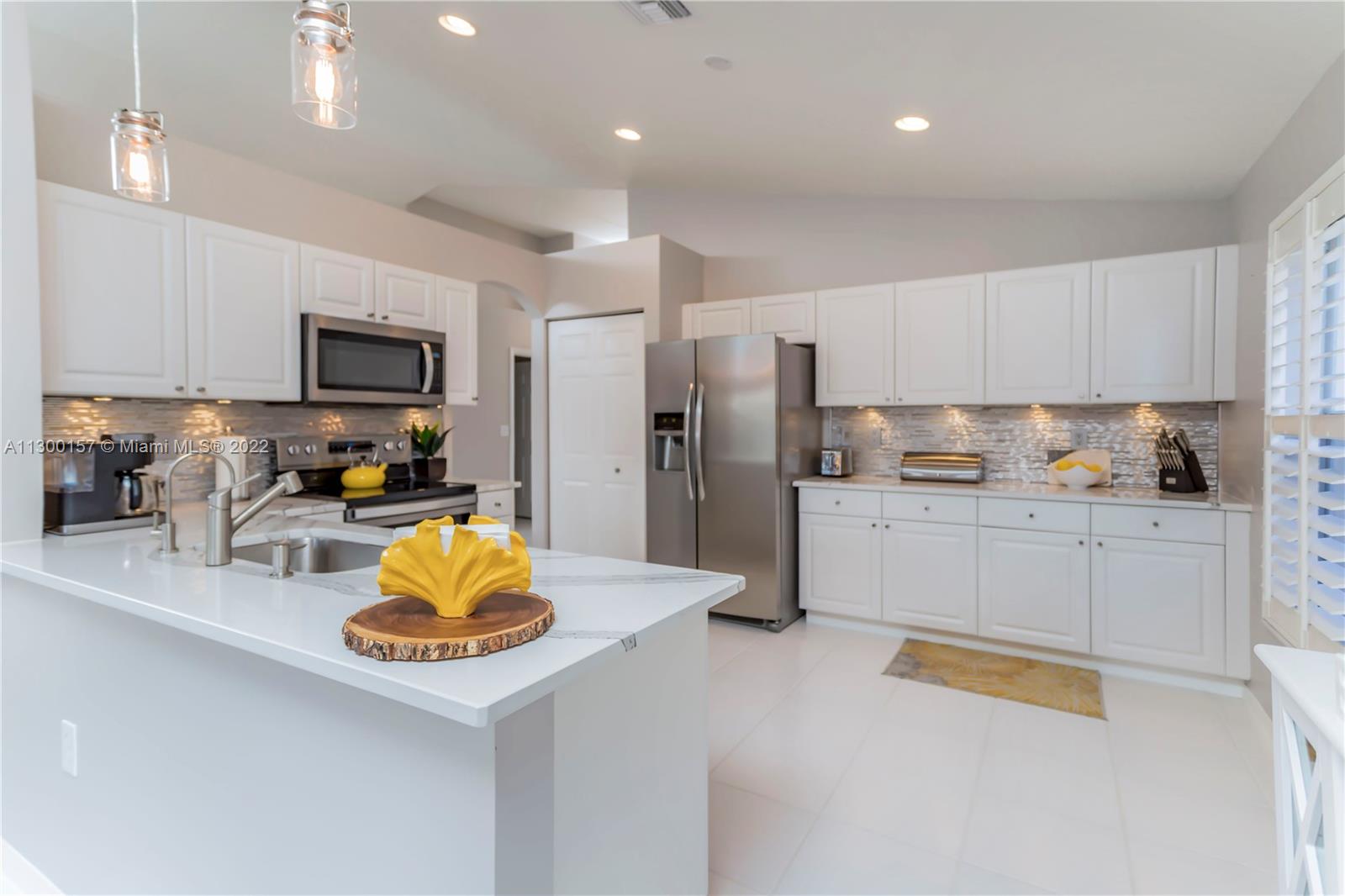 THIS HOME SHOWS LIKE A MODEL! GORGEOUS THREE BEDROOM, TWO BATHROOM, ONE STORY HOME WITH POOL & LAKE IN THE MANNED GUARD GATED SECTION OF SILVER LAKES. THIS HOME FEATURES PLANTATION SHUTTERS & VOLUME CEILINGS. THE MODERN KITCHEN IS COMPLETE W/QUARTZ COUNTERTOPS, WHITE CABINETRY & STAINLESS STEEL APPLIANCES. THE SPACIOUS MASTER SUITE HAS NEWLY UPGRADED FLOORING, THE MASTER BATH WAS RECENTLY UPGRADED W/NEW FLOORING, NEW VANITIES W/QUARTZ COUNTERTOPS, DEEP SOAKING TUB & NEW SHOWER. THE TWO OTHER BEDROOMS ALSO HAVE UPGRADED FLOORING. THE FENCED-IN BACKYARD IS THE PERFECT PLACE TO RELAX, TRAVERTINE PATIO, NEWLY RESURFACED POOL, BEAUTIFUL LANDSCAPING, COVERED SITTING AREA, ALL OVERLOOKING THE PEACEFUL LAKE. THE SLIDING GLASS DOORS ARE HURRICANE IMPACT. NEW A/C (2018), NEW WATER HEATER (2020).