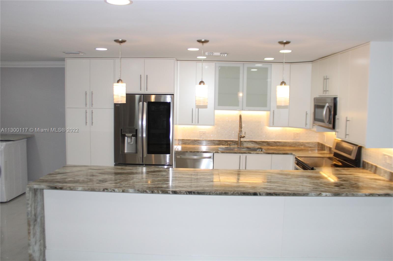 Simply gorgeous modern & recently remodeled corner unit in Blue Lake community.Largest 4 bedroom unit with over 1500 sqf. Downstairs bedroom has been removed for open concept & can easily be rebuilt back. 3 Fully remodeled bathrooms.Beautiful and open kitchen with huge quartz island, white cabinets and top of line appliances. Updated recessed lighting throughout and all new interior doors. Huge balcone from MB overlooking great yard. Nice wood flooring upstairs and accent lighting on stairs. Extended fenced patio with travertine pavers and storage room.Washer & dryer relocated to inside the home.Great community with pool, tennis, fitness room and more. Outstanding location.Won't last!!