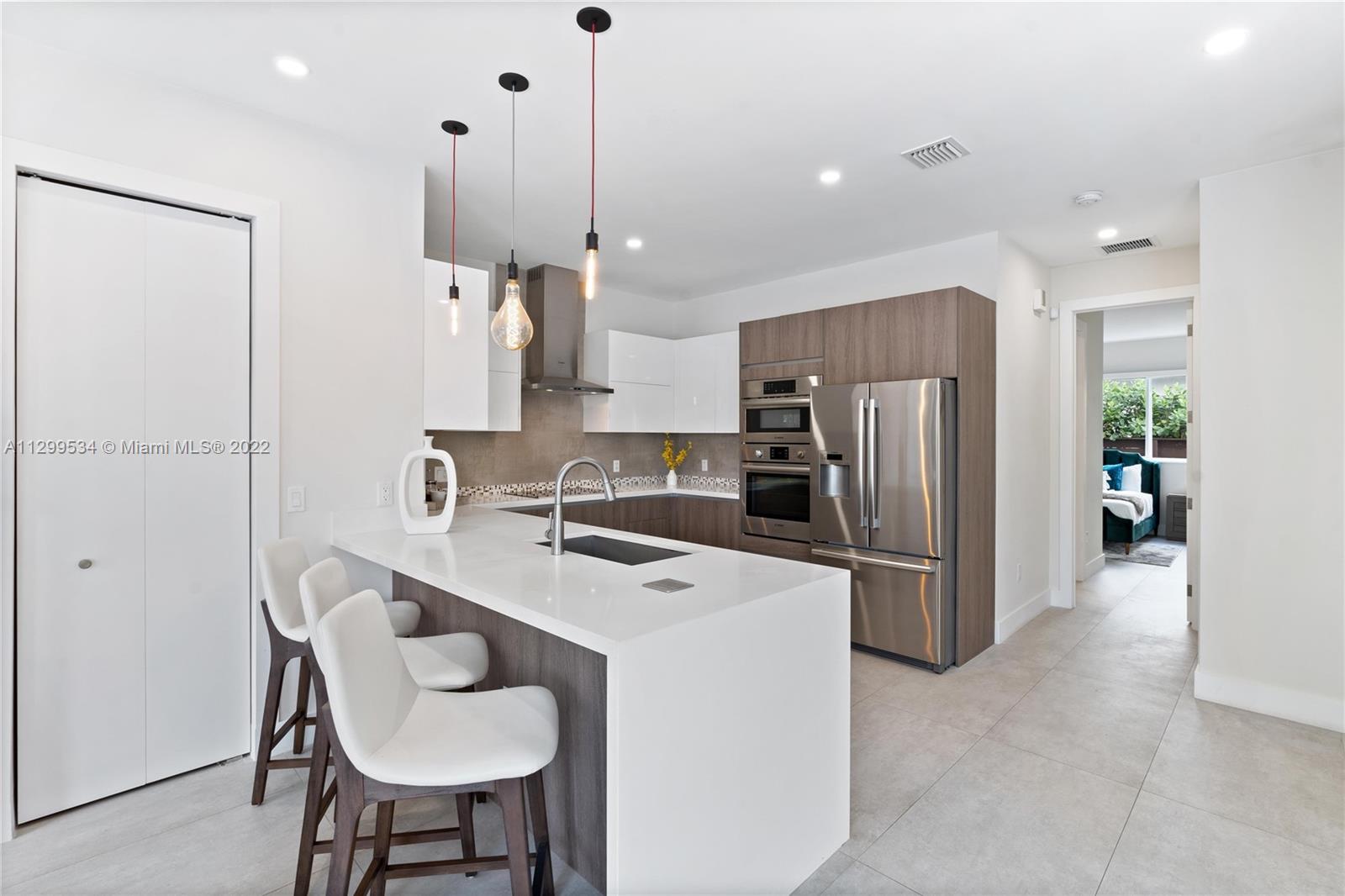 Modern and contemporary 2018 construction located in Coral Ridge! This semi-detached residence has 4 bedrooms, 4.5 bathrooms + bonus den. All bedrooms feature en-suite bathrooms including the full-size bedroom on the 1st floor. Upper floor features two master suites with balconies, walk-in closets and laundry room. High end finishes include European cabinets with quartz countertops, Bosch appliances, impact windows and doors, roof mounted 16 seer energy efficient A/C, 9ft ceilings, open floor plan overlooking the private pool and patio with easy to care for Trex fencing. NO HOA! NO RENTAL RESTRICTIONS! Corner lot located in flood zone X