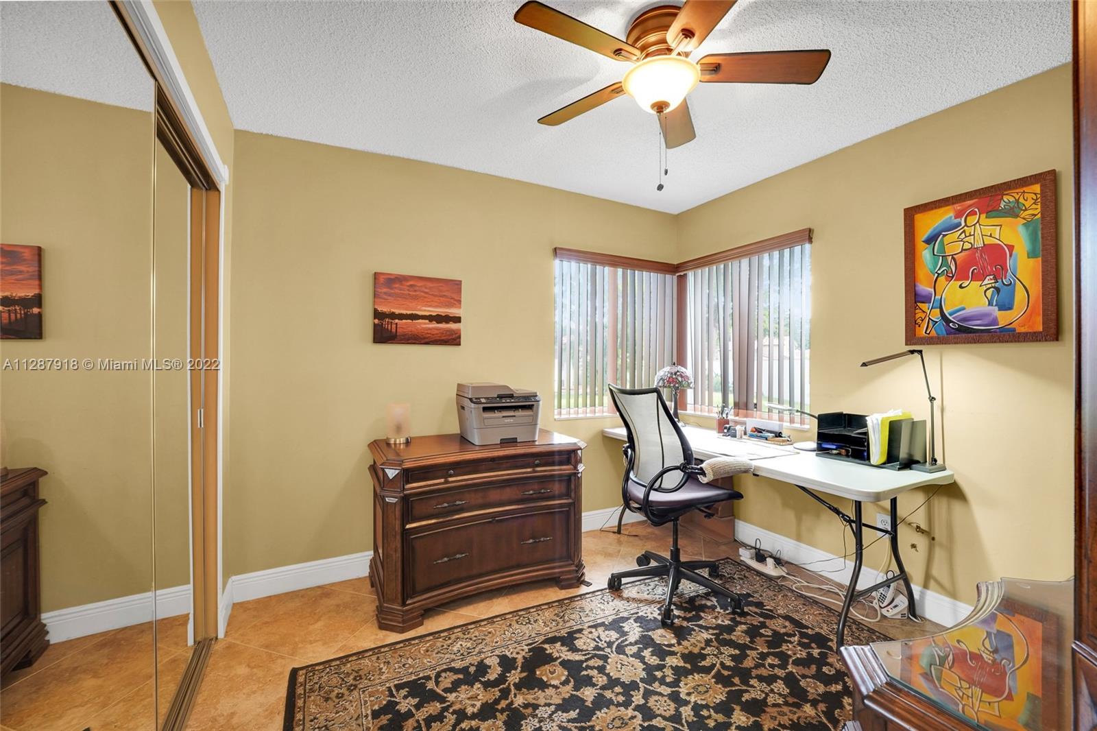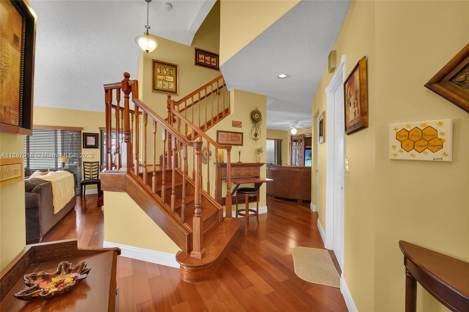 Lovely 2 story detached single family home on Cul-de-sac lot w/oversize yard in the Gated Community of the Moors / complete privacy in Backyard and Large Screened Marble Tiled Patio, great for entertaining. Tall Vaulted Ceiling as soon as you walk in, 1 bedroom & 1 full bathroom on 1st level along w/family, living, dining rooms, kitchen, laundry Room. 2nd Floor has bright master suite w/sitting area, beds 3 & 4 share a hall bathroom. Extra storage under stairs. Wood floorings in most areas. All Accordion shutters. FHA/VA Okay. Tile Roof 2009. Solar powered water heater. Great amenities: Clubhouse, Pool, Basketball, Tennis, Gym, Lake, Security & On Site Management. Close to 826, I-75, I-95, Highways, restaurants, schools, shopping centers. Inspection Done, Appraisal Done.
