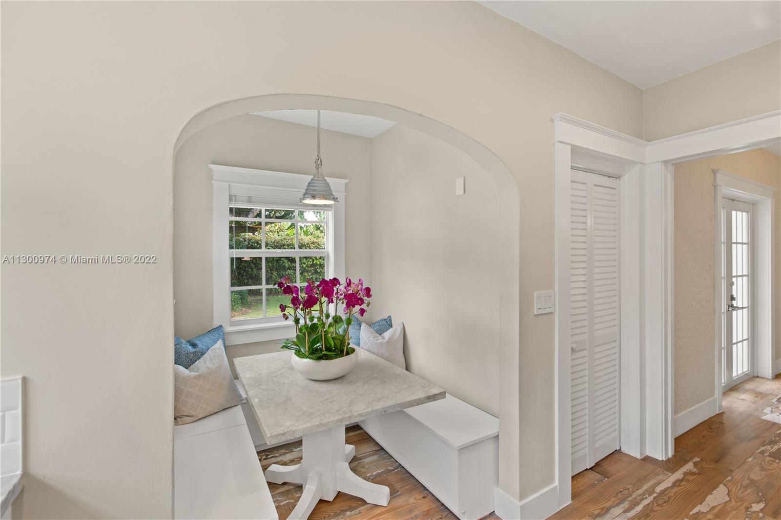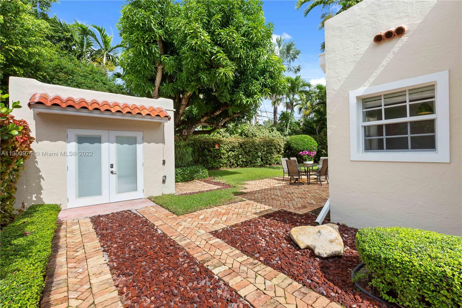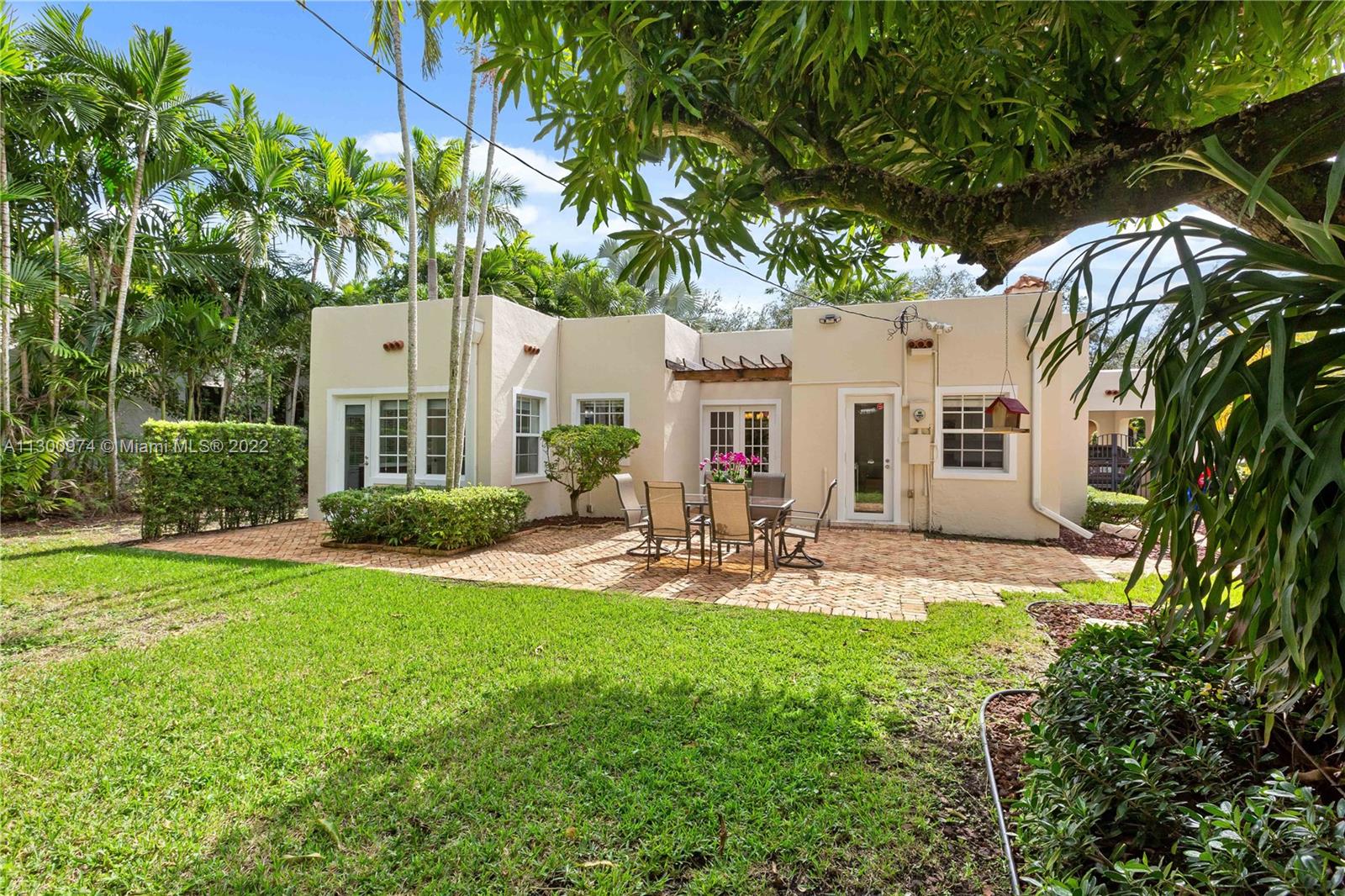 Charm and beauty reside on Alesio Avenue. Sunlight pours into this beautiful home, just blocks from all that downtown Coral Gables has to offer shopping, restaurants & culture. The property features a 3/2 main house with a detached 1/1 cottage. Great layout, fireplace, and arched transitions complement modern enhancements like new A/C, impact windows, and updated kitchen and bathrooms. It has room for a pool, has a large foyer and fruit trees. The updated kitchen has a built-in Breakfast nook with views of the yard. The professionally landscaped yard includes a Chicago Brick patio, driveway, and carport. This Old Spanish charmer will have you at “Hello!”