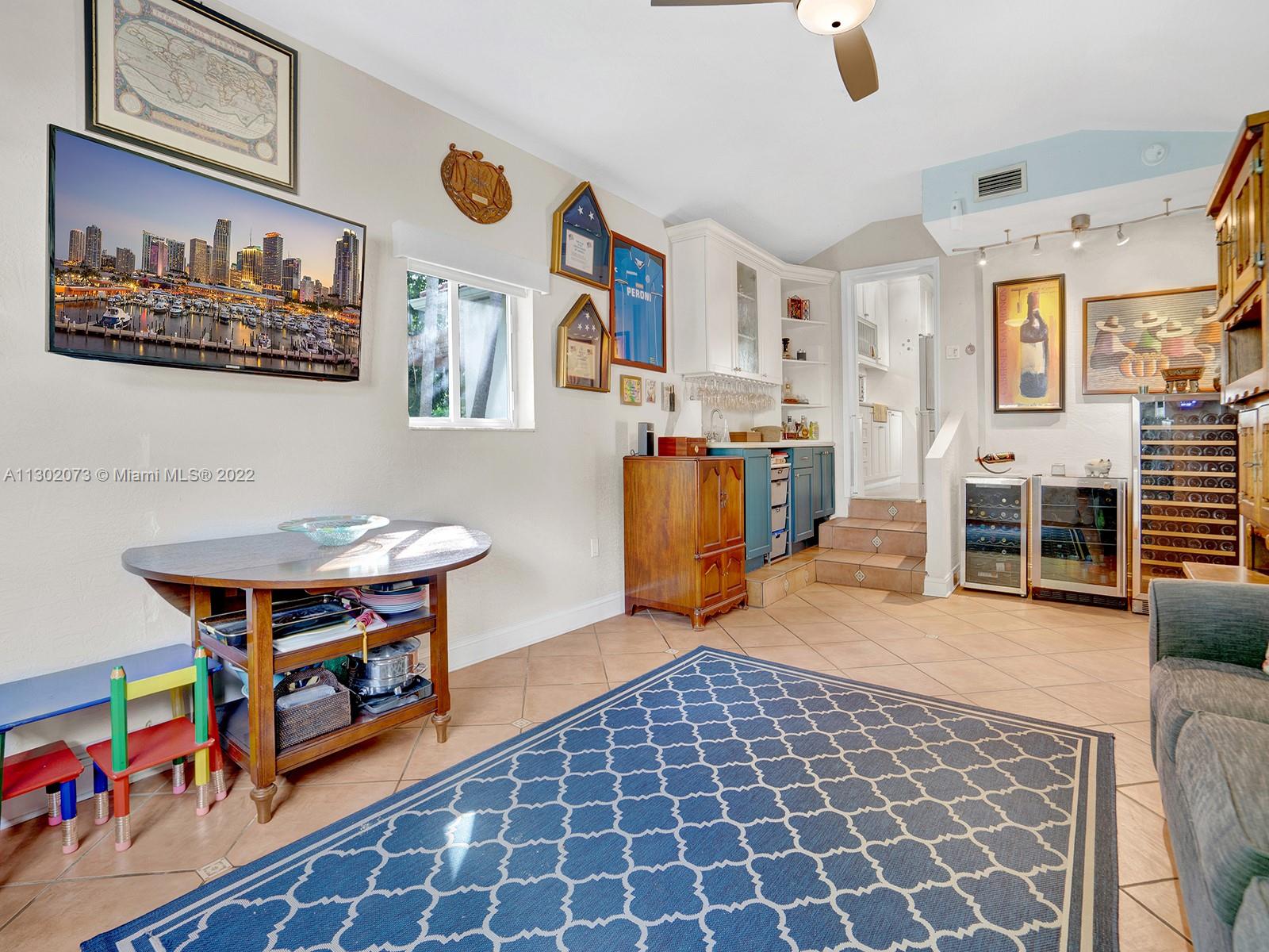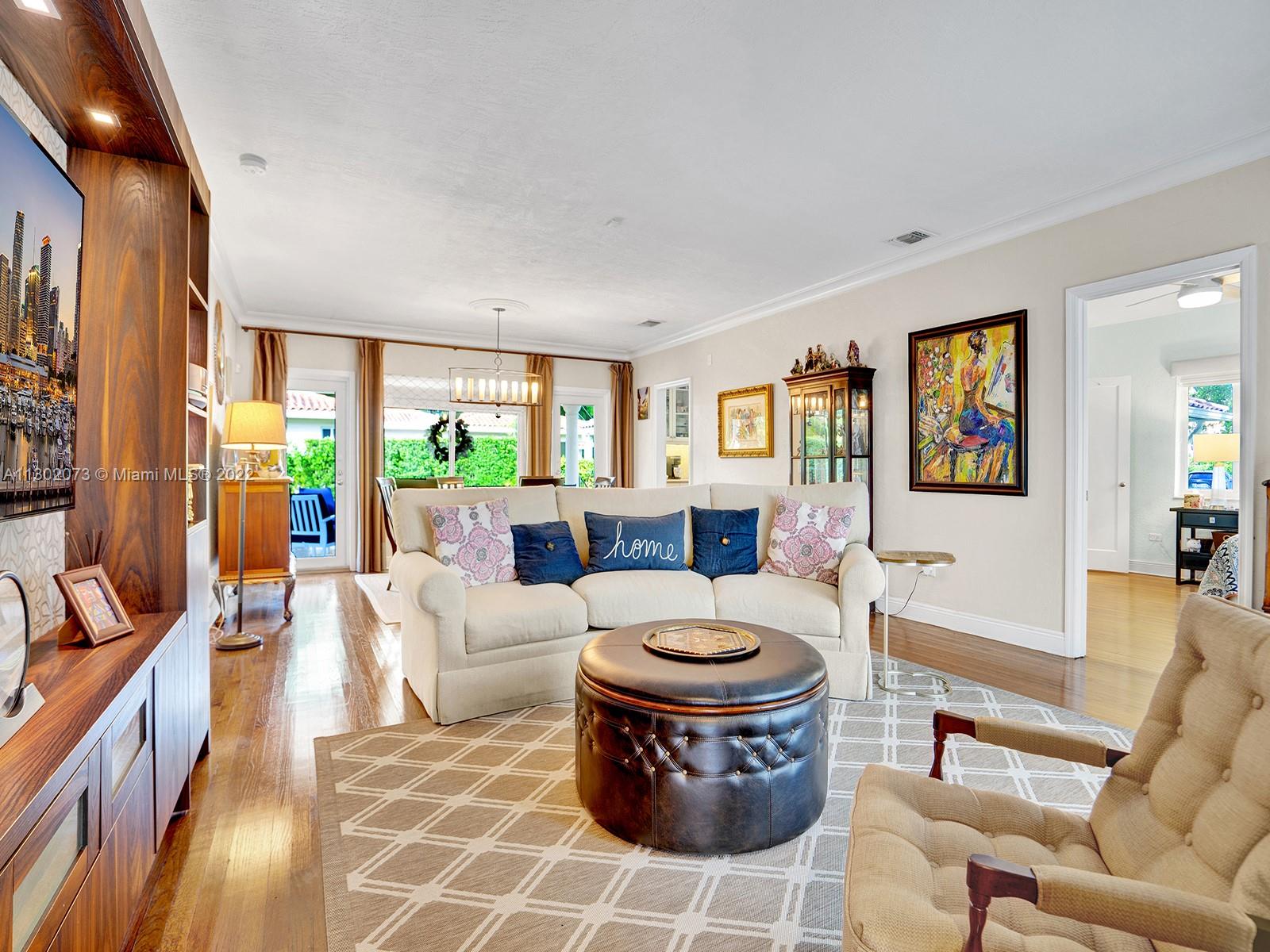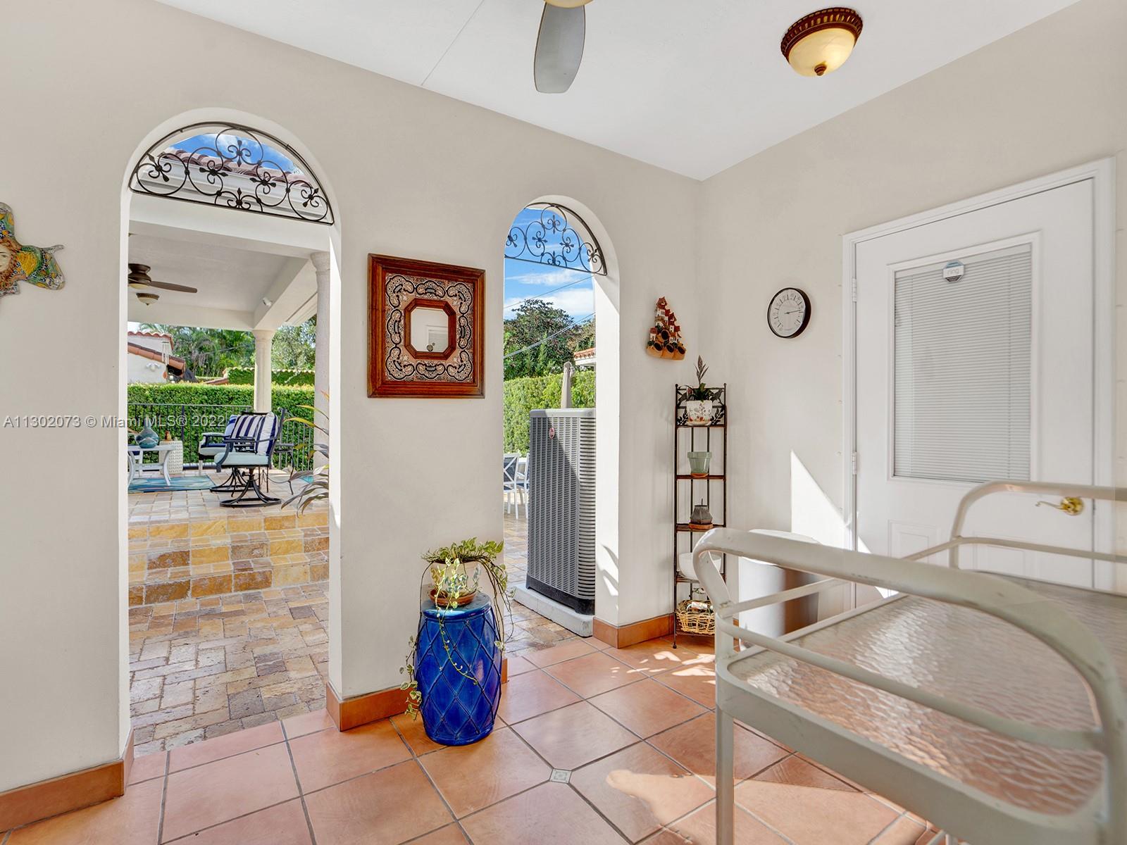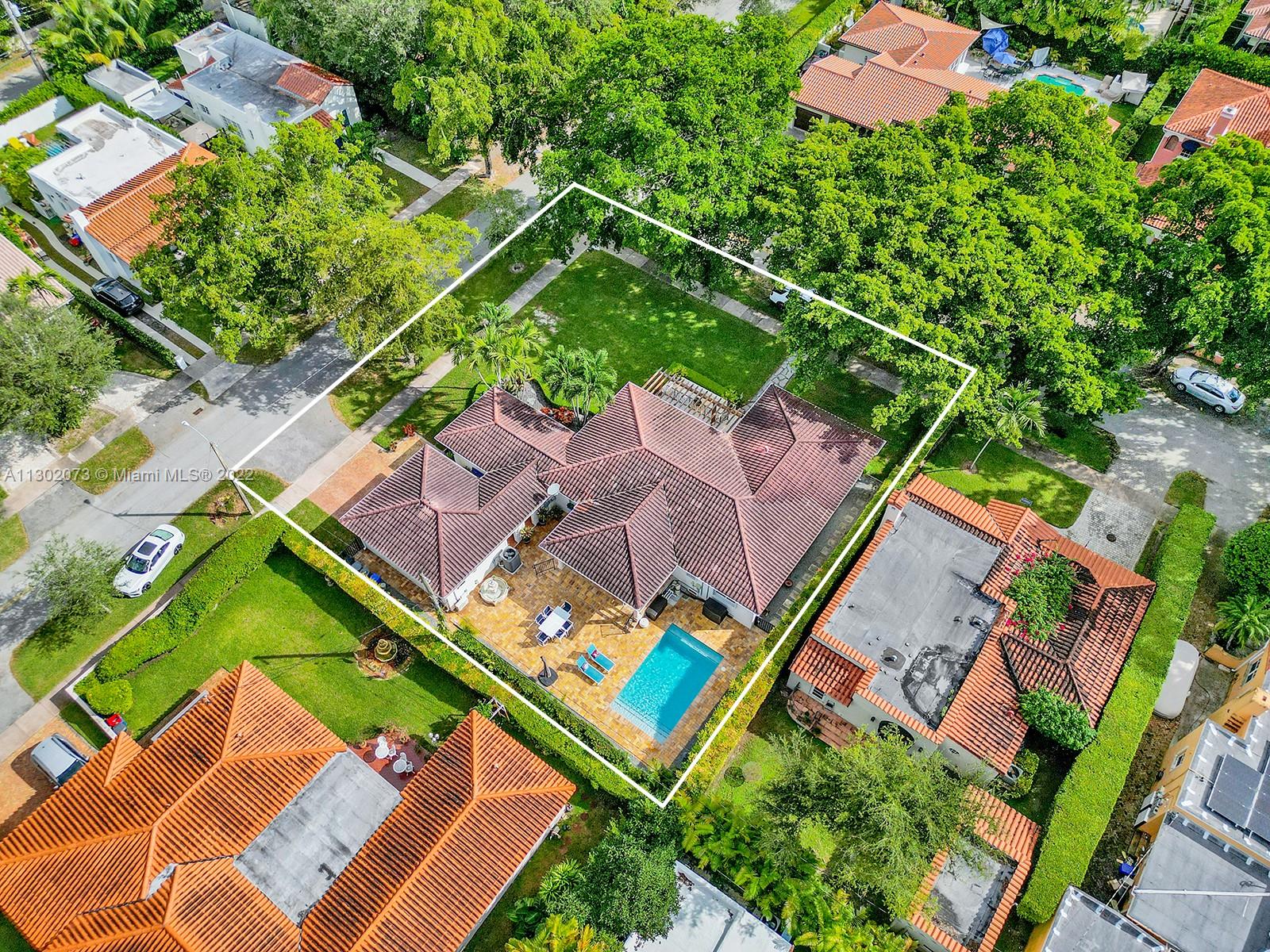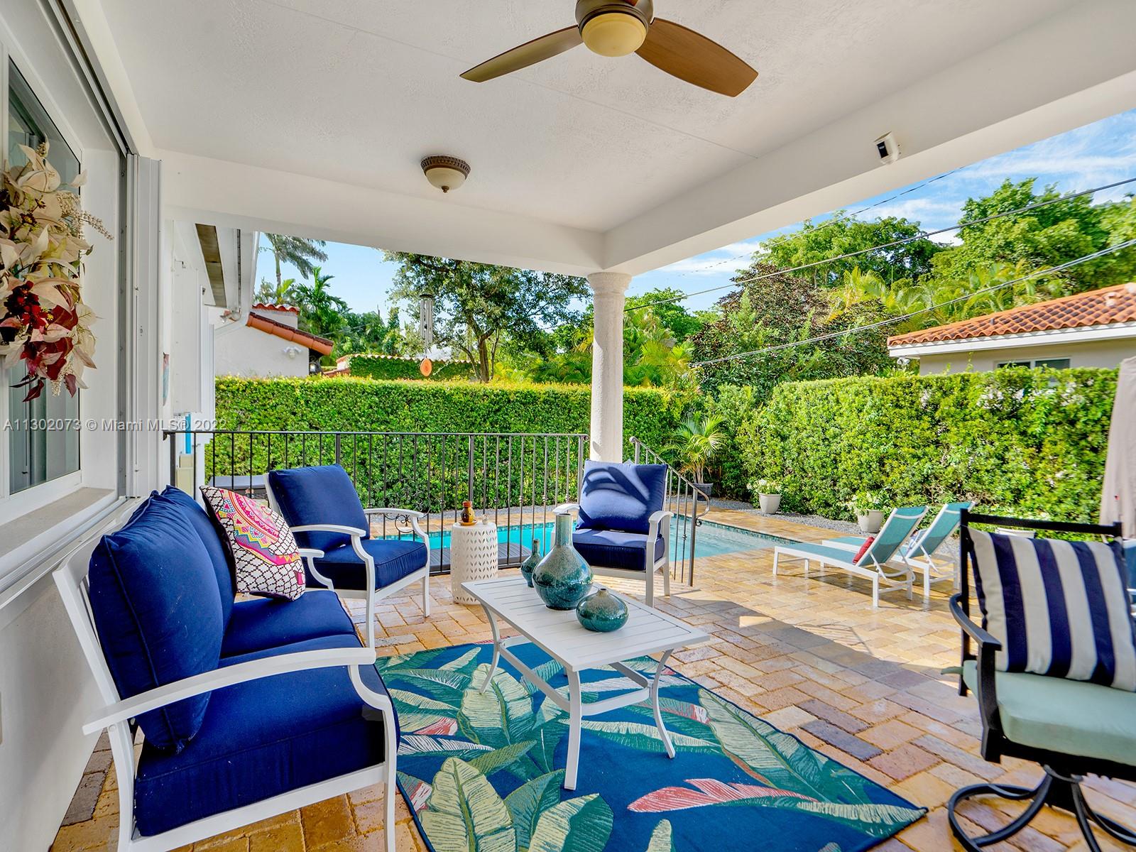 This unique Coral Gables pool home has been spaciously enlarged to a current 3 bedroom/3 bathroom split floor plan. This corner lot home sits on a 10,600 SF lot, w/ a master bedroom addition constructed in 2015. One of just 16 homes on Tangier Street, between Venetia and Milan, property is just north of the Granada Golf Course. Entry leads you to the living-dining area that overlooks the backyard patio/pool area. Pool was built in 2022 w/ a natural stone floor layout & features a salt-chlorinator & LED lighting. Master bedroom has a sitting area & custom closet. 2nd bedroom has a full bathroom. Galley kitchen leads to a spacious family room that has access to the backyard & covered path to laundry room/garage. Impact/window protection w/doors throughout. MOVE IN CONDITION.