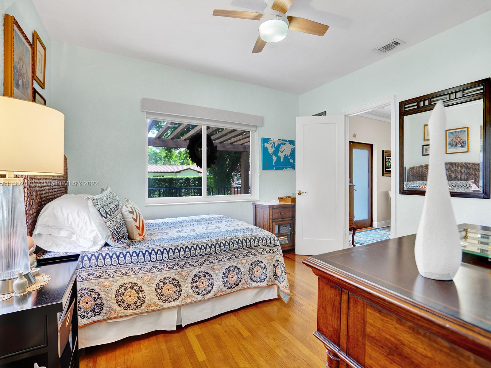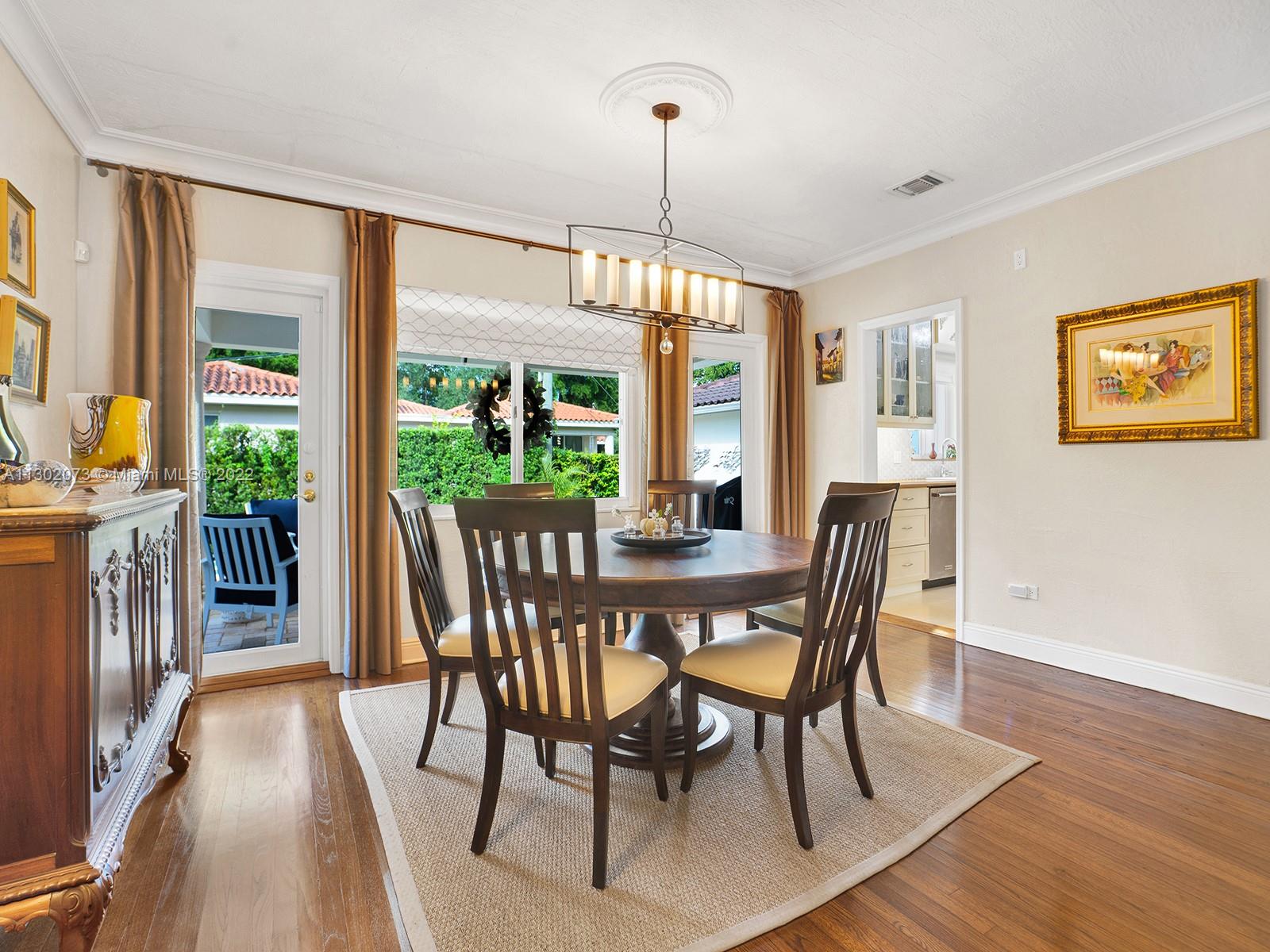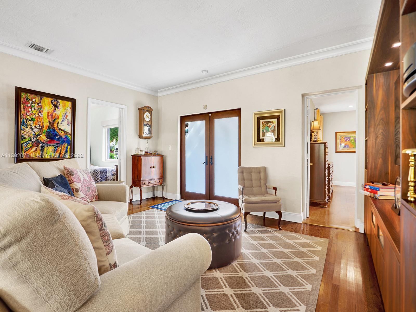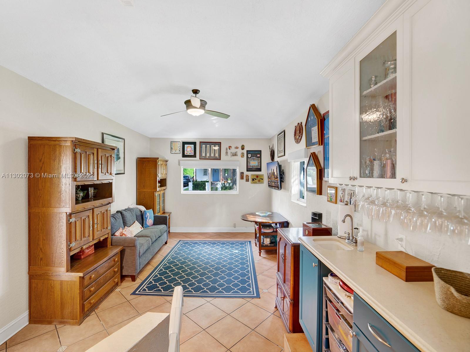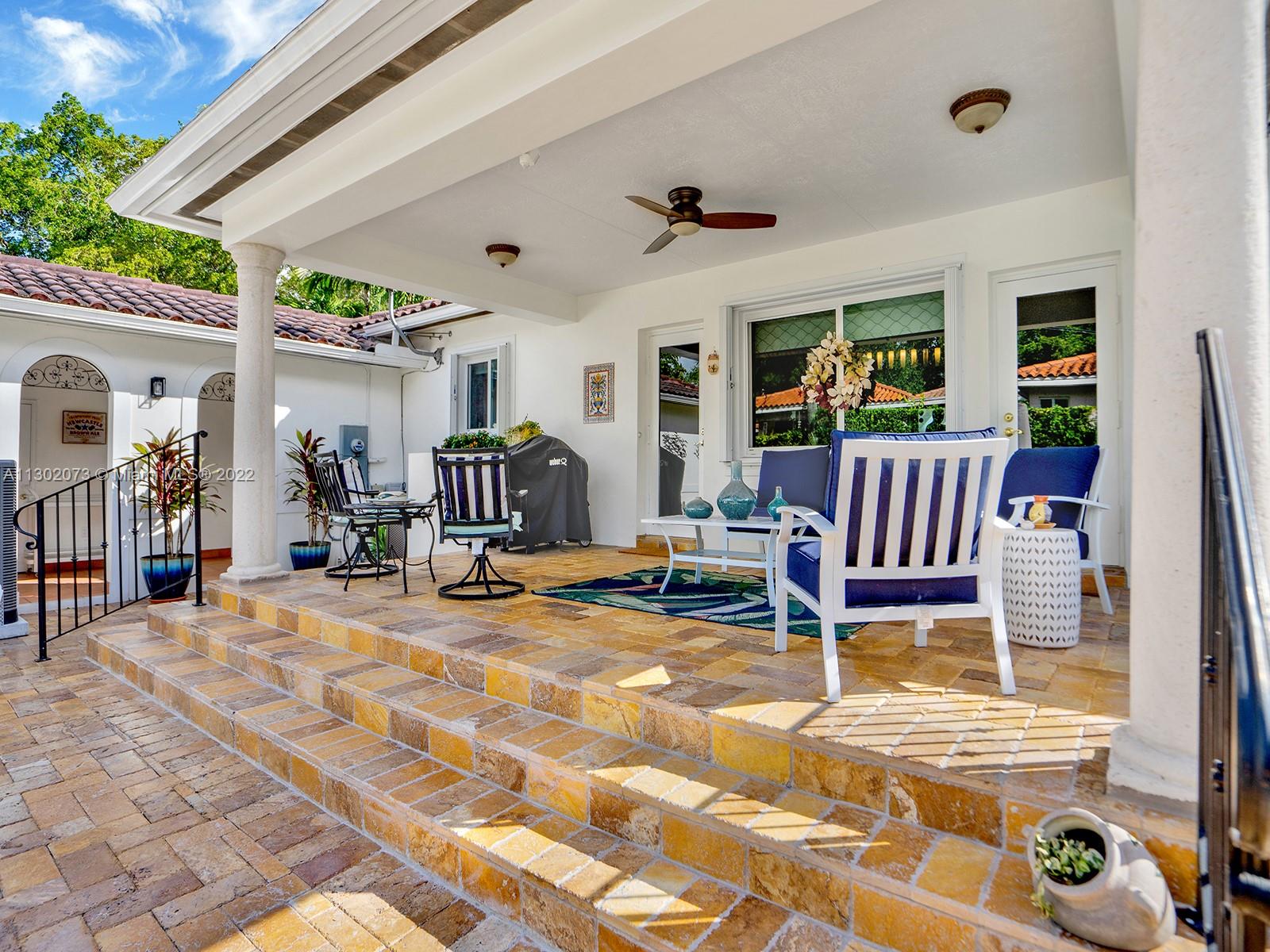 This unique Coral Gables pool home has been spaciously enlarged to a current 3 bedroom/3 bathroom split floor plan. This corner lot home sits on a 10,600 SF lot, w/ a master bedroom addition constructed in 2015. One of just 16 homes on Tangier Street, between Venetia and Milan, property is just north of the Granada Golf Course. Entry leads you to the living-dining area that overlooks the backyard patio/pool area. Pool was built in 2022 w/ a natural stone floor layout & features a salt-chlorinator & LED lighting. Master bedroom has a sitting area & custom closet. 2nd bedroom has a full bathroom. Galley kitchen leads to a spacious family room that has access to the backyard & covered path to laundry room/garage. Impact/window protection w/doors throughout. MOVE IN CONDITION.
