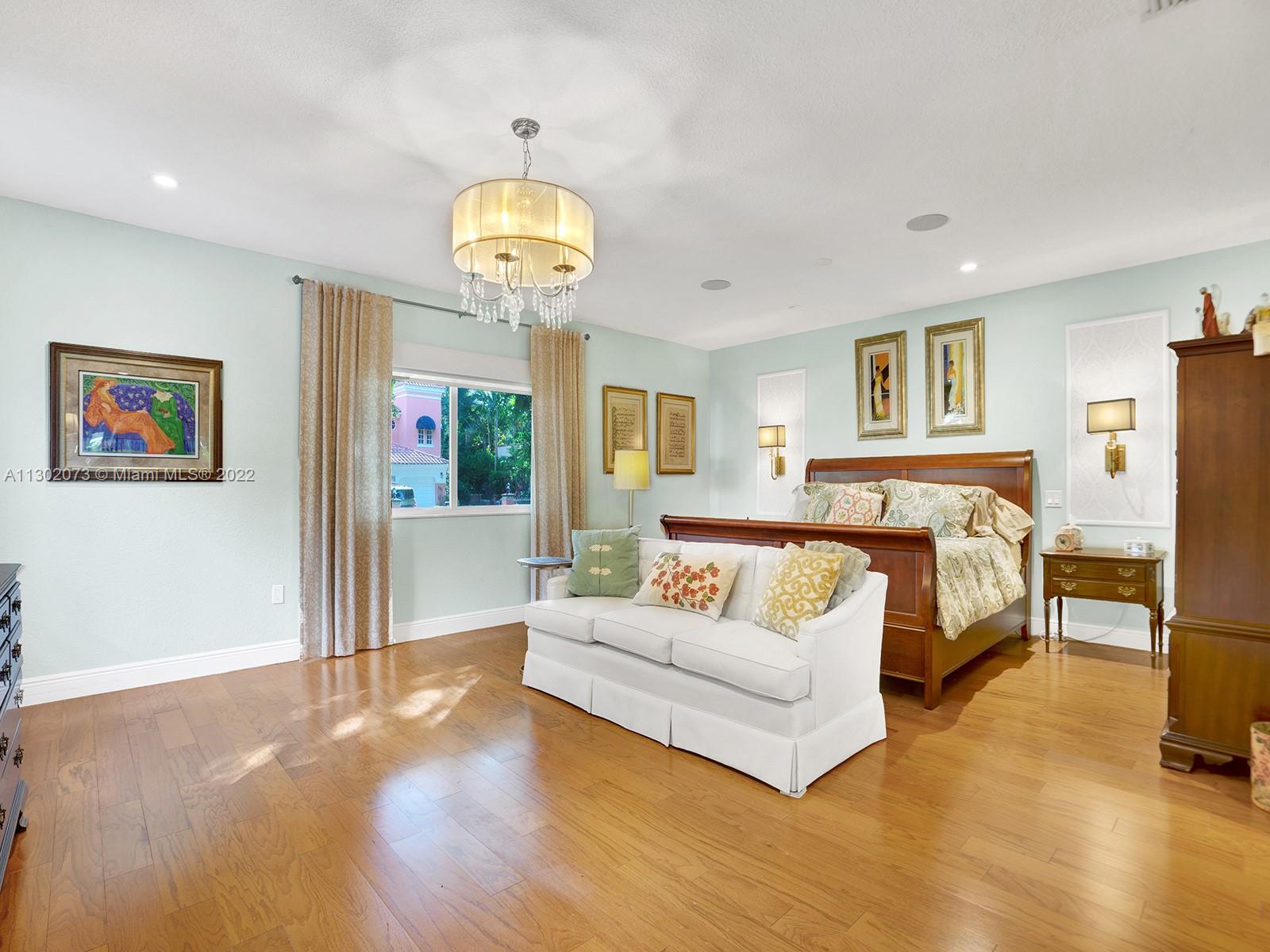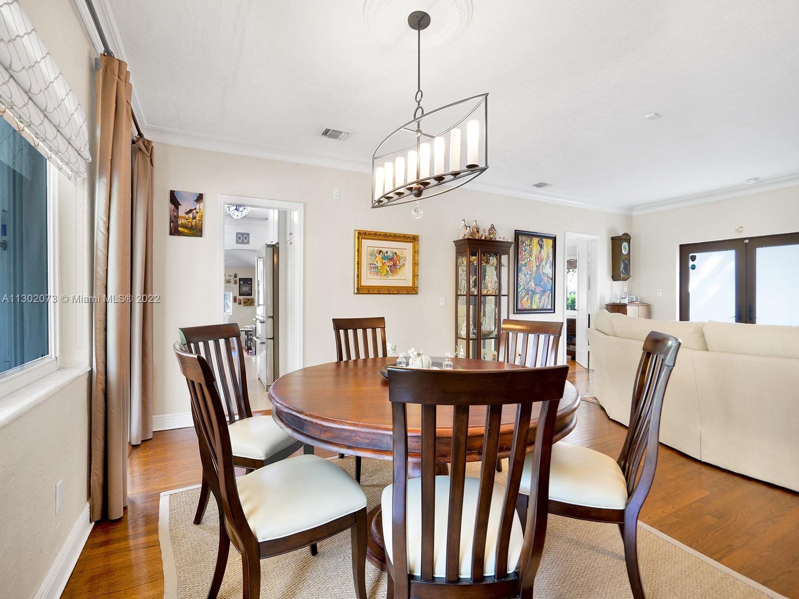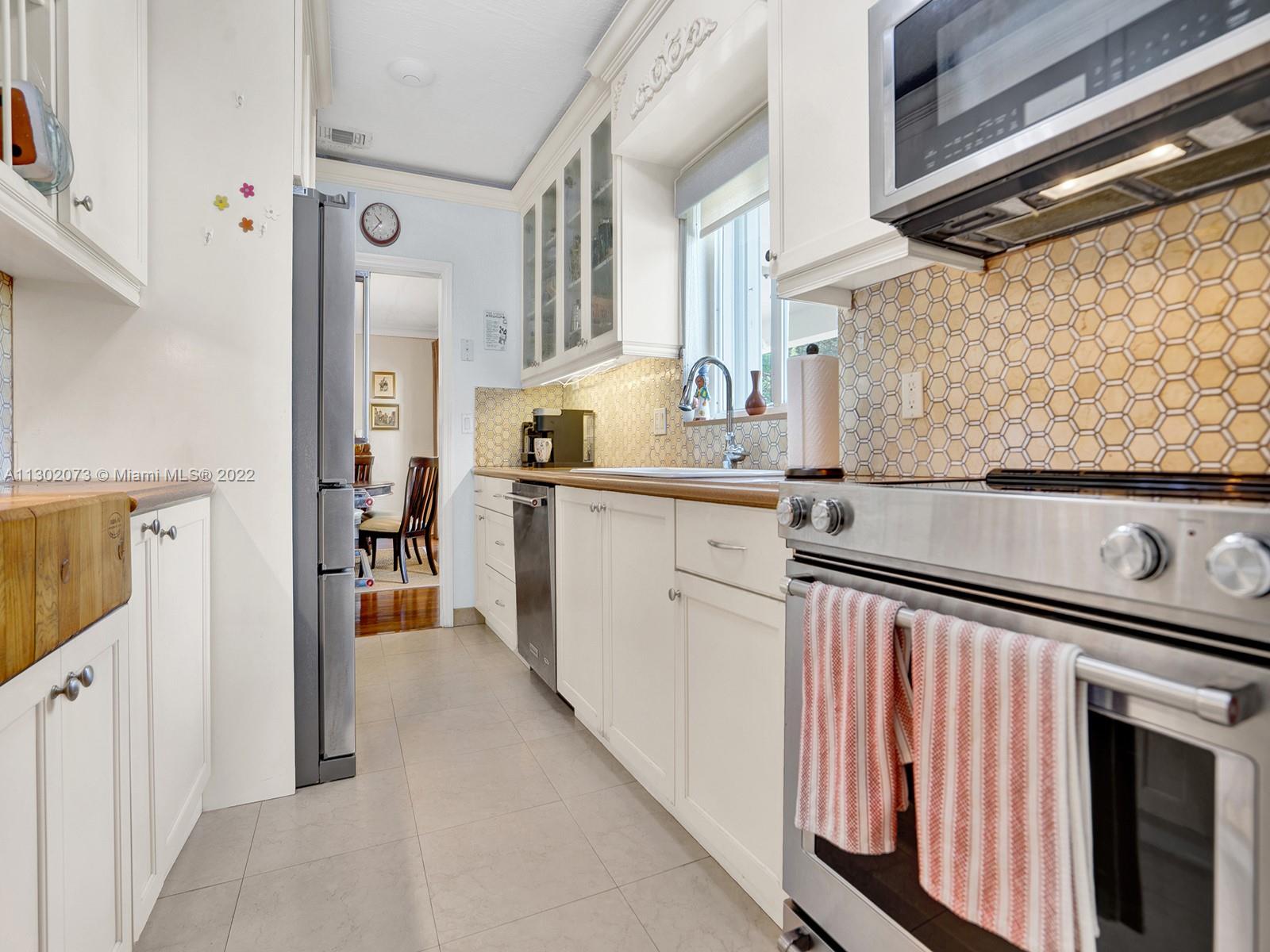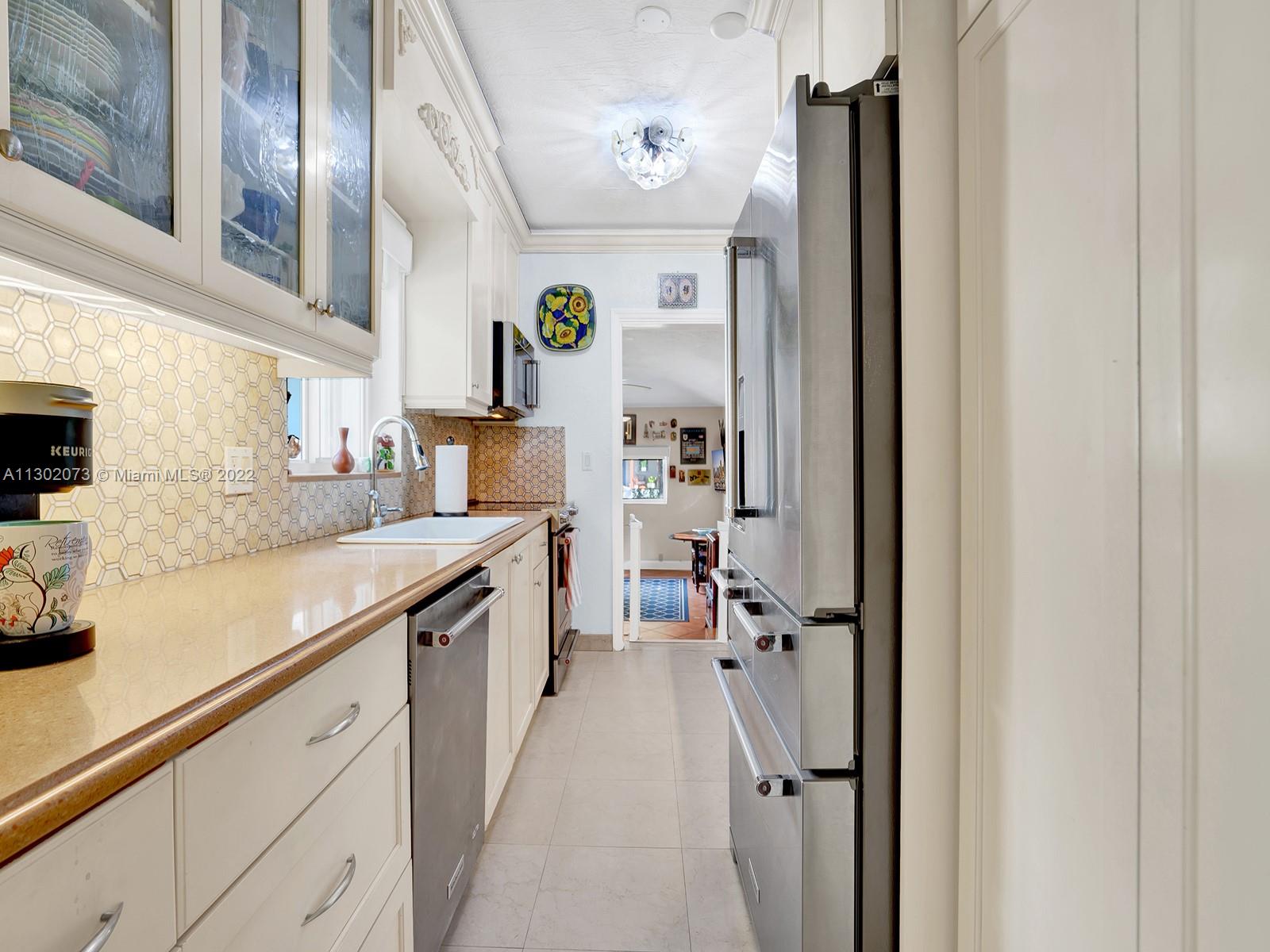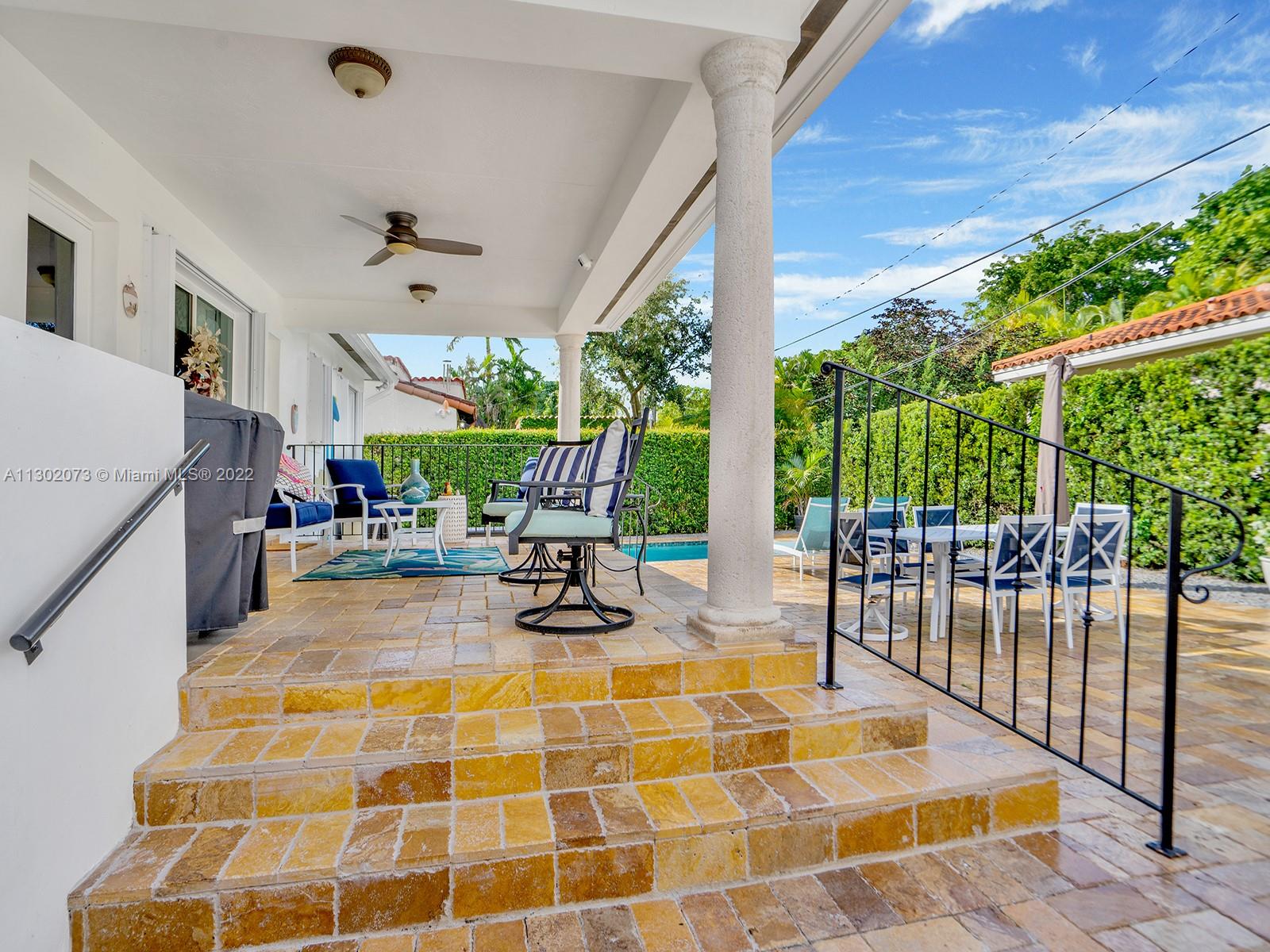This unique Coral Gables pool home has been spaciously enlarged to a current 3 bedroom/3 bathroom split floor plan. This corner lot home sits on a 10,600 SF lot, w/ a master bedroom addition constructed in 2015. One of just 16 homes on Tangier Street, between Venetia and Milan, property is just north of the Granada Golf Course. Entry leads you to the living-dining area that overlooks the backyard patio/pool area. Pool was built in 2022 w/ a natural stone floor layout & features a salt-chlorinator & LED lighting. Master bedroom has a sitting area & custom closet. 2nd bedroom has a full bathroom. Galley kitchen leads to a spacious family room that has access to the backyard & covered path to laundry room/garage. Impact/window protection w/doors throughout. MOVE IN CONDITION.