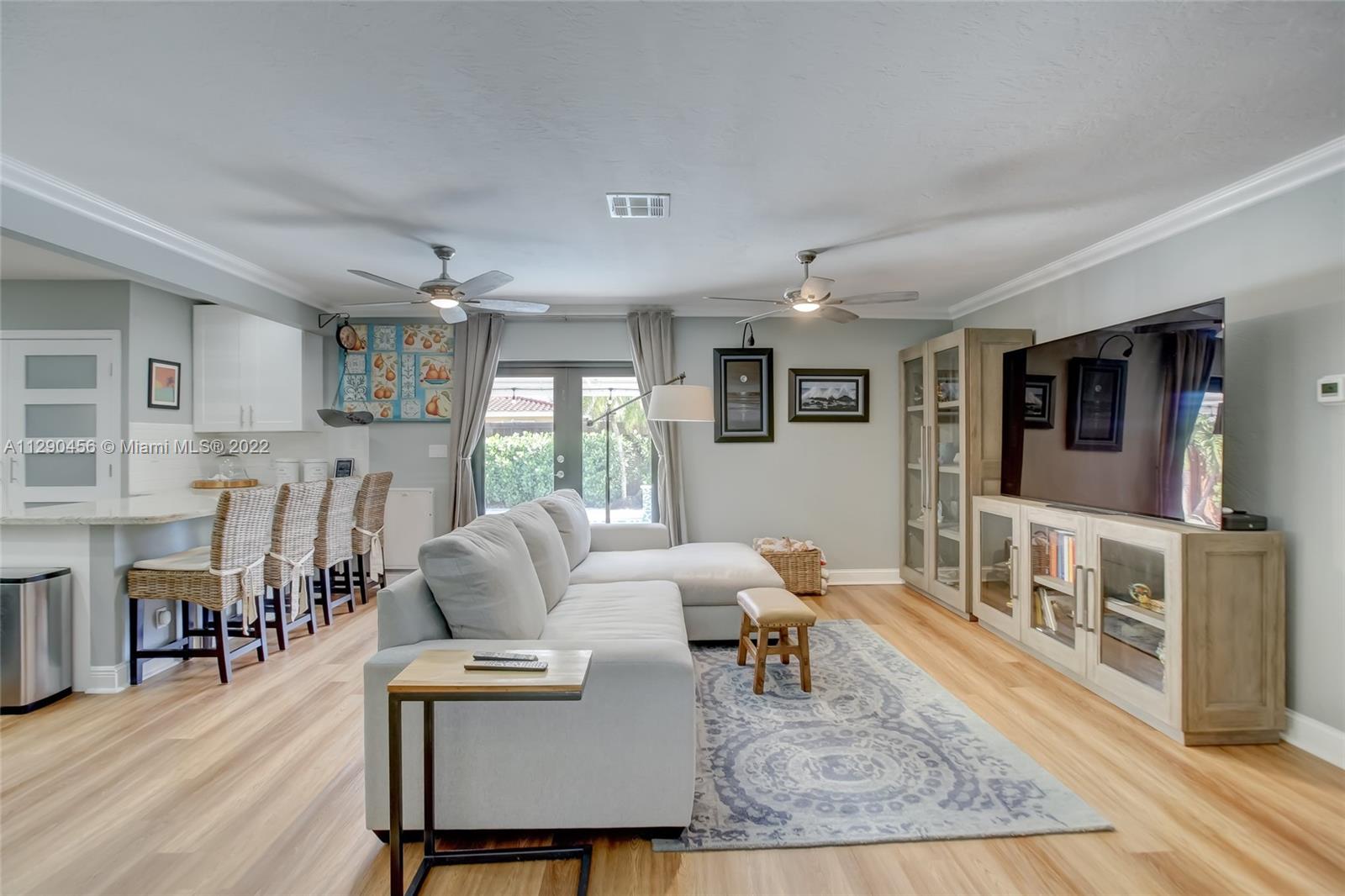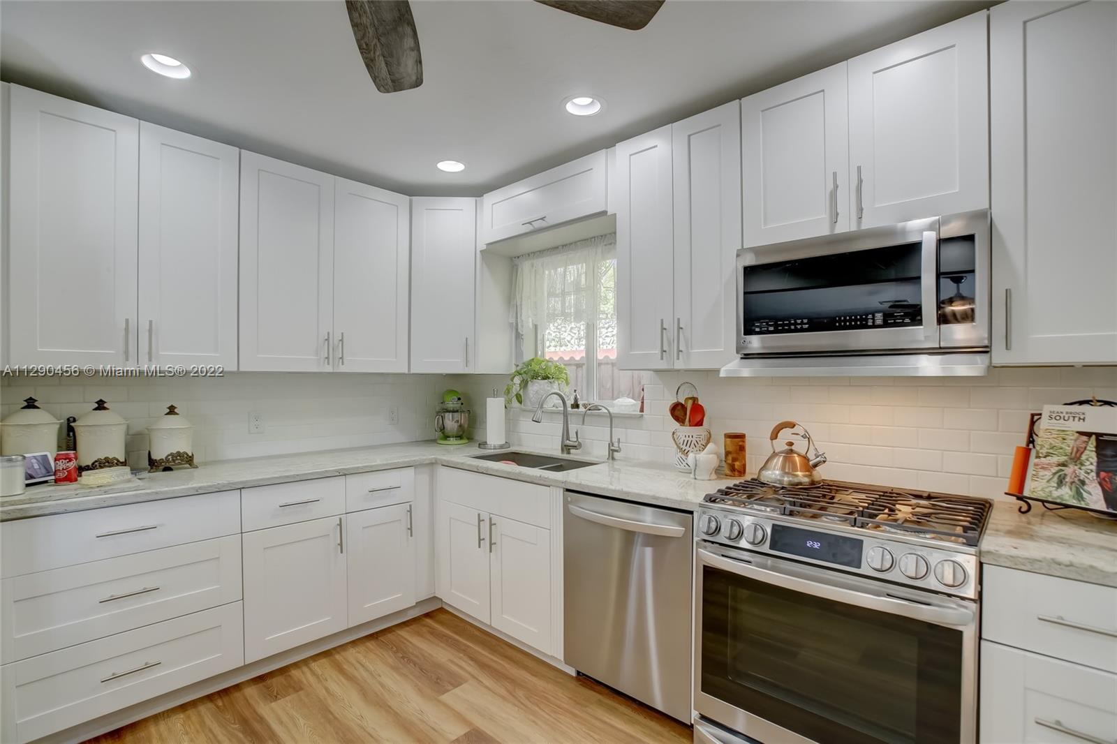 Located in tranquil Poinsettia Heights w/ mature tree lined streets & sidewalks, this immaculately updated home w/ split floor plan will please even the pickiest! Serene backyard w/ clusia hedge surrounding entertainment area w/ gas grill & burner, speakers, refreshing salt chlorinated pool w/ colored light, landscape lighting, travertine deck & new canvas shade canopy. French doors lead to kitchen w/ new cabinets & LG stainless appliances, including natural gas range. Granite breakfast bar w/ open concept view to family room. High impact windows & doors, in addition to code approved decorative Bahama shutters. Whole home 21kw Generac Generator. Upgraded electric, tankless gas h2O heater, 2019 Trane AC, 2017 paver driveway, '02 Roof. Perfect location near shops, beach, mall, downtown!