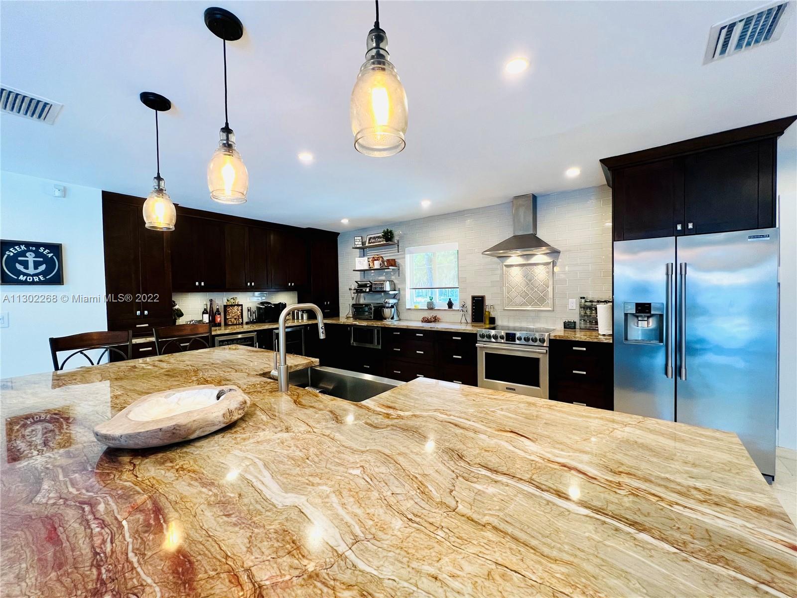 Enjoy real South Florida living in this incredible 3 Bedroom plus Den & 3 Bathroom property within the sought after gated golf cart community of Kings Bay in Coral Gables. This remodeled bright & spacious home includes hurricane impact windows & doors, an aluminum roof, brand new AC's & duct work, a 2 car garage, & a split floor plan with multiple living areas throughout. The gorgeous kitchen features plenty of counter space with a large eat-in island. Relax in an oversized remodeled pool with a newly installed pump & separate jacuzzi. This is a true boaters paradise offering direct access to Deering Bay Marina with 8 community dedicated boat slips & Dock master access daily from 7am-5pm, with 24hr security. Conveniently located near the Dadeland Station and several highway access points.