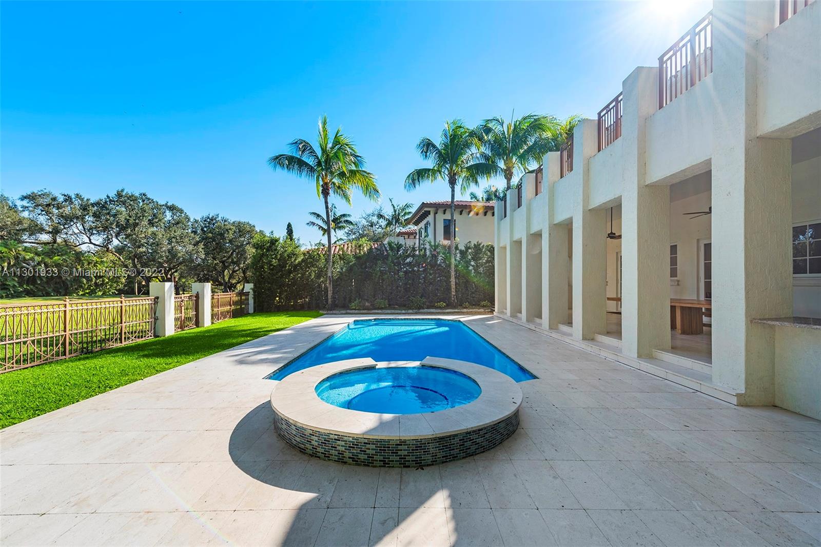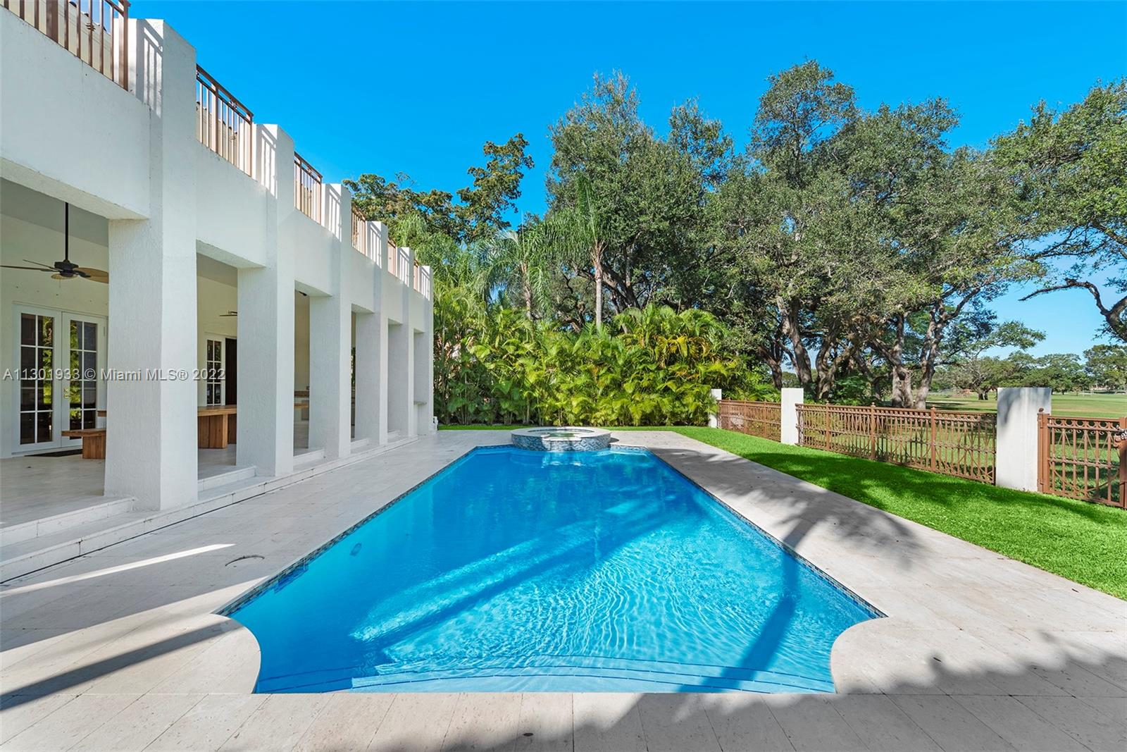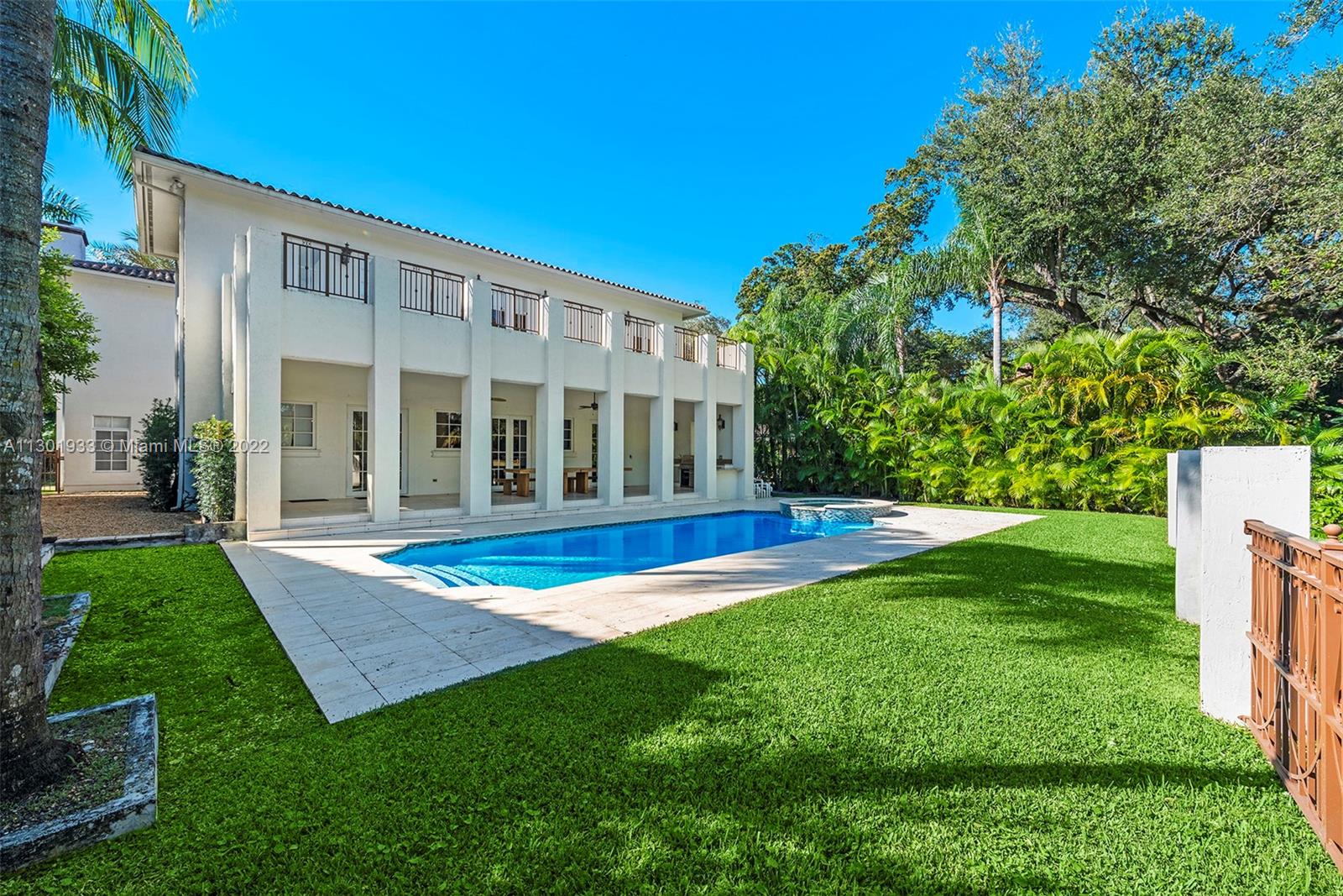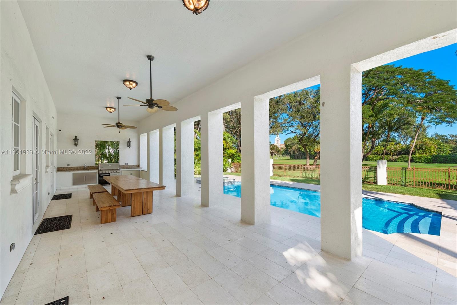Elegantly designed Italian Villa majestically sited in a private enclave directly on the prestigious Biltmore Golf Course. Grand 2-story entrance and central courtyard allow a wonderful flow for entertaining and family living. Formal living room with fireplace and formal dining. Designer kitchen, Wolf range and ovens, Subzero refrigerator, wine cooler, and custom temperature-controlled built-in drawers. The family room opens to a large covered terrace, with a summer kitchen, a pool with a jacuzzi, and a patio. Marble floors, Brazilian hardwood floors, and volume ceilings throughout. Luxurious master suite wing with a private terrace. All en-suite bedrooms, including guests and service quarters, double car garage, and amazing views of the iconic Biltmore Hotel Golf Course. Bring your offer!