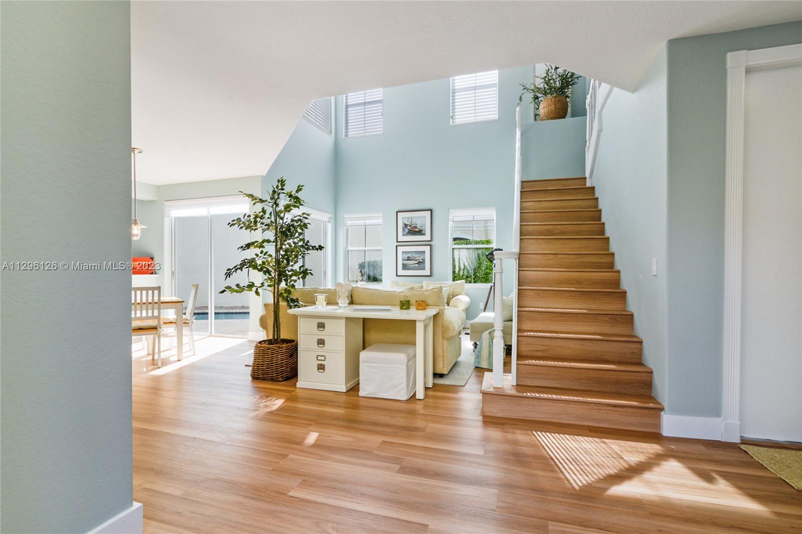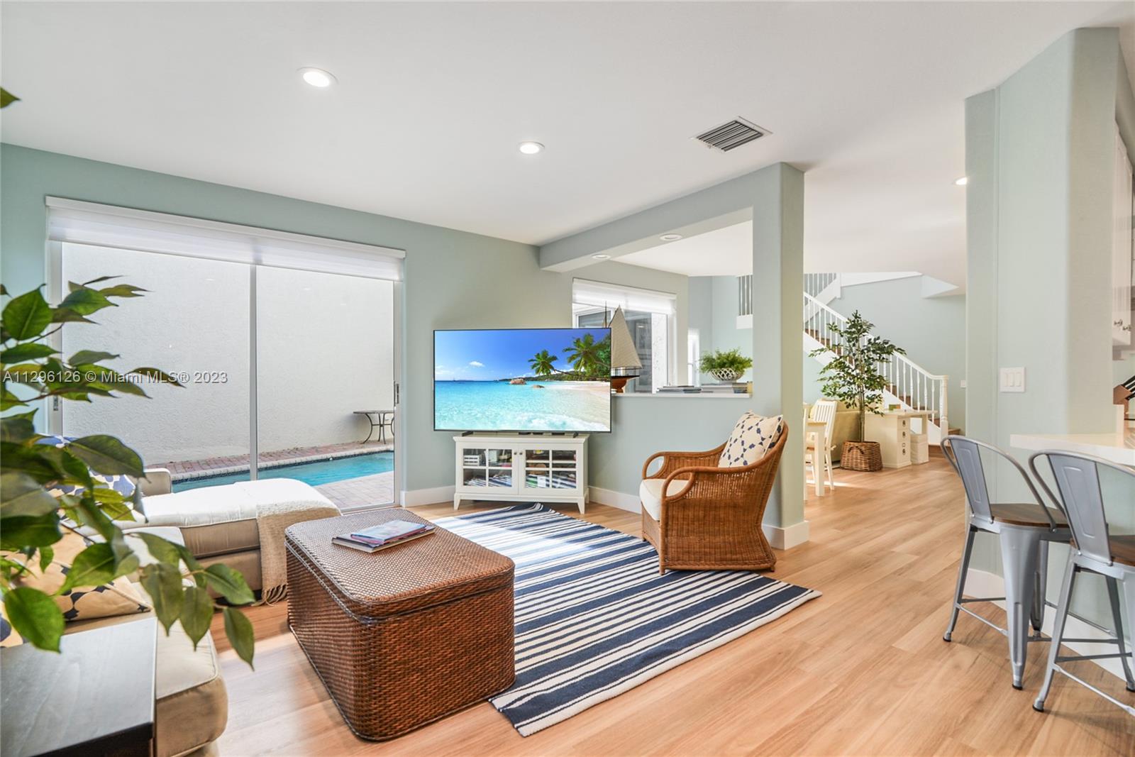 Remodeled and Impeccable home with 3 spacious bedrooms upstairs and 1 bedroom downstairs. Super Bright. Great entertaining patio area with pool. A lot of storage closets, 2 car parking garage. Located at the prestige Harbor Island Gated Community with great amenities that include tennis court, Spa, Gym, 20 acre park with children's play area and Marina. Just off the Intercostal. It wont last long.