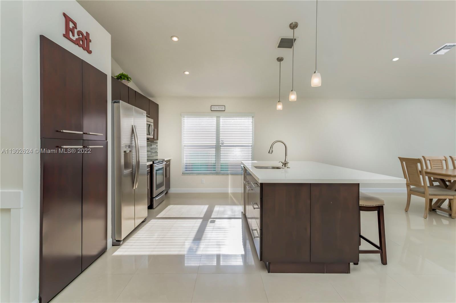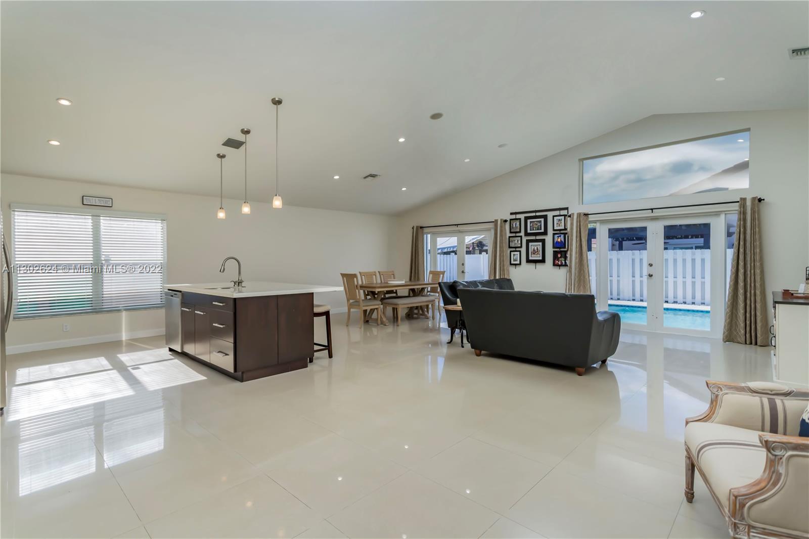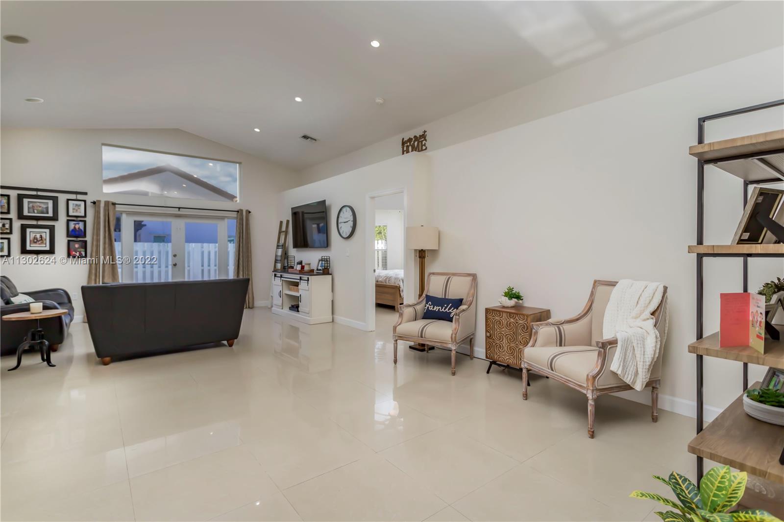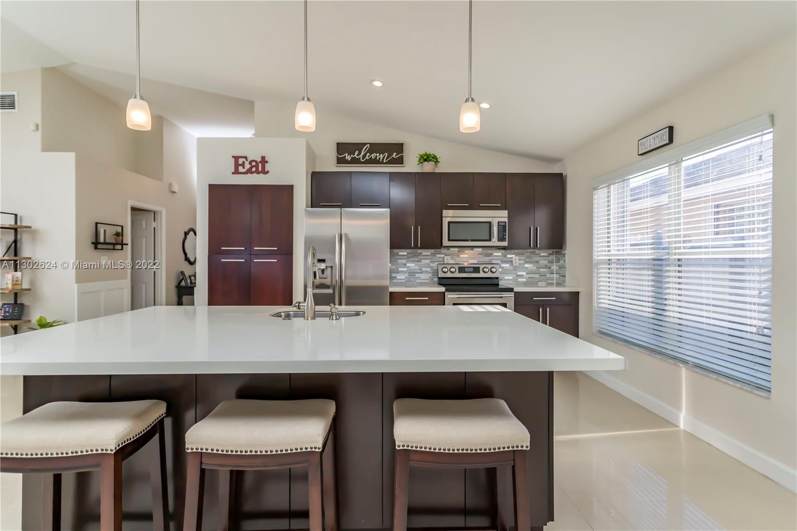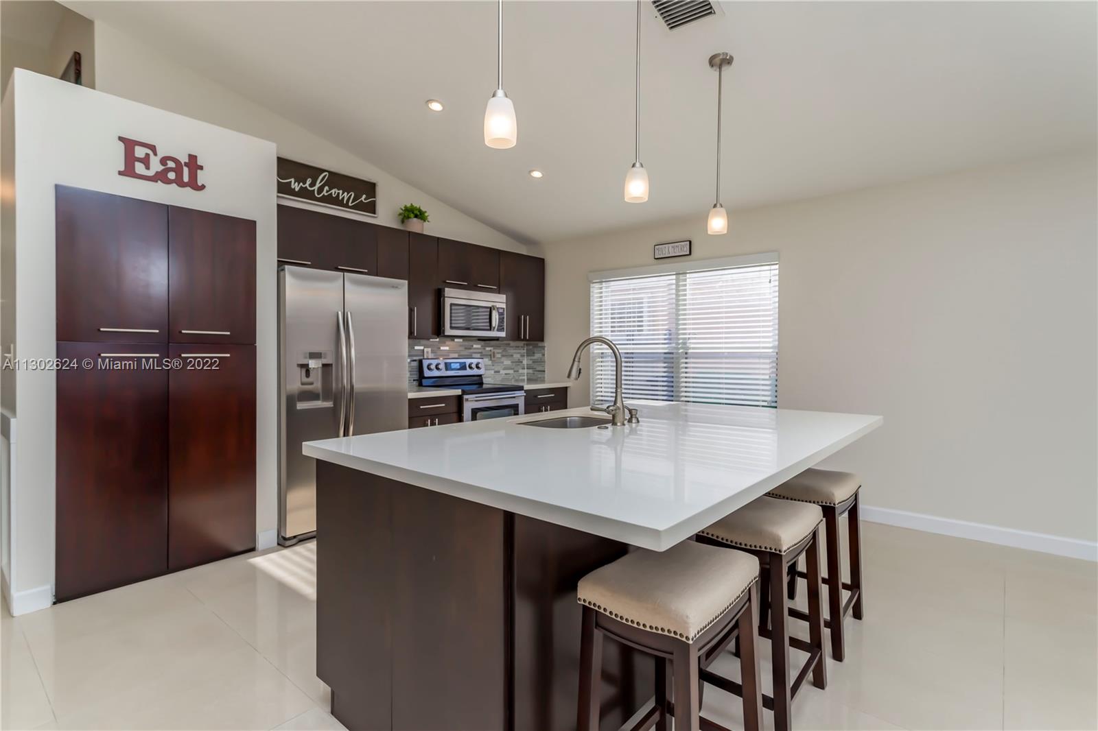 STUNNING THREE BEDROOM, TWO BATHROOM HOME IN SILVER LAKES! THIS HOME FEATURES UPGRADED PORCELAIN TILE FLOORING & VOLUME CEILINGS THROUGHOUT. THE MODERN KITCHEN IS COMPLETE WITH QUARTZ COUNTERTOPS, WOOD CABINETRY & STAINLESS STEEL APPLIANCES. THE MASTER BATH AND 2ND BATH HAVE ALSO BEEN UPGRADED. THE FULLY FENCED-IN PRIVATE BACKYARD FEATURES A TRAVERTINE PATIO & A SALT WATER POOL. THIS HOME IS PROTECTED BY NEW ACCORDION SHUTTERS & SECURITY CAMERAS.