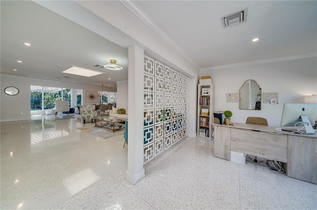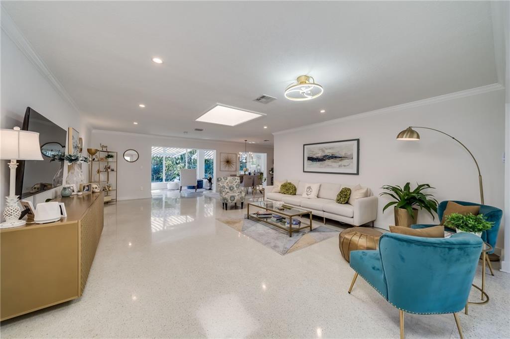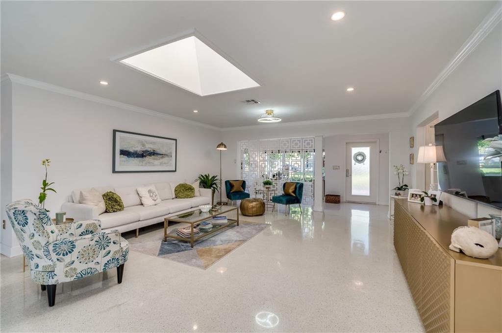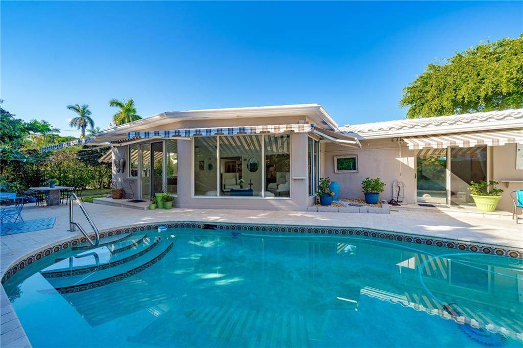 A perfectly placed corner lot in Coral Ridge, located in the much-desired Bayview school boundary;**2 bedroom plus Office/Den 2 bath. The office could easily be converted into the 3rd bedroom. This home has been recently renovated and finished throughout to high standards. It has an amazing large open floor plan set off by restored polished terrazzo floors. The floor-to-ceiling impact windows along with a large skylight bring in an abundance of light. The backyard offers privacy with a swimming pool, tropical landscape and generous yard space. A mosquito misting system, a newer roof replaced in 2017, and an AC unit and ductwork in 2020. This home is within biking distance to the beach, the Galleria Mall, and premier dining destinations. Catch your breath on this beauty!