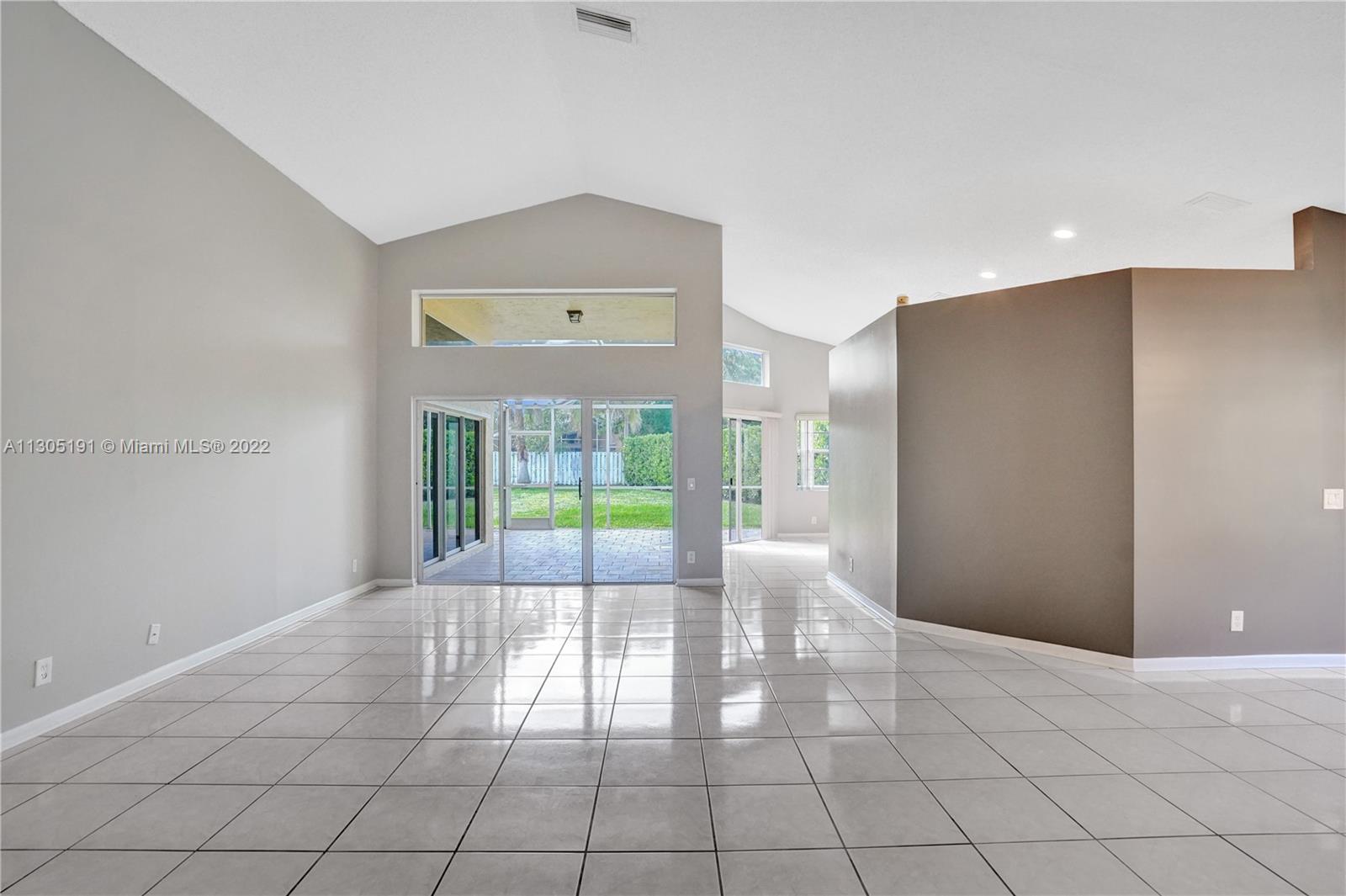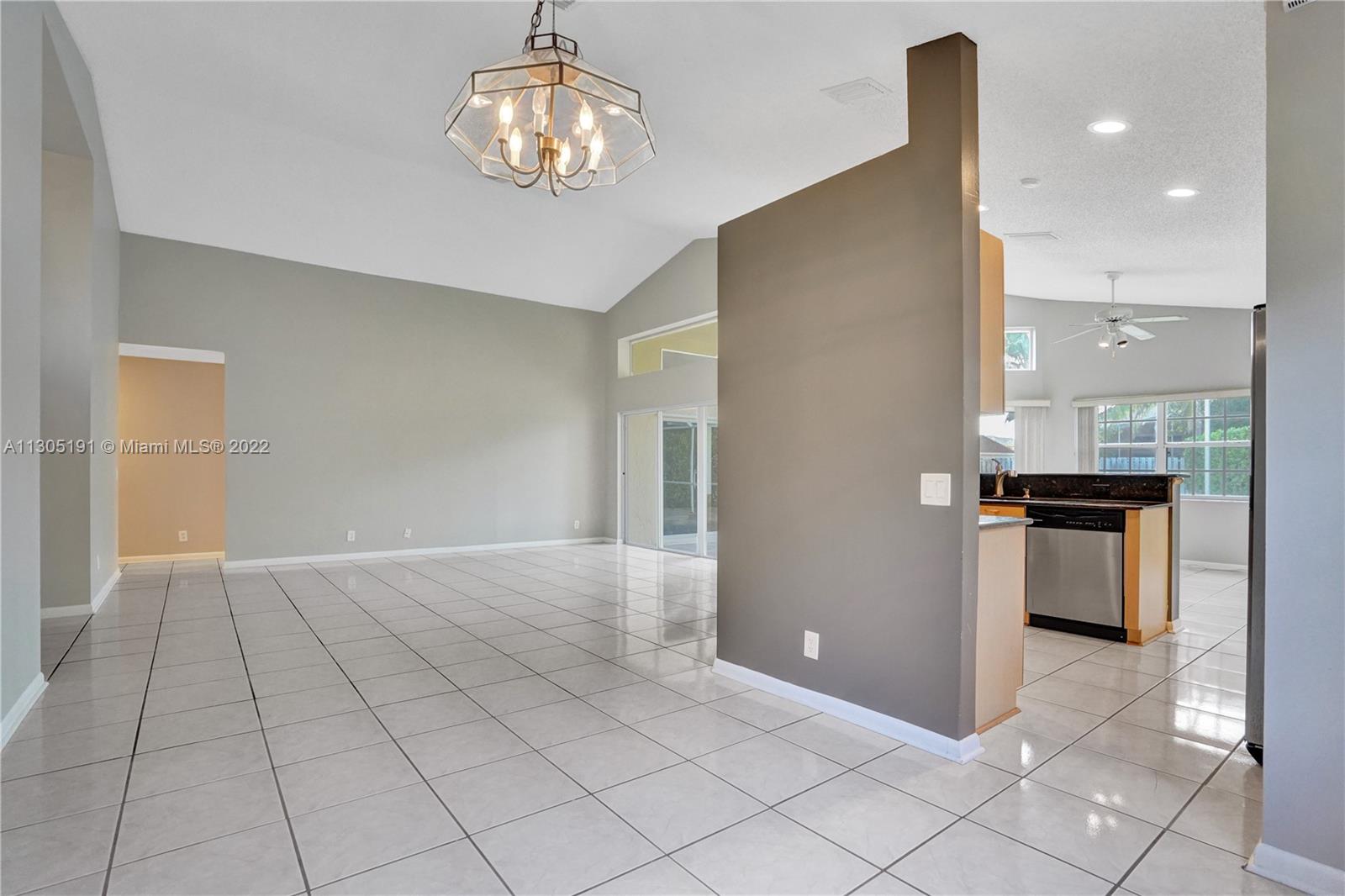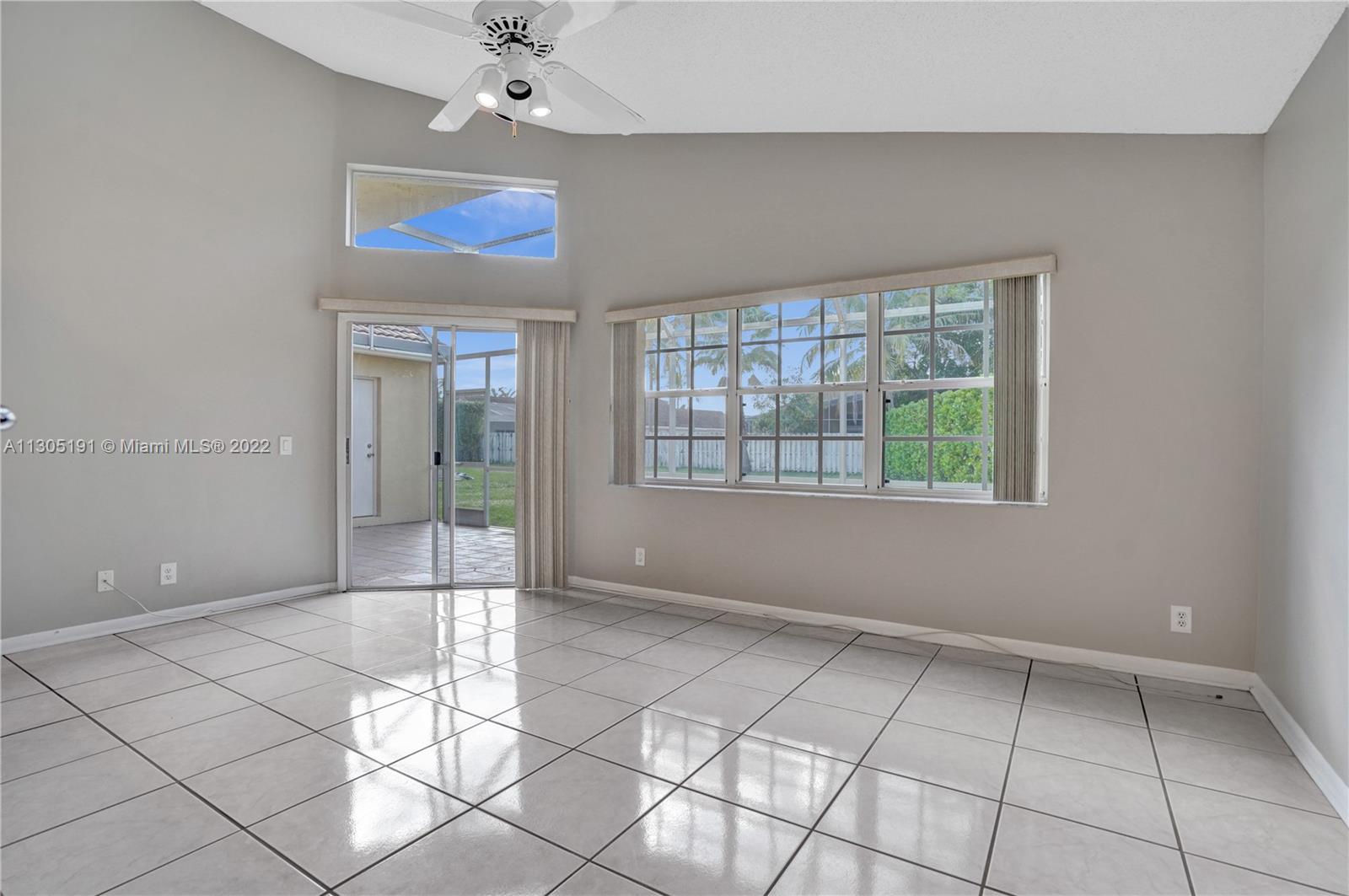Very large 4/3 one story home on a huge 10,000 sf corner lot. Light and bright home that truly shows great with a nice open floor plan and high cathedral ceilings. Ceramic tile flooring in main areas and new laminate flooring in bedrooms. All bathrooms have been beautifully remodeled. Upgraded kitchen with granite, wood cabinets and newer stainless steel appliances. Big covered screened patio and a huge backyard with room for a pool. Great neighborhood with community pool, A-rated schools and close to shopping and restaurants. Will not last!